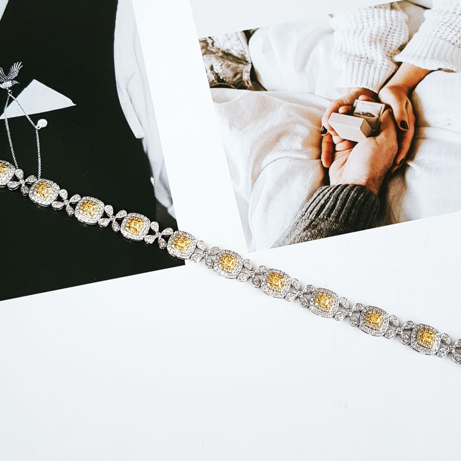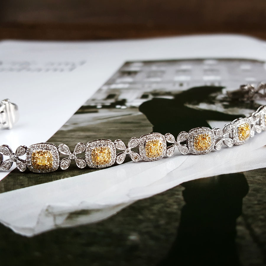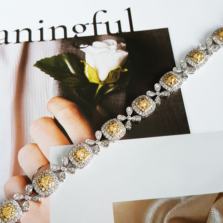 款式 | AU750白金豪镶四叶草设计师款2.85克拉群镶钻石手链 |