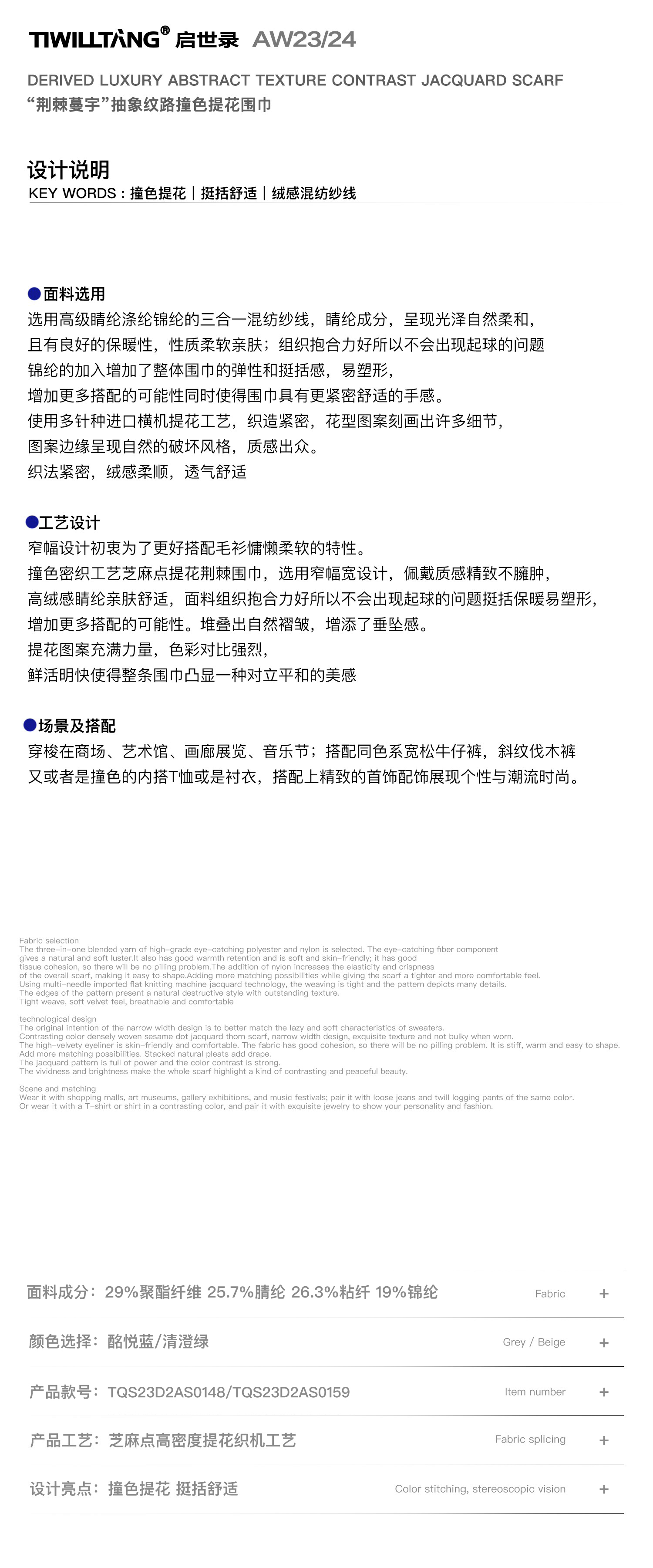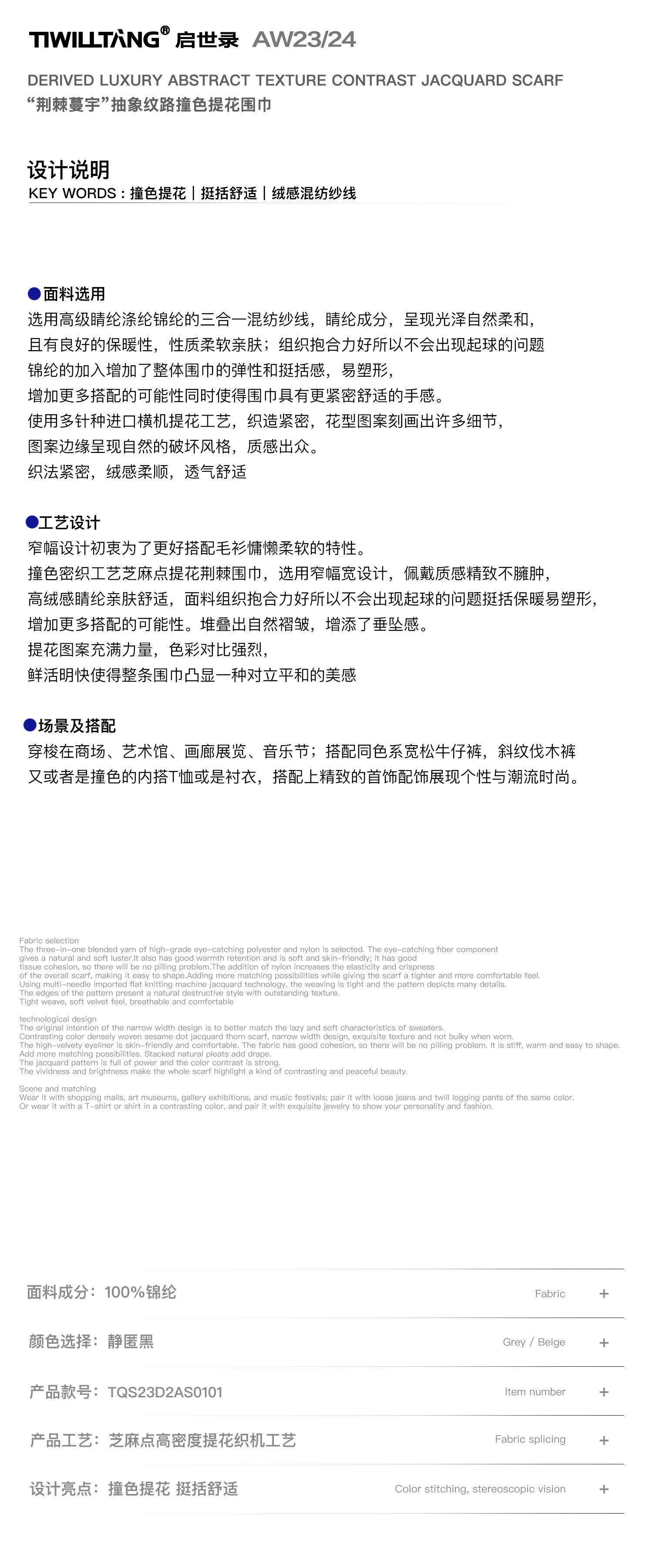 TIWILLTANG启世录“奢迹衍生”荆棘蔓宇艺术抽象提花加厚保暖围巾