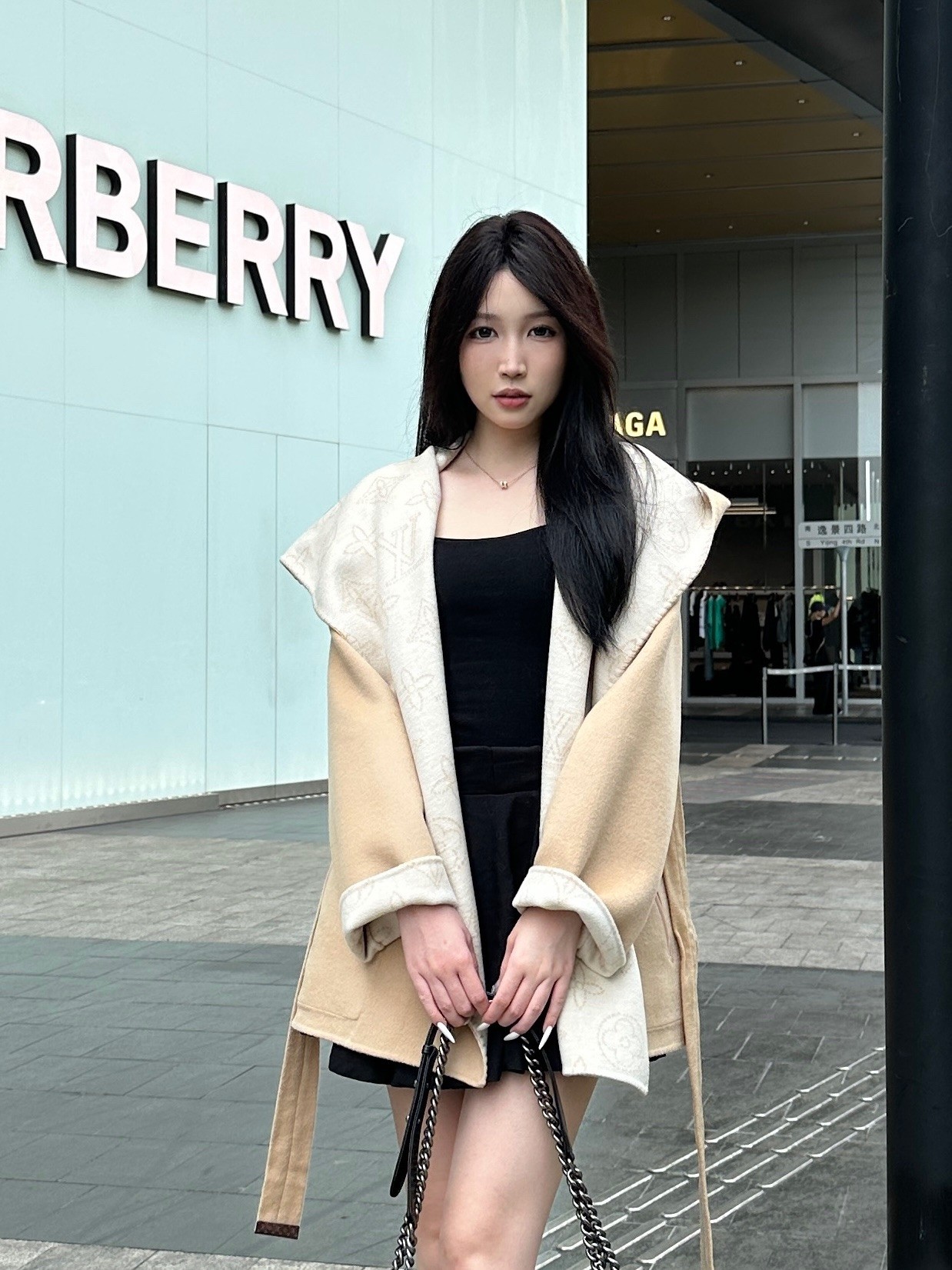 驴家驼色双面穿短款大衣