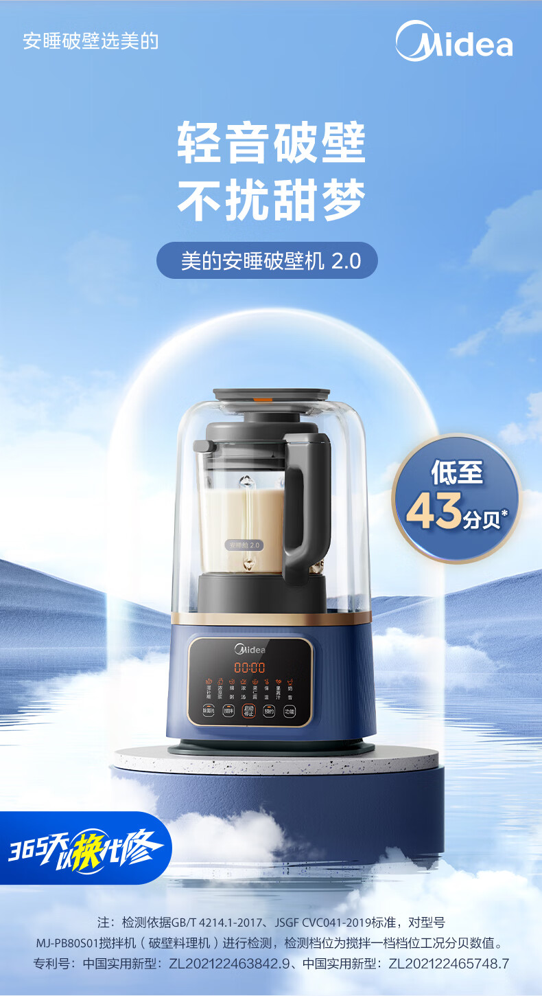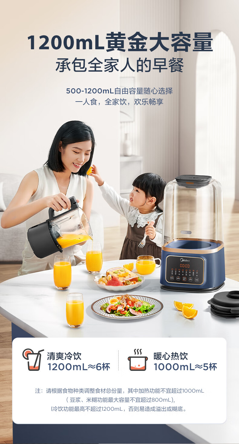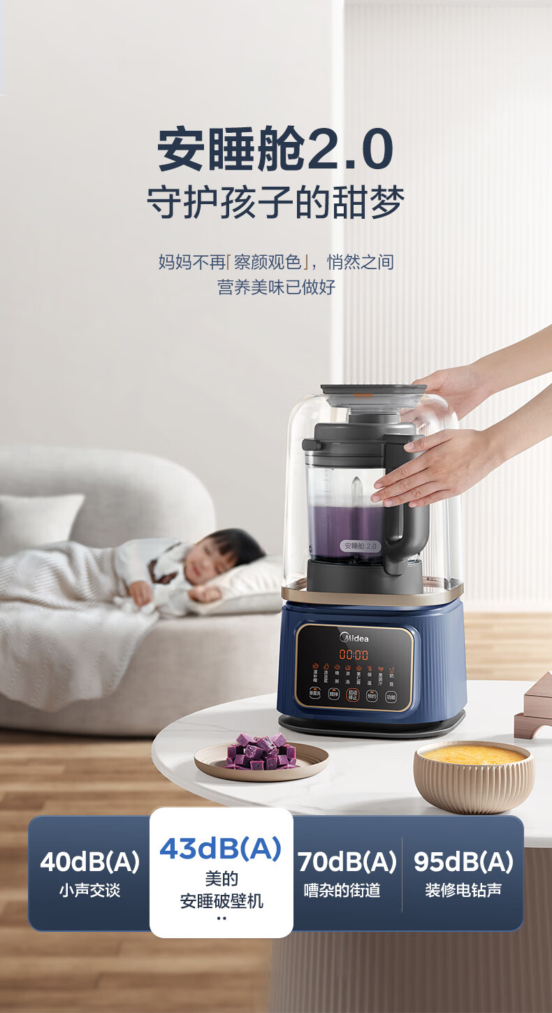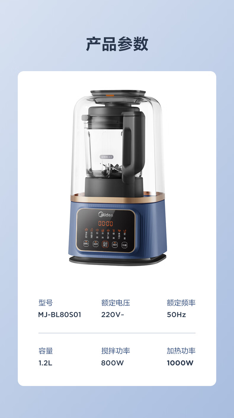 美的(Midea) 破壁机家用低音安睡智能WIFI辅食机料理机MJ-BL80S01【ZMD安心系列】