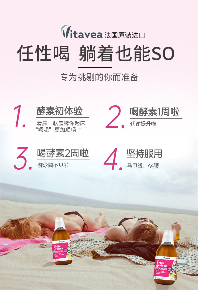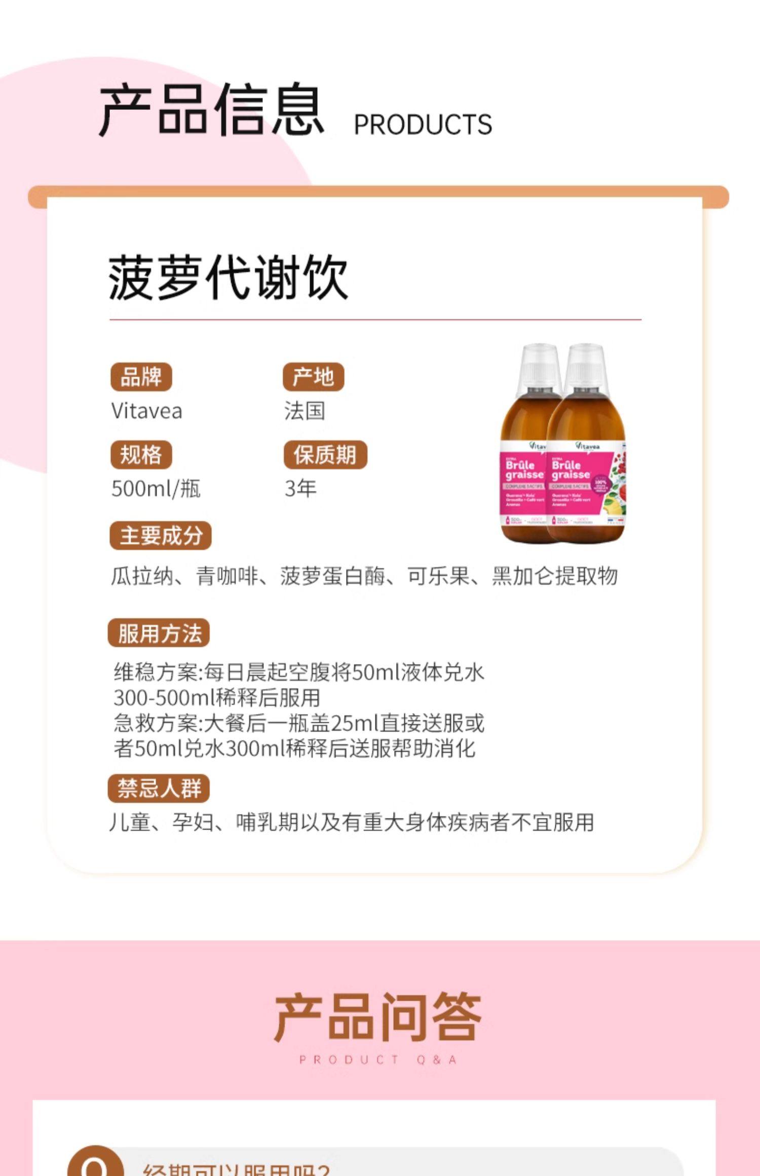 法国Vitavea维美利莱燃燃菠萝炫腹饮果蔬酵素饮500ml瓶维美利莱