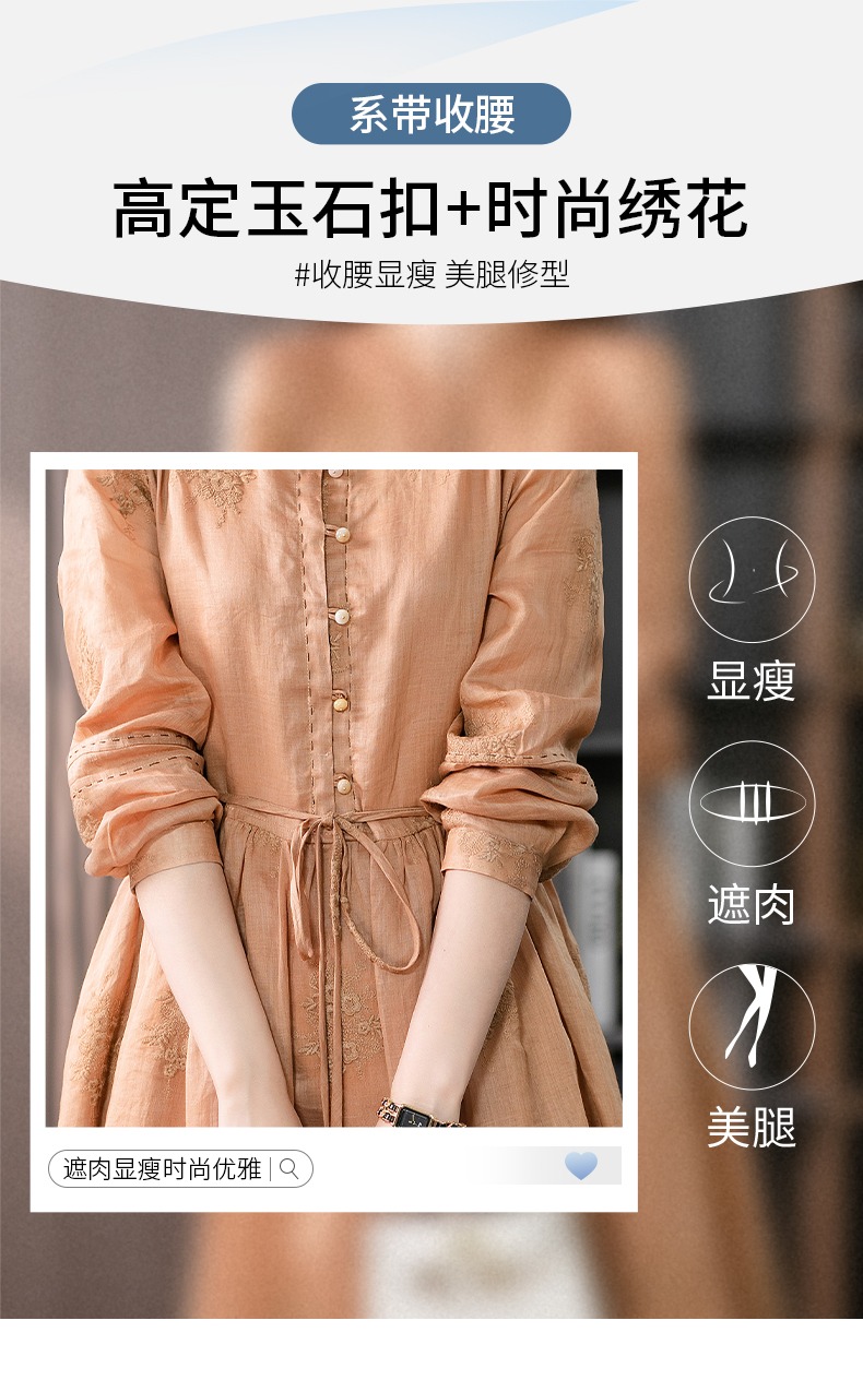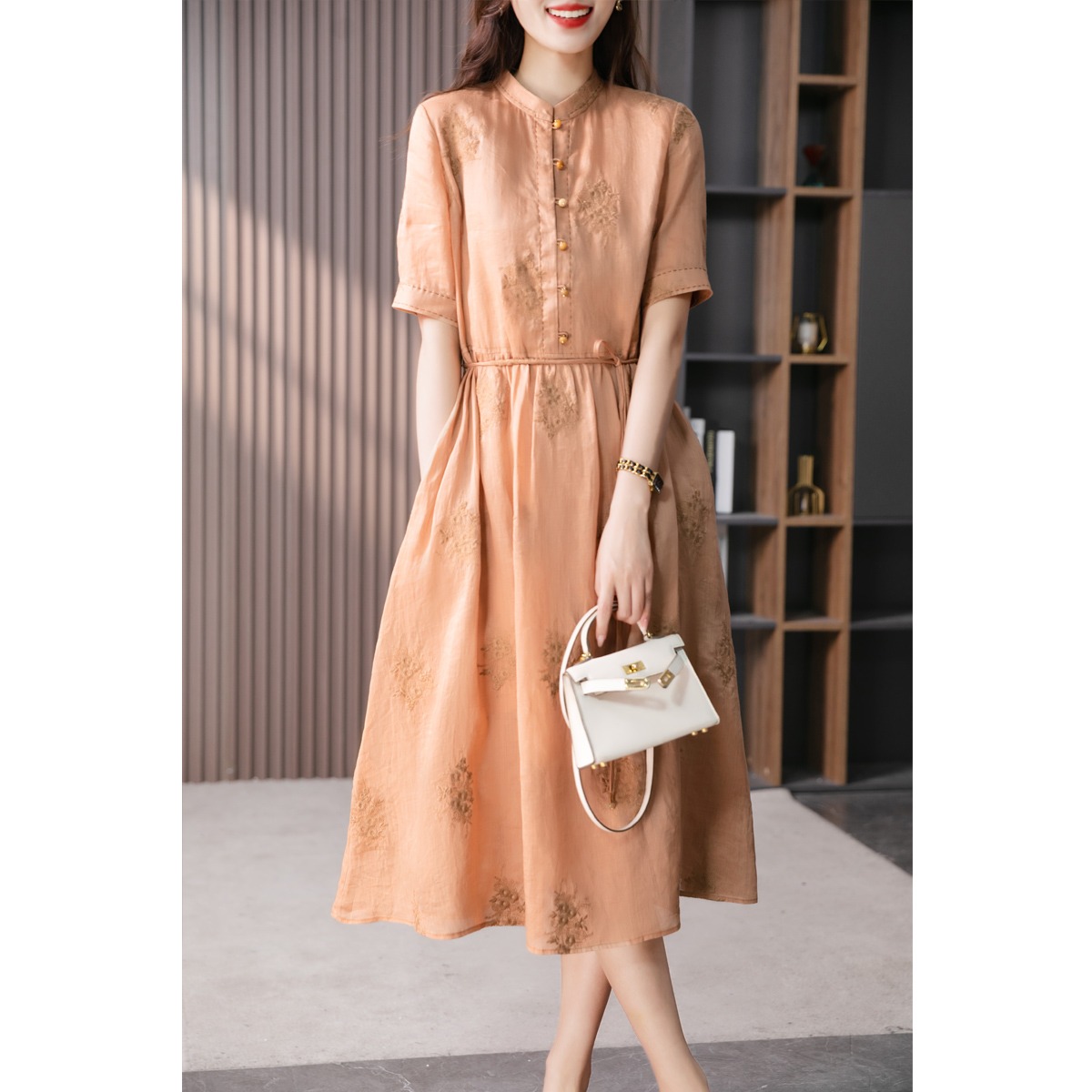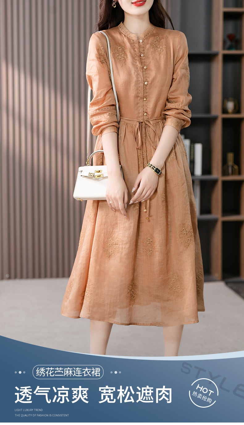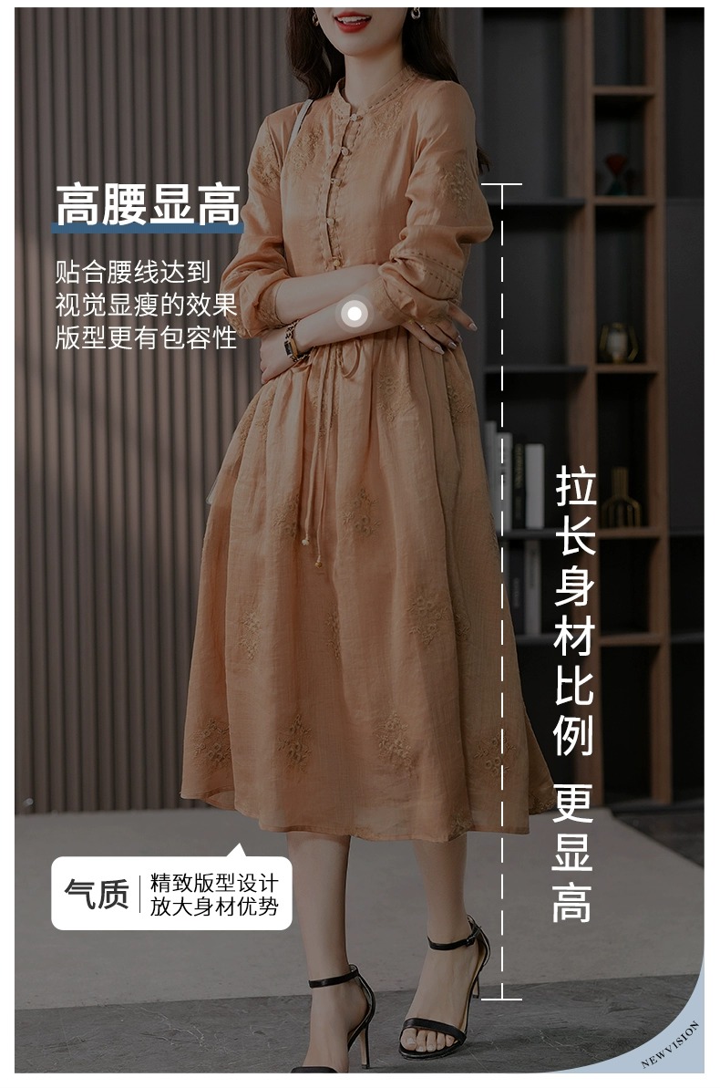 YX【现货7天】设计感新中式苎麻连衣裙女2024夏季新款时尚绣花显瘦长裙子