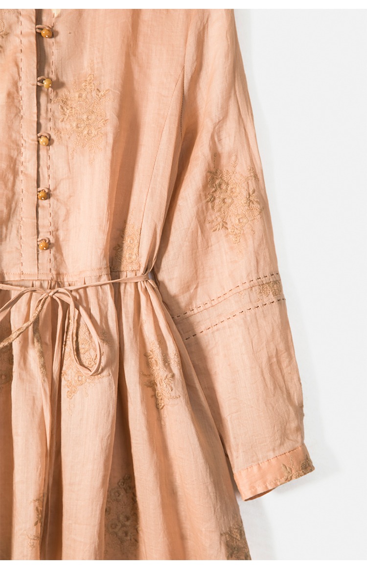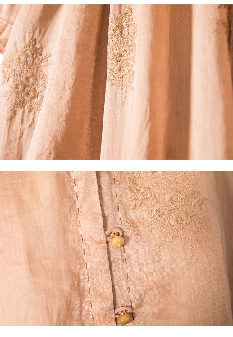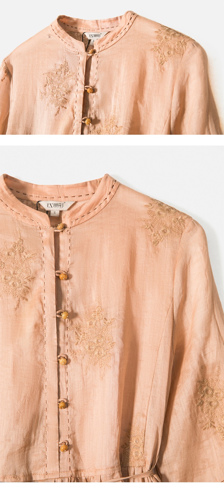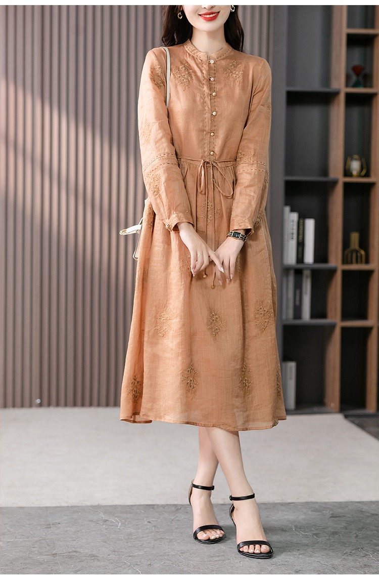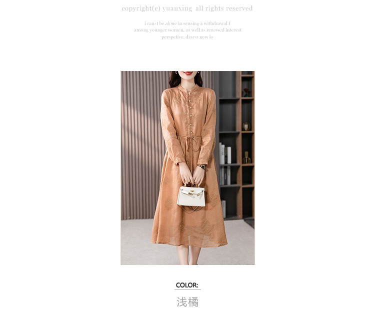 YX【现货7天】设计感新中式苎麻连衣裙女2024夏季新款时尚绣花显瘦长裙子