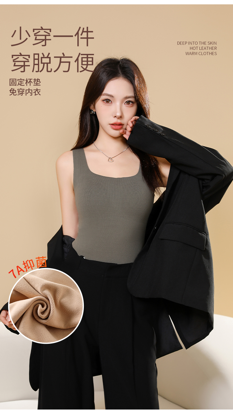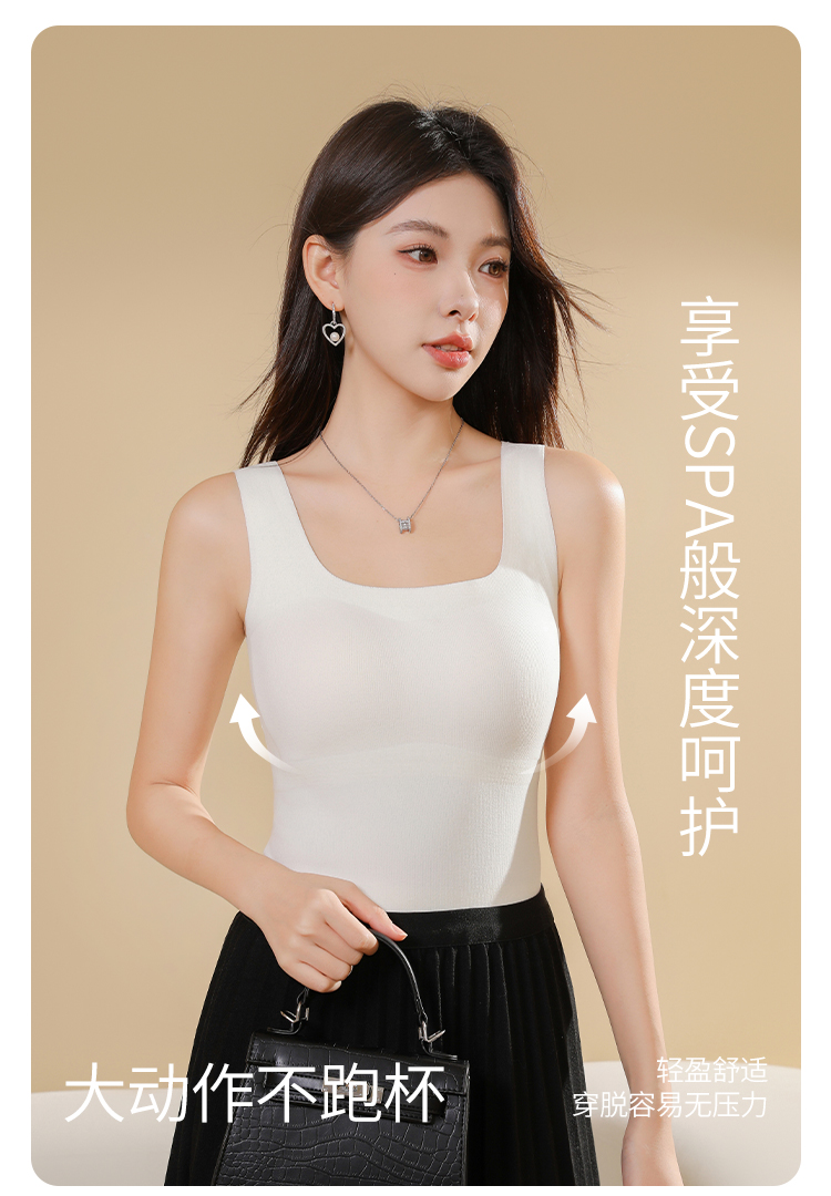 【69.9元买一送一】花姿彤椰油保暖背心 | 7A抑jun 自带胸垫 双面磨毛 无痕保暖 方领/V领可选