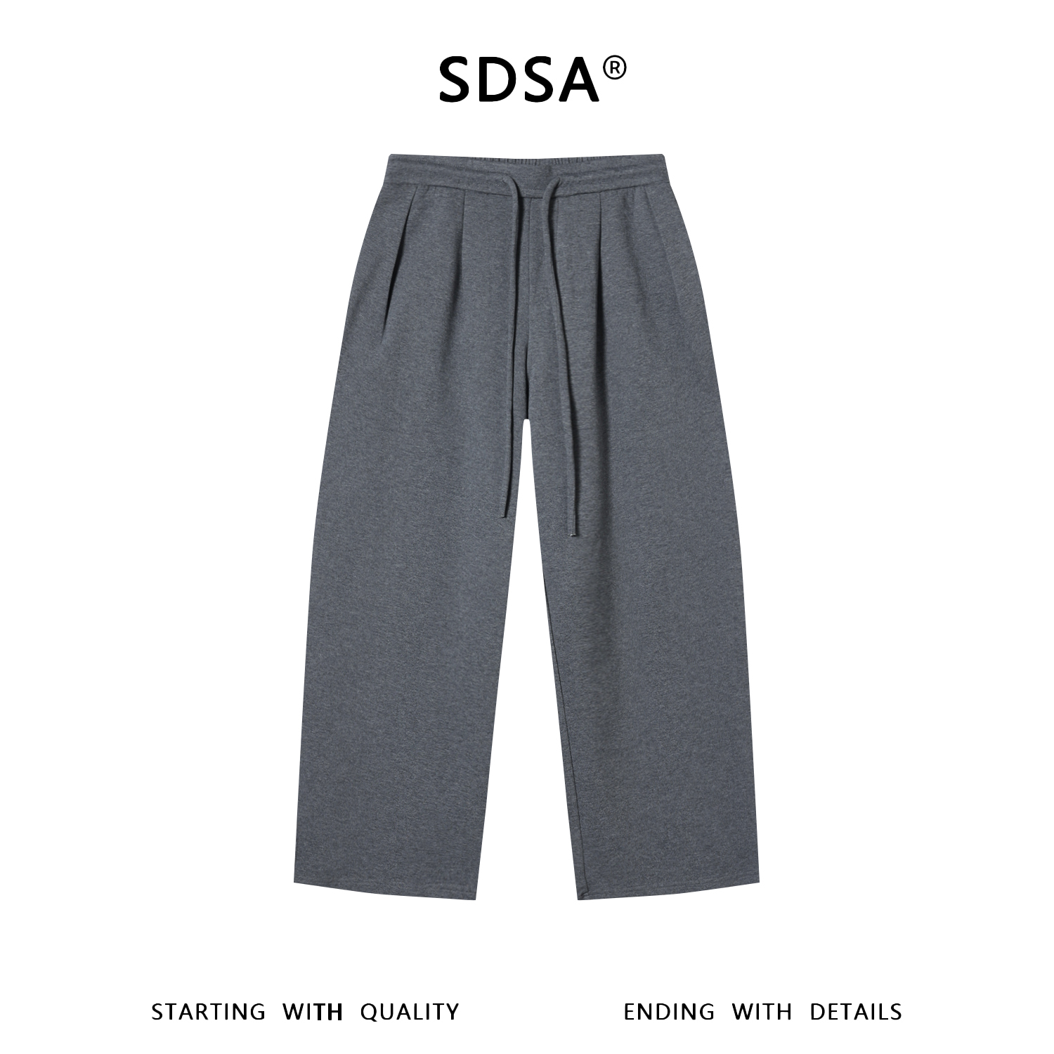 SDSA男装2026新款轻奢潮牌纯色显瘦阔腿宽松百搭运动抽绳休闲裤