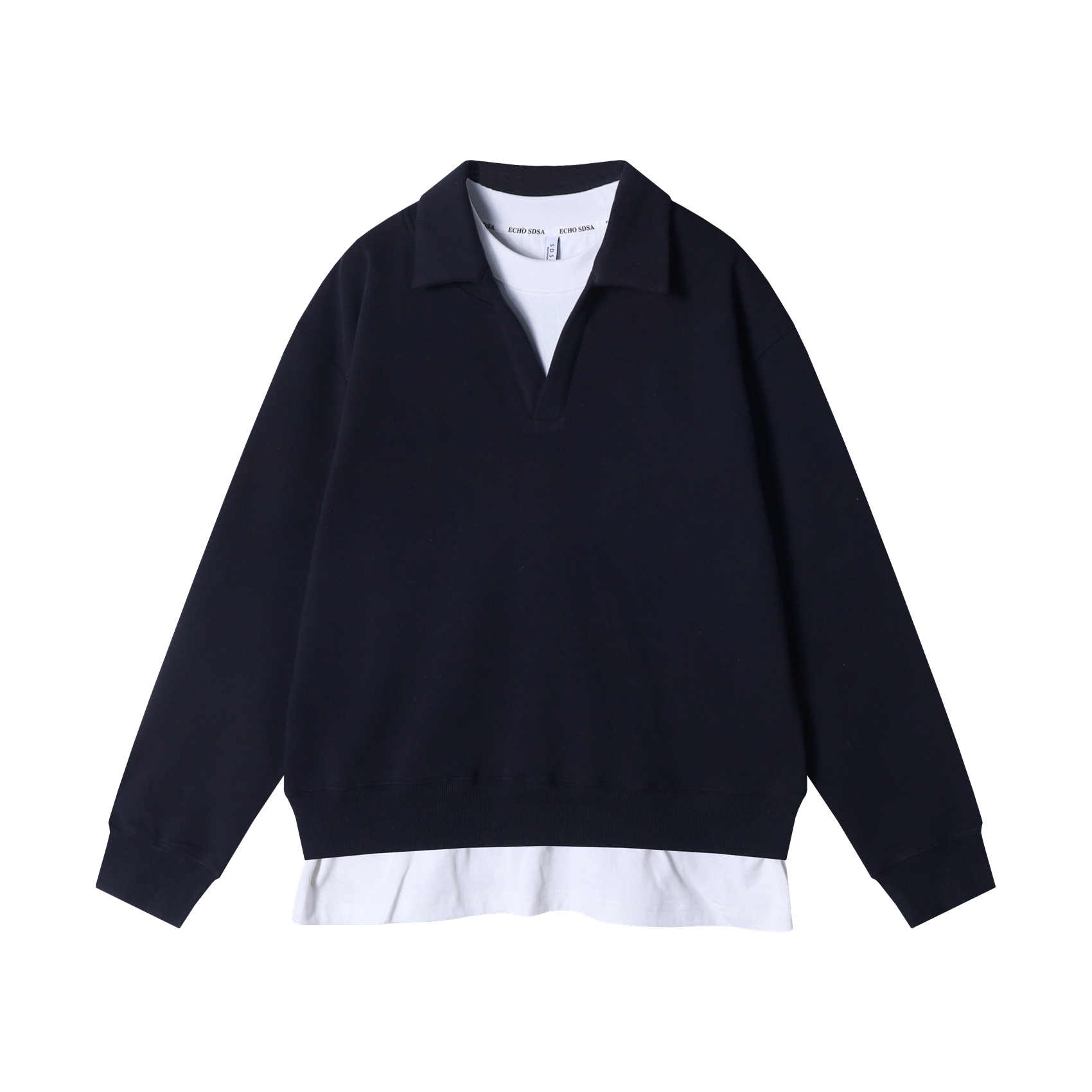 秋冬季新款时尚个性日系黑白撞色圆领假两件卫衣百搭休闲简约上衣