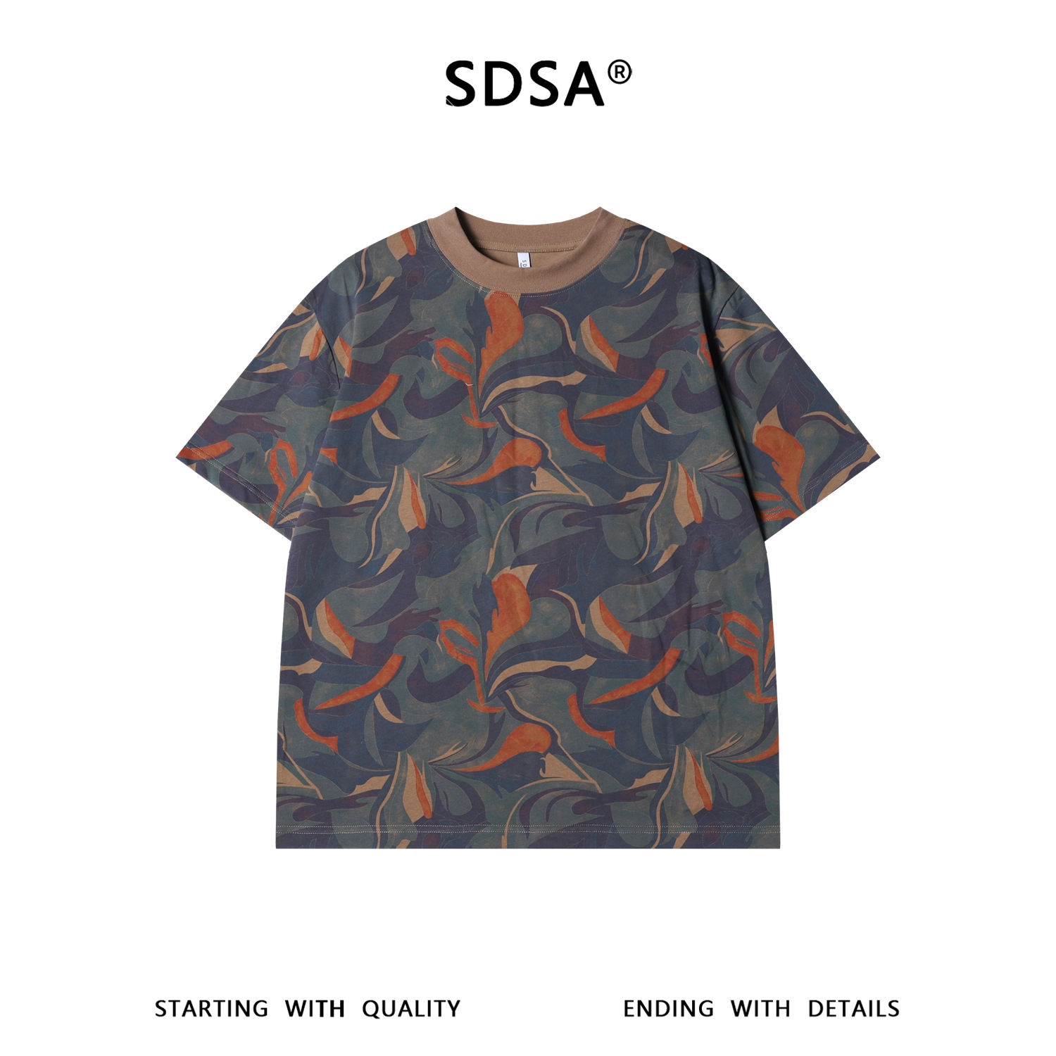 SDSA男装2026新款高贵轻奢艺术感抽象撞色设计圆领短袖T恤百搭