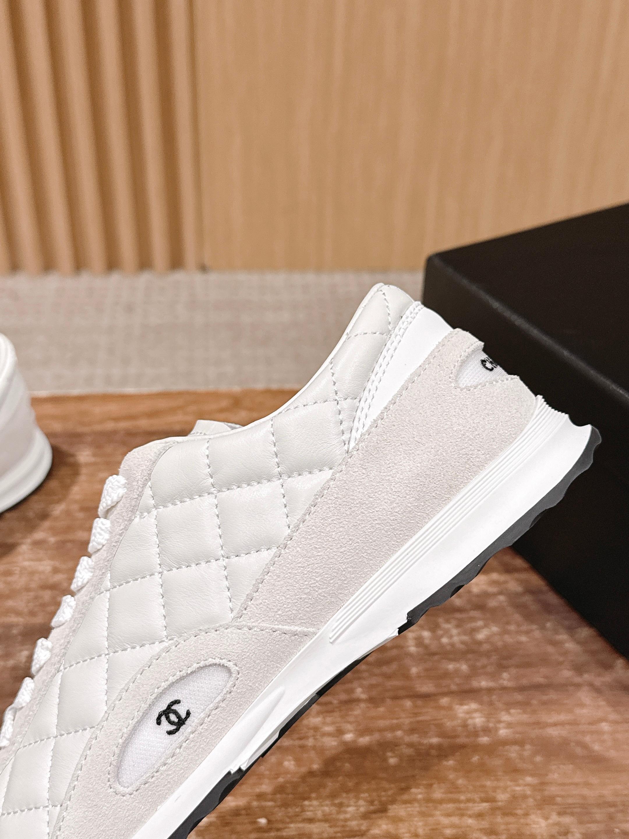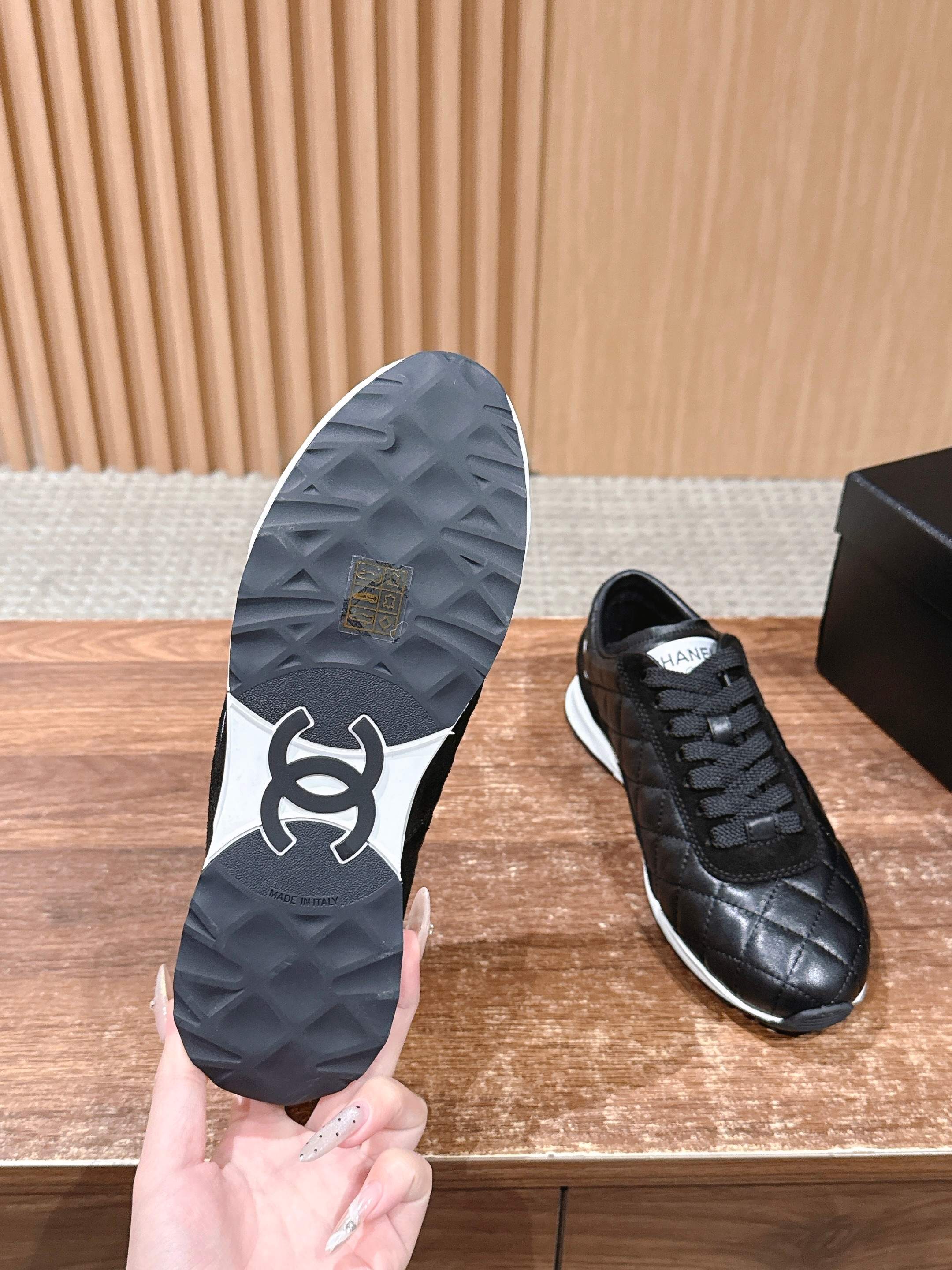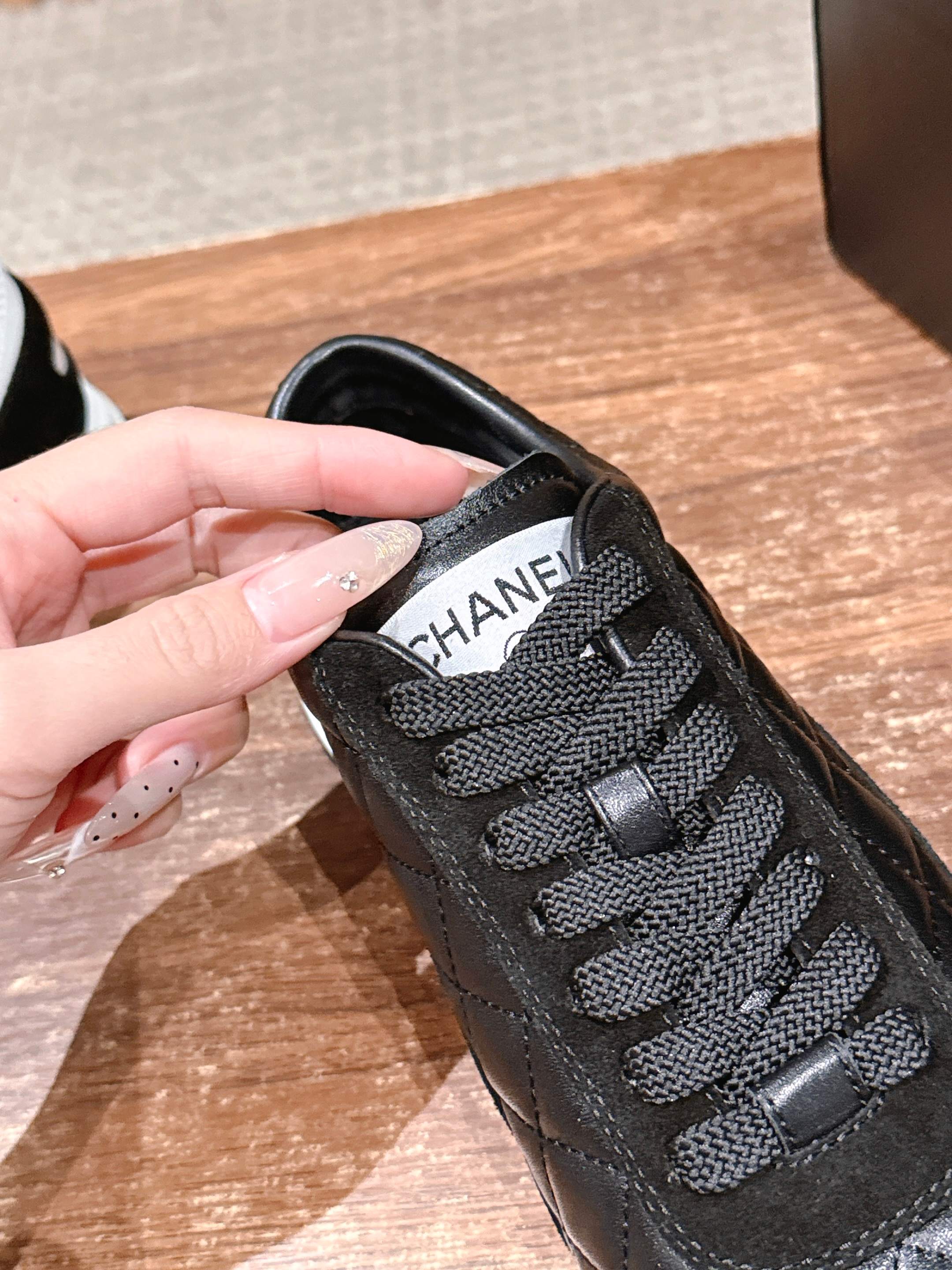 CHANEL 香奈儿26C最新配色菱格运动鞋‼ 香家隐藏大爆款最新色网球鞋!纯原小羊皮超级软,大大的鞋舌是这款鞋的灵魂!整鞋纯原渠道材料!独家zp私模大底! 鞋面:牛反绒+柔软进口防水布+后包牛皮 内里:垫脚:采用羊皮+超柔软毛巾布 大底:莱卡布垫压EvA发泡脚床+橡胶模具大底 跟高:2.5CM 尺码:35/36/37/38/39/40(40不退换)