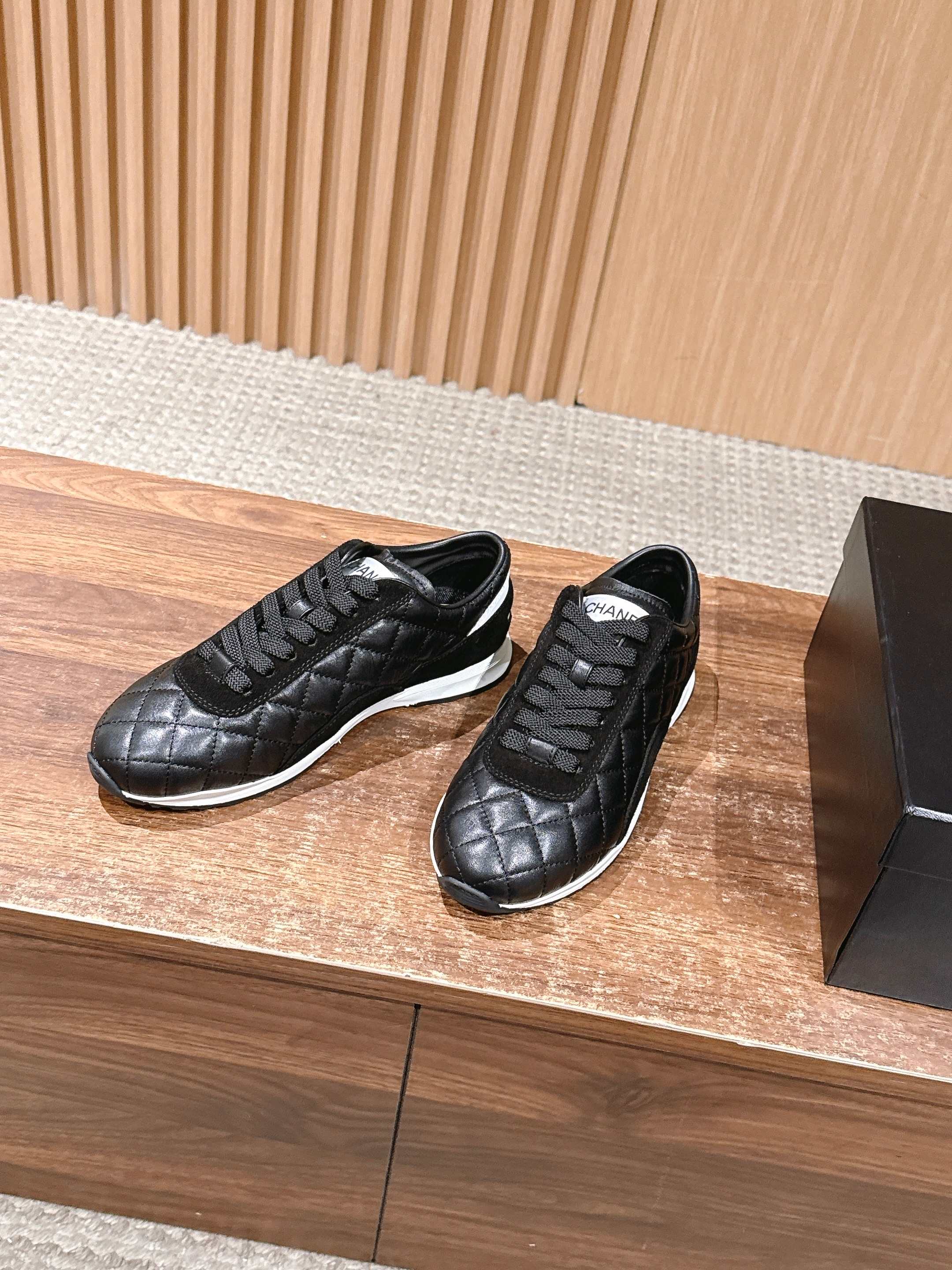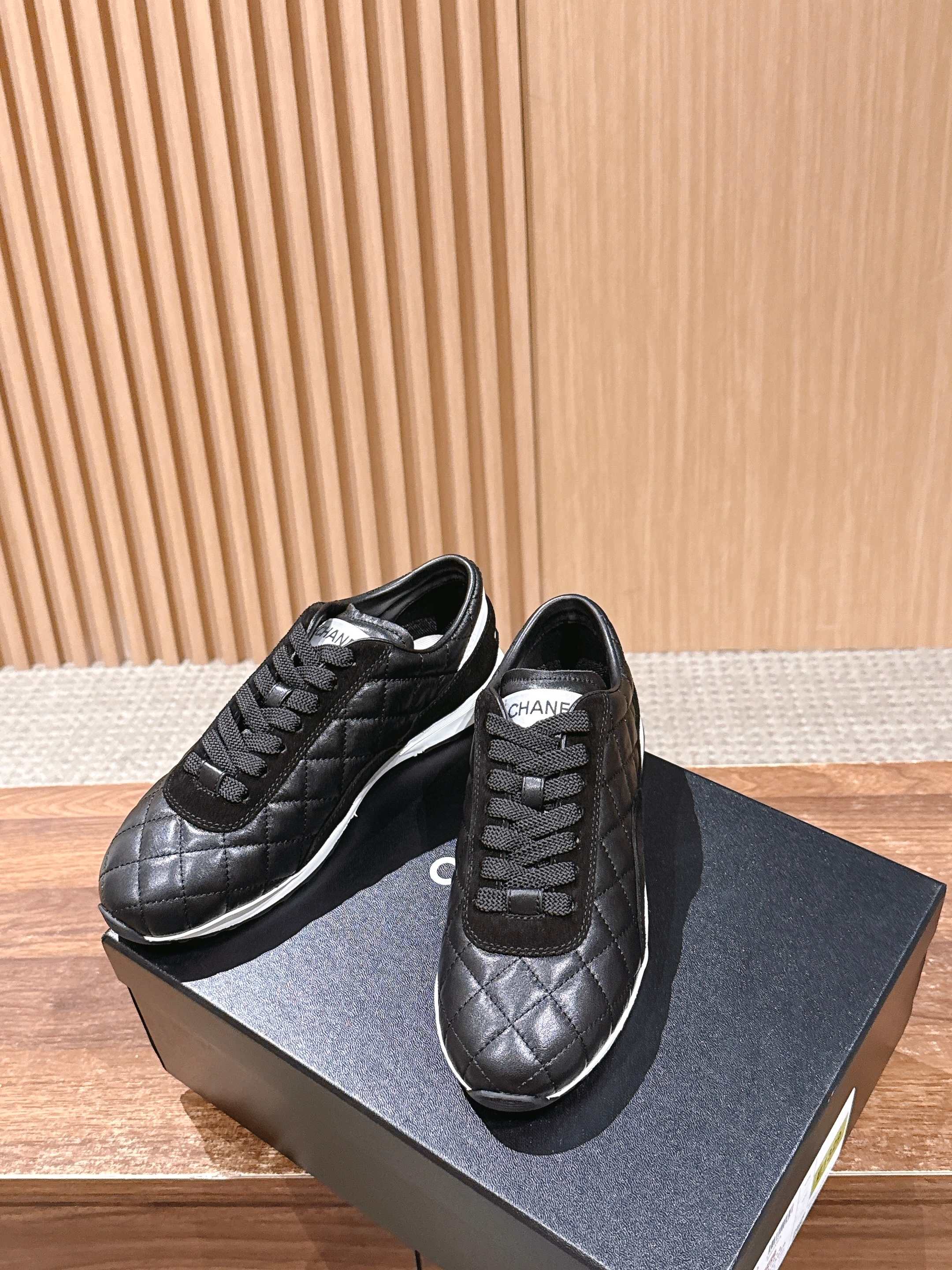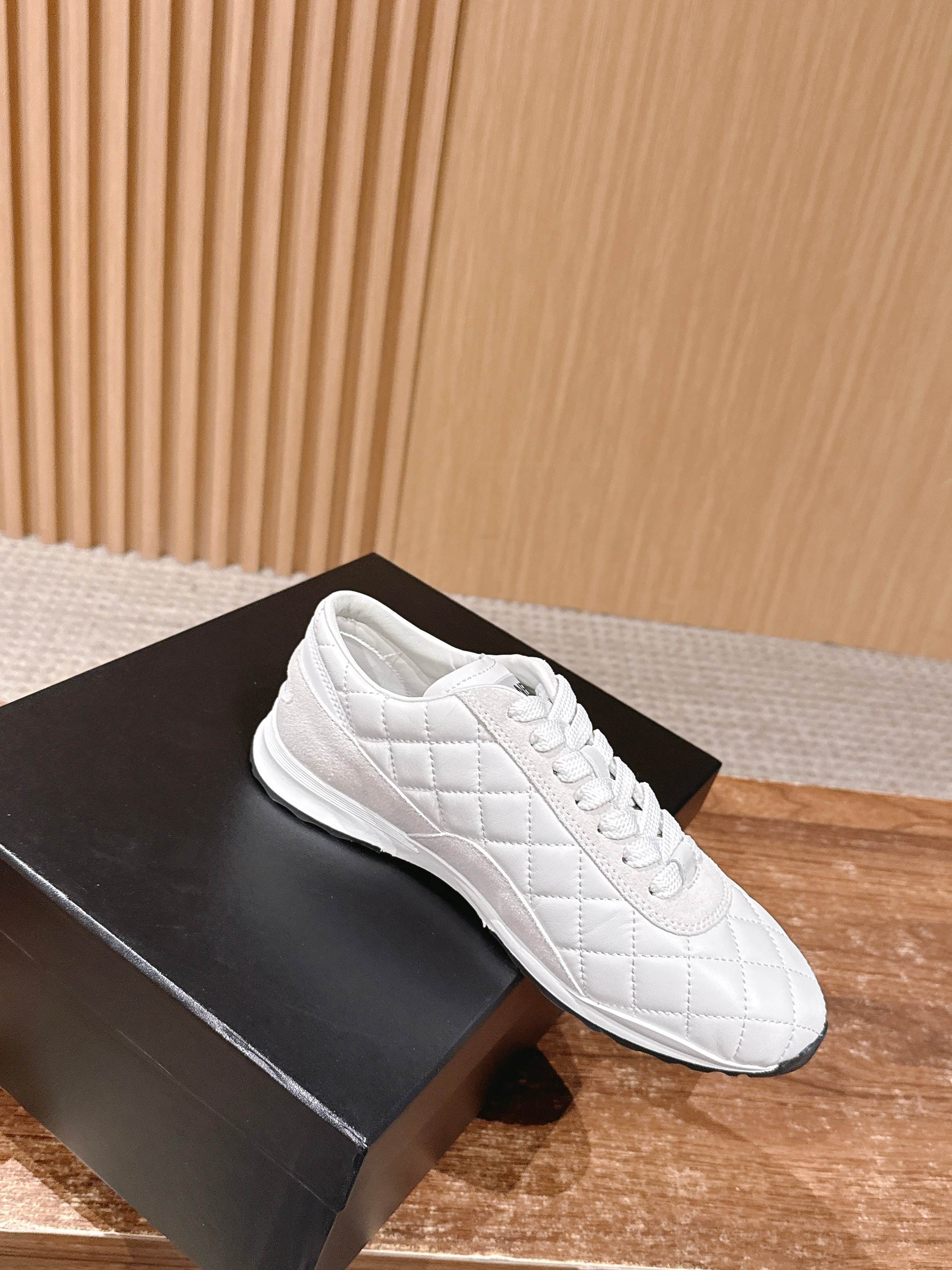 CHANEL 香奈儿26C最新配色菱格运动鞋‼ 香家隐藏大爆款最新色网球鞋!纯原小羊皮超级软,大大的鞋舌是这款鞋的灵魂!整鞋纯原渠道材料!独家zp私模大底! 鞋面:牛反绒+柔软进口防水布+后包牛皮 内里:垫脚:采用羊皮+超柔软毛巾布 大底:莱卡布垫压EvA发泡脚床+橡胶模具大底 跟高:2.5CM 尺码:35/36/37/38/39/40(40不退换)