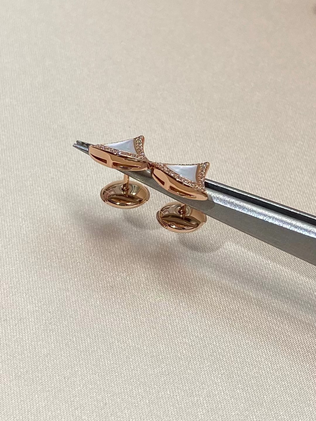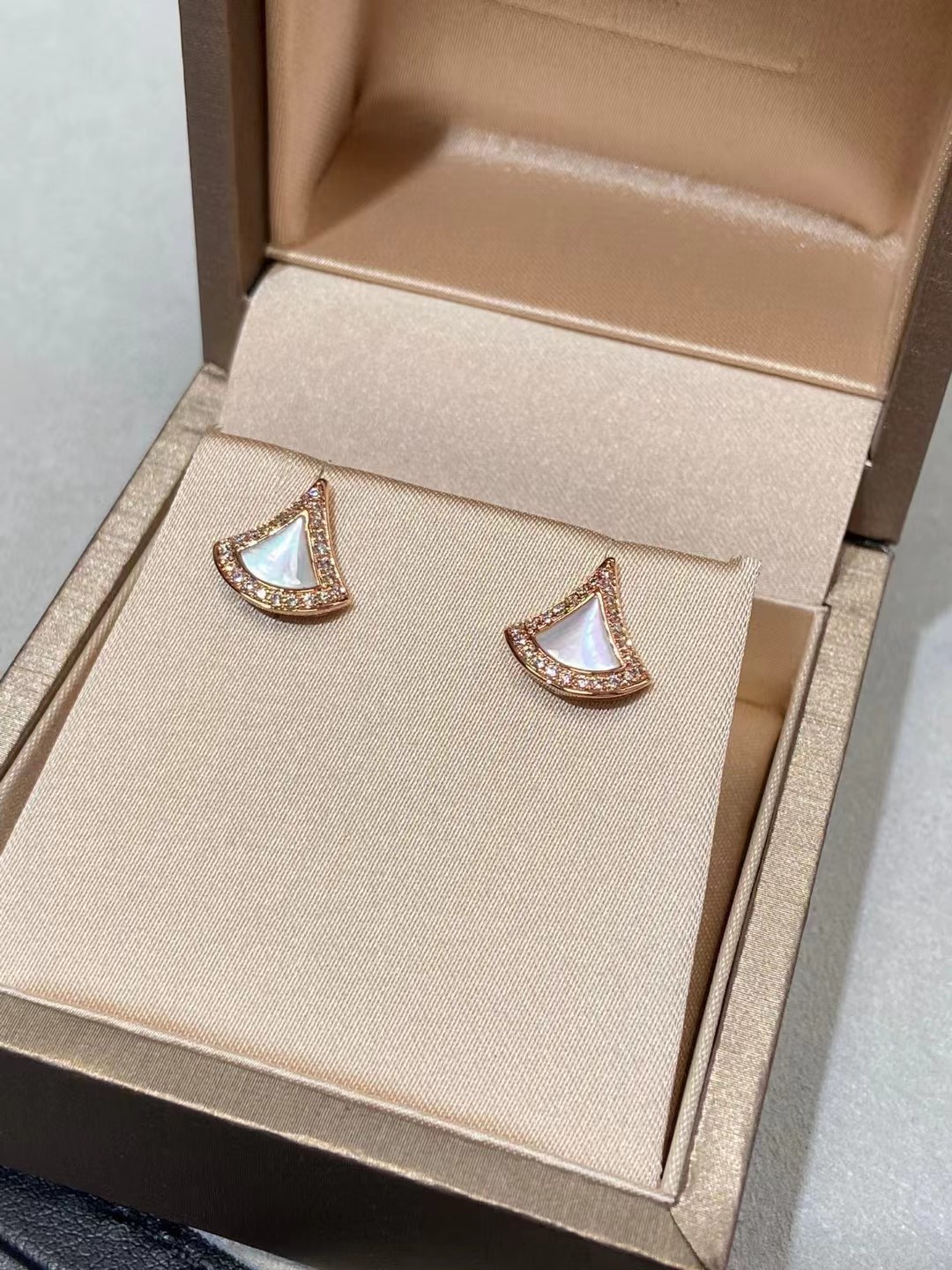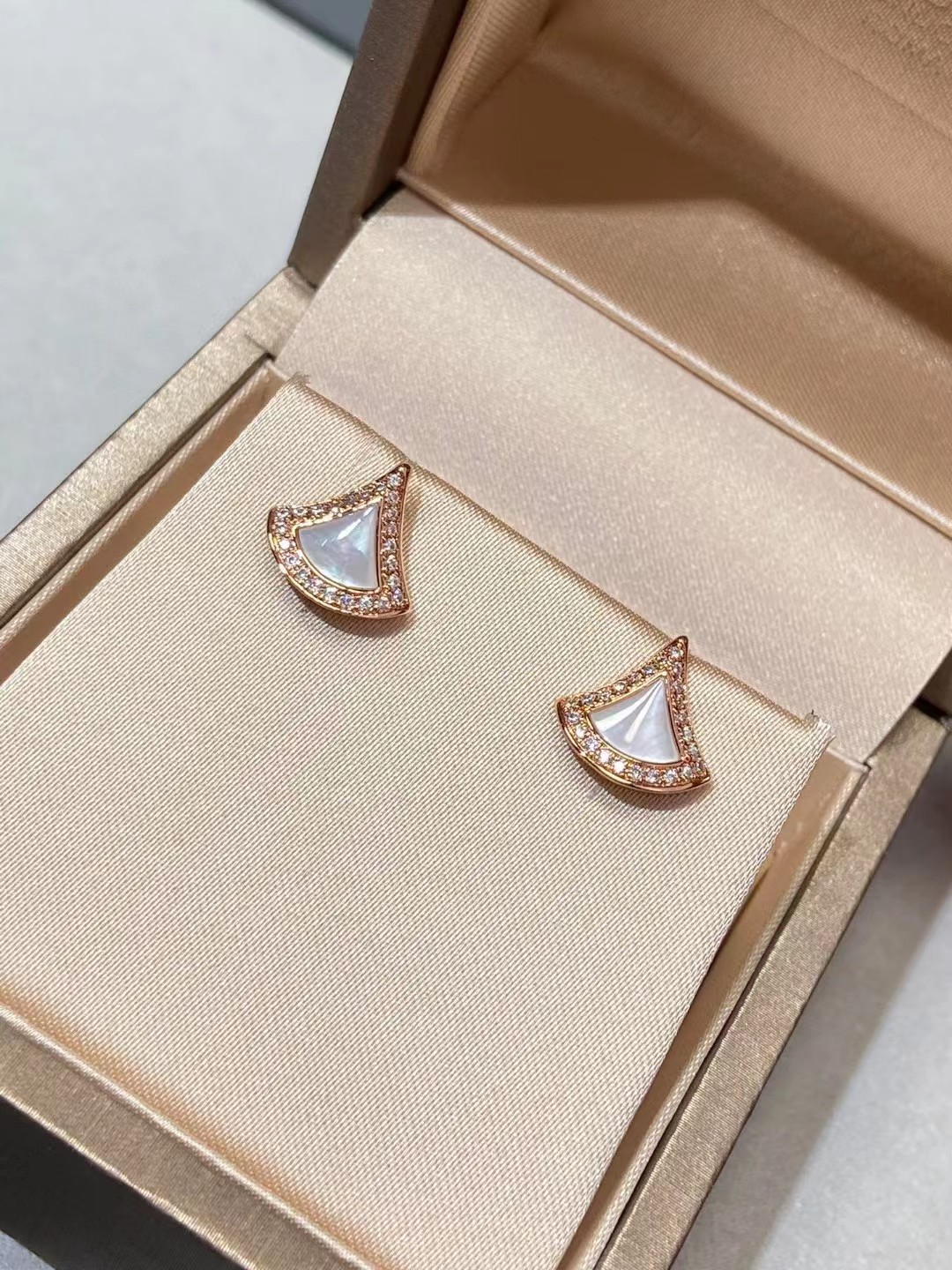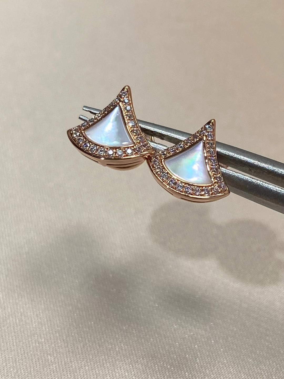 DIVAS' DREAM系列18K玫瑰金耳钉,精妙演绎意大利风情,以独特的罗马精神向魅力女性致敬。由女性的优雅气质汲取灵感,以密镶钻石勾勒珍珠母贝扇形轮廓:独树一帜的标志性元素结合罗马卡拉卡拉大浴场的马赛克图案,礼赞隽永之美。 通体采用V金电镀0.5咪厚金厚金电镀,保色程度更久。