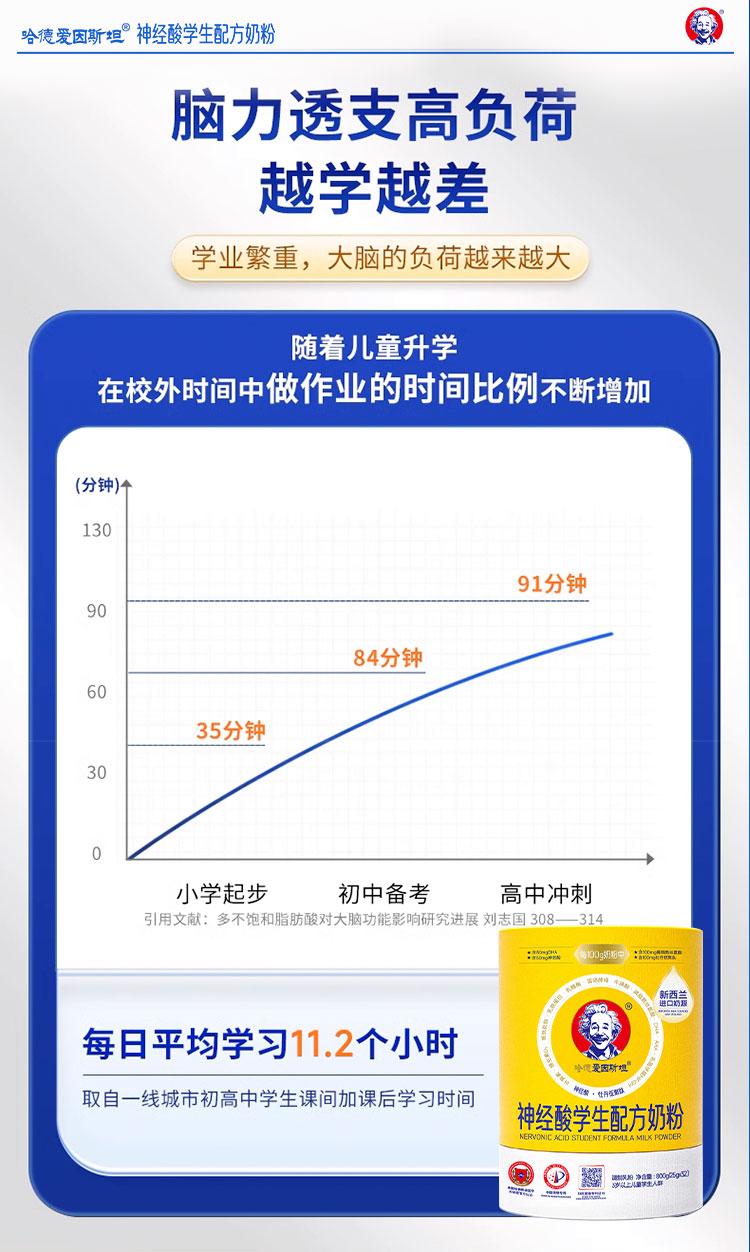 【哈德爱因斯坦】800g/罐 儿童智慧奶粉 学生营养 神经酸 智力记忆力 985智慧配方