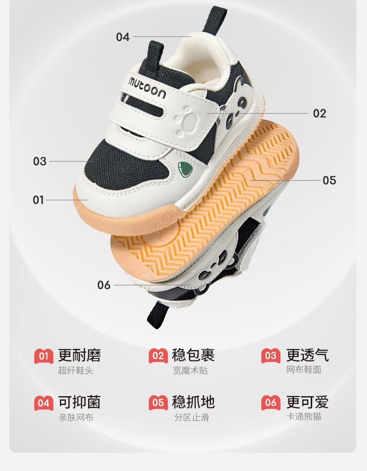 牧童2025秋季新款网面鞋宝宝透气软底熊猫鞋防滑儿童稳护机能鞋子
