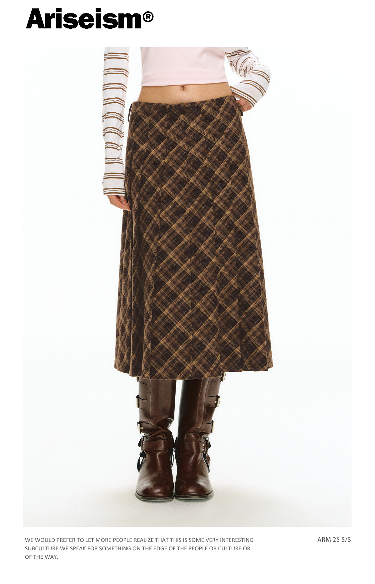 Ariseism 美式复古高级感半身裙女秋冬新款格子裙子