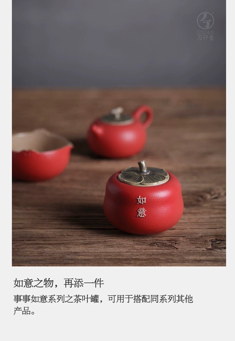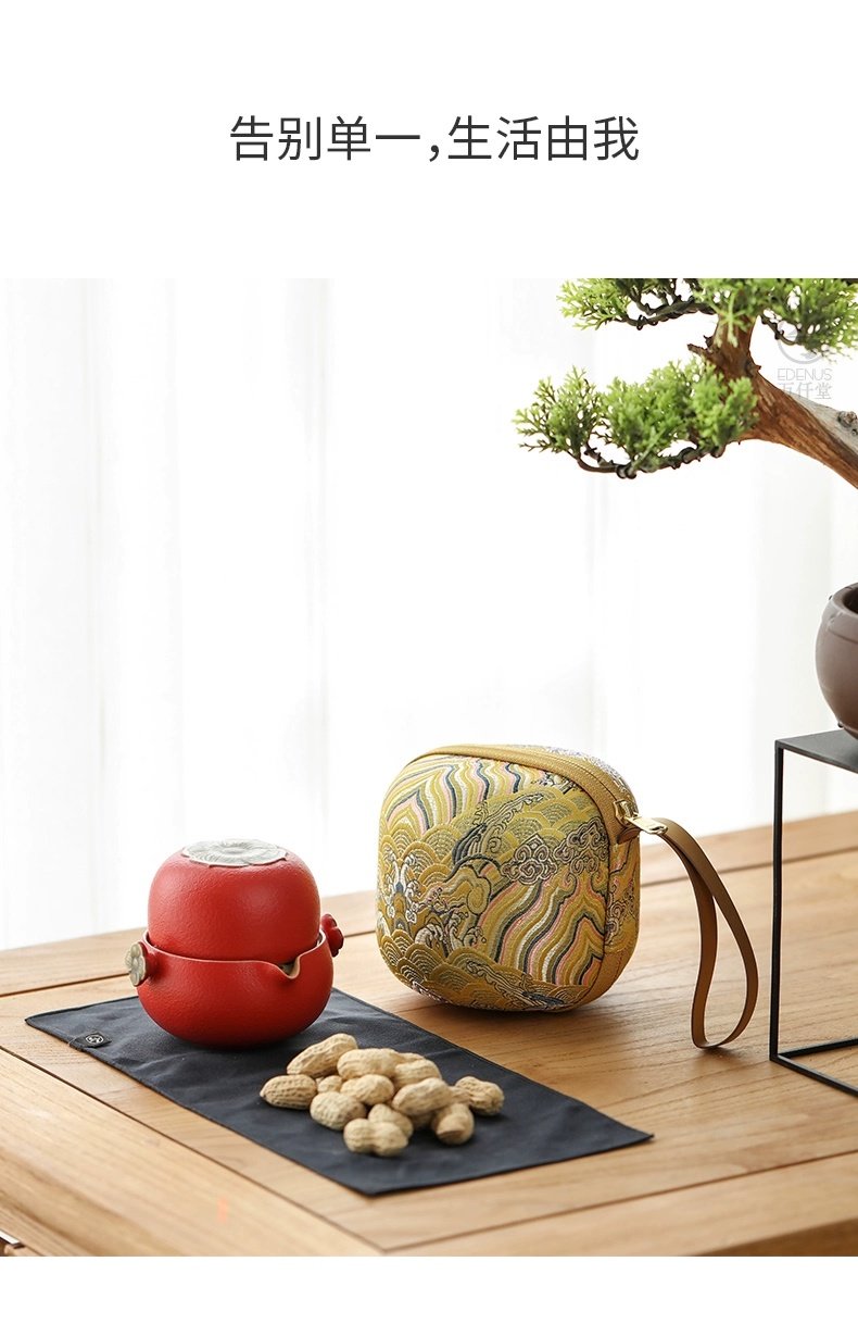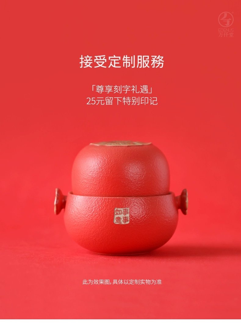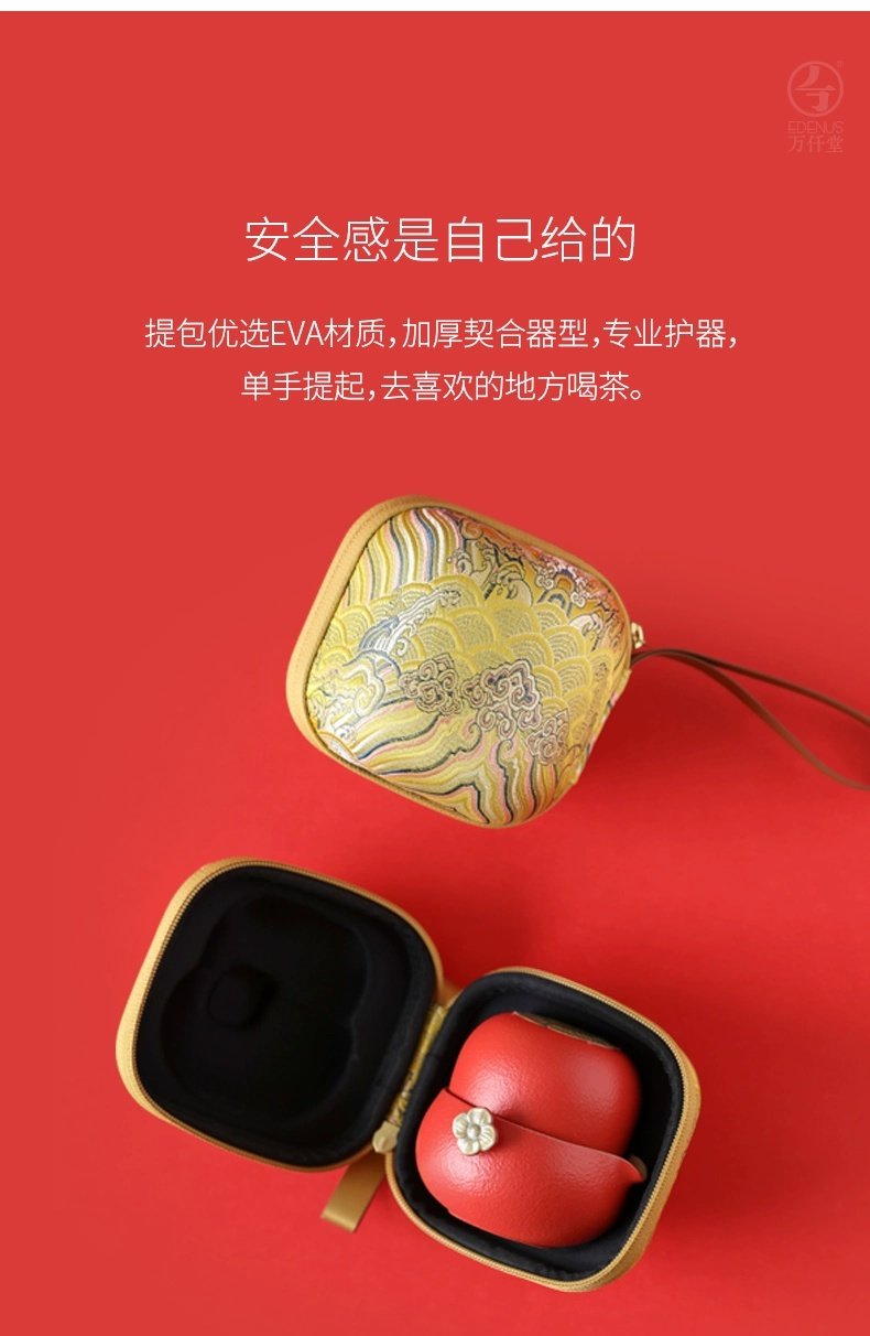 【预售7天】万仟堂功夫茶具快客杯一壶一杯单人便携式旅行茶具套装 高档茶叶罐陶瓷密封便携 事事如意 瓷器商品不支持七天无理由
