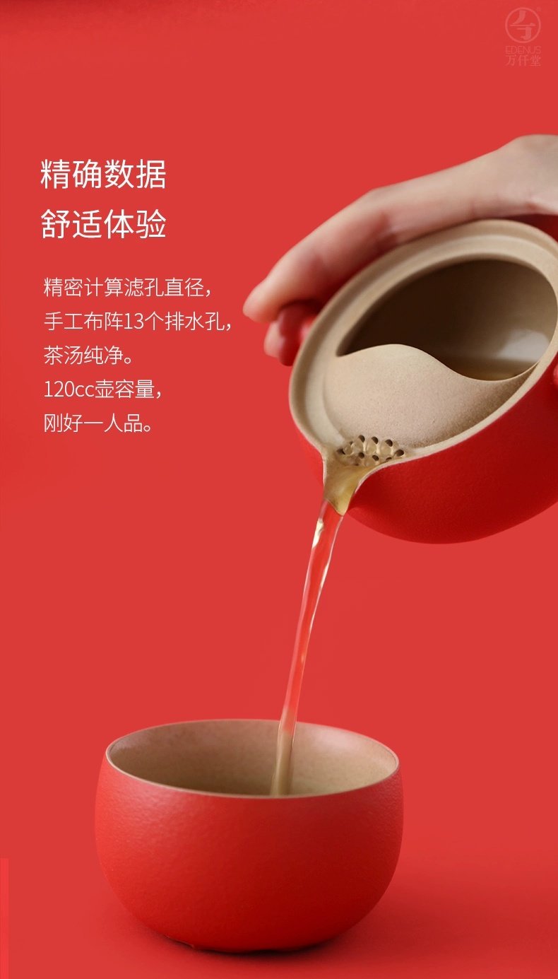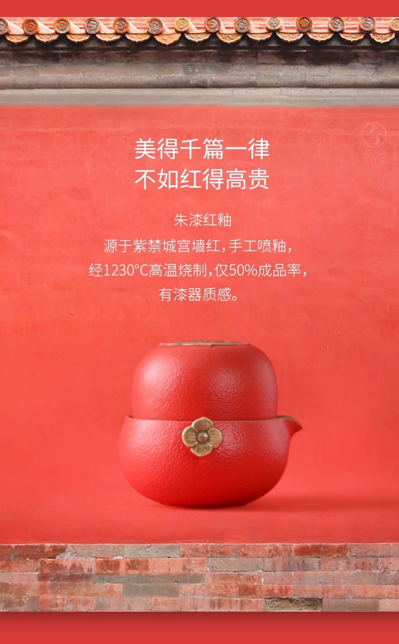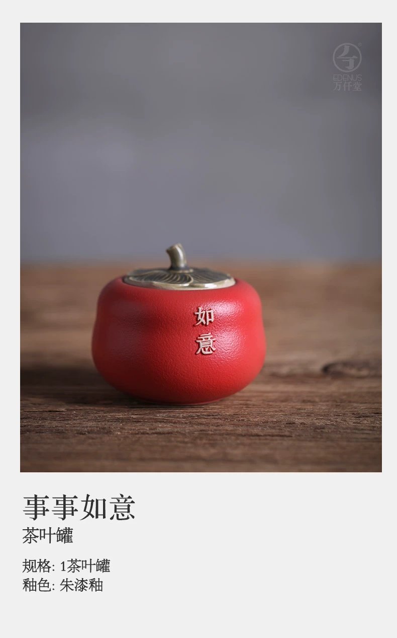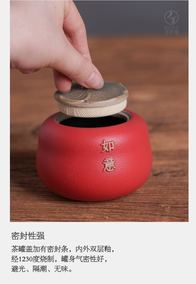 【预售7天】万仟堂功夫茶具快客杯一壶一杯单人便携式旅行茶具套装 高档茶叶罐陶瓷密封便携 事事如意 瓷器商品不支持七天无理由