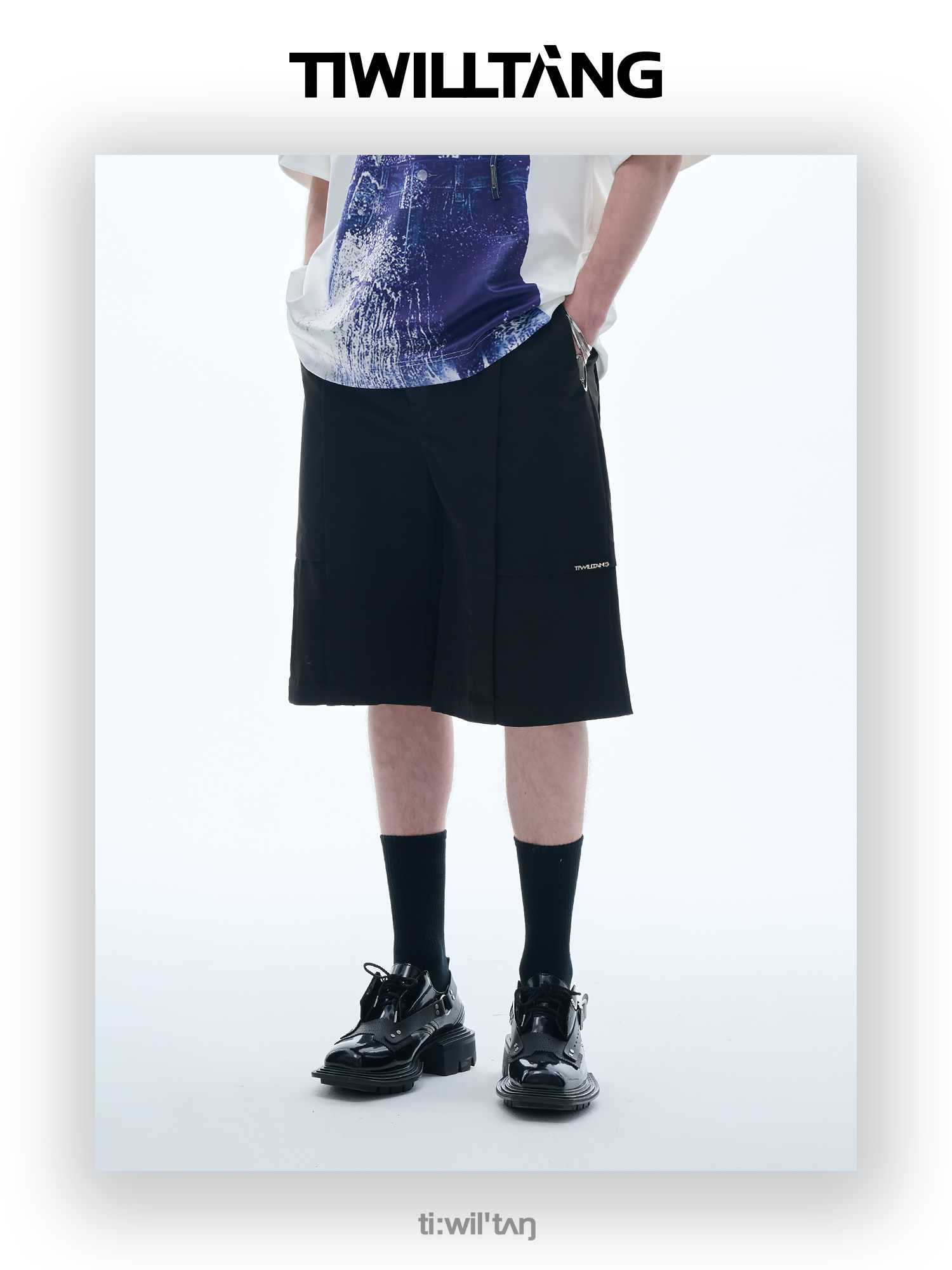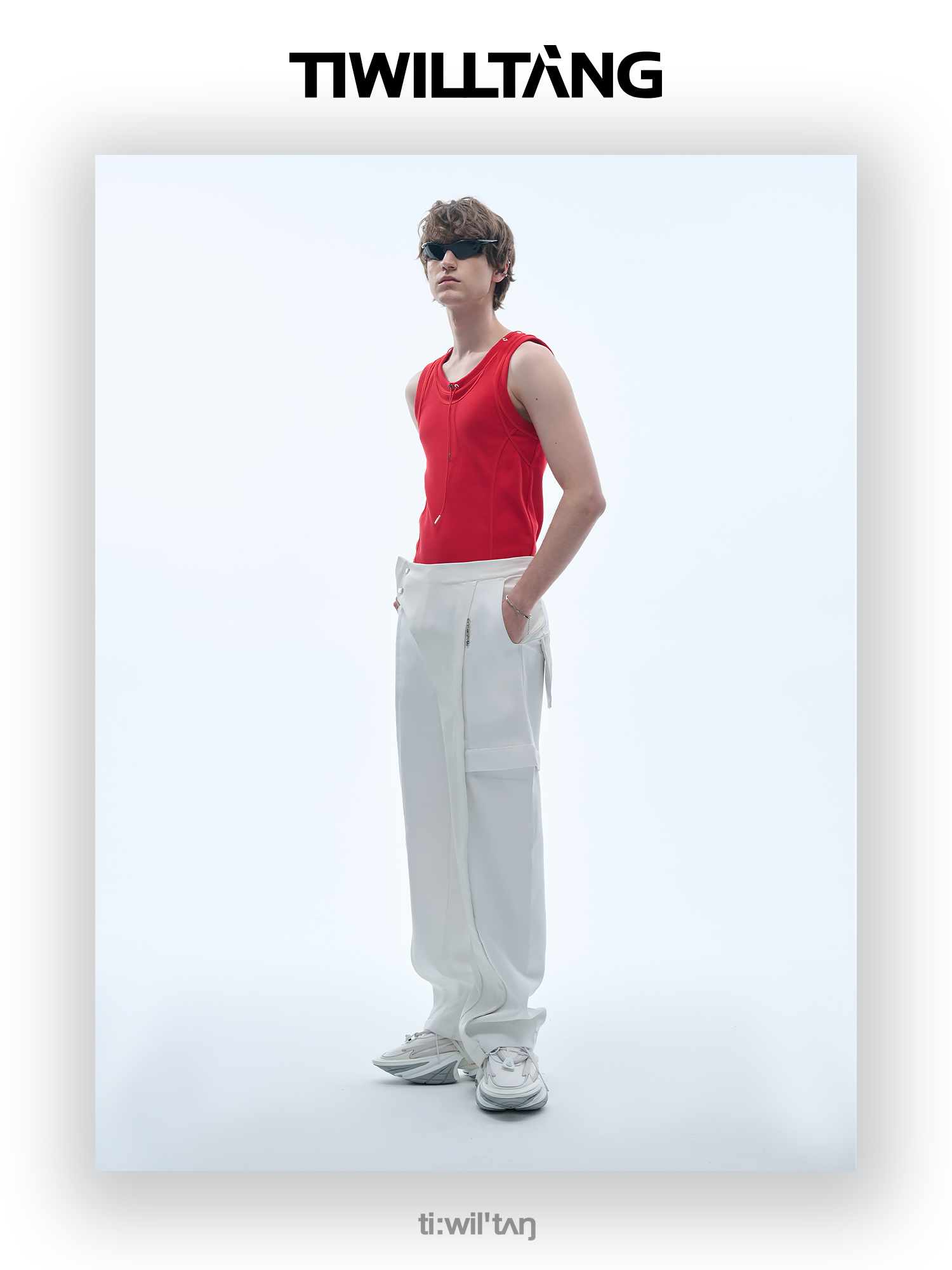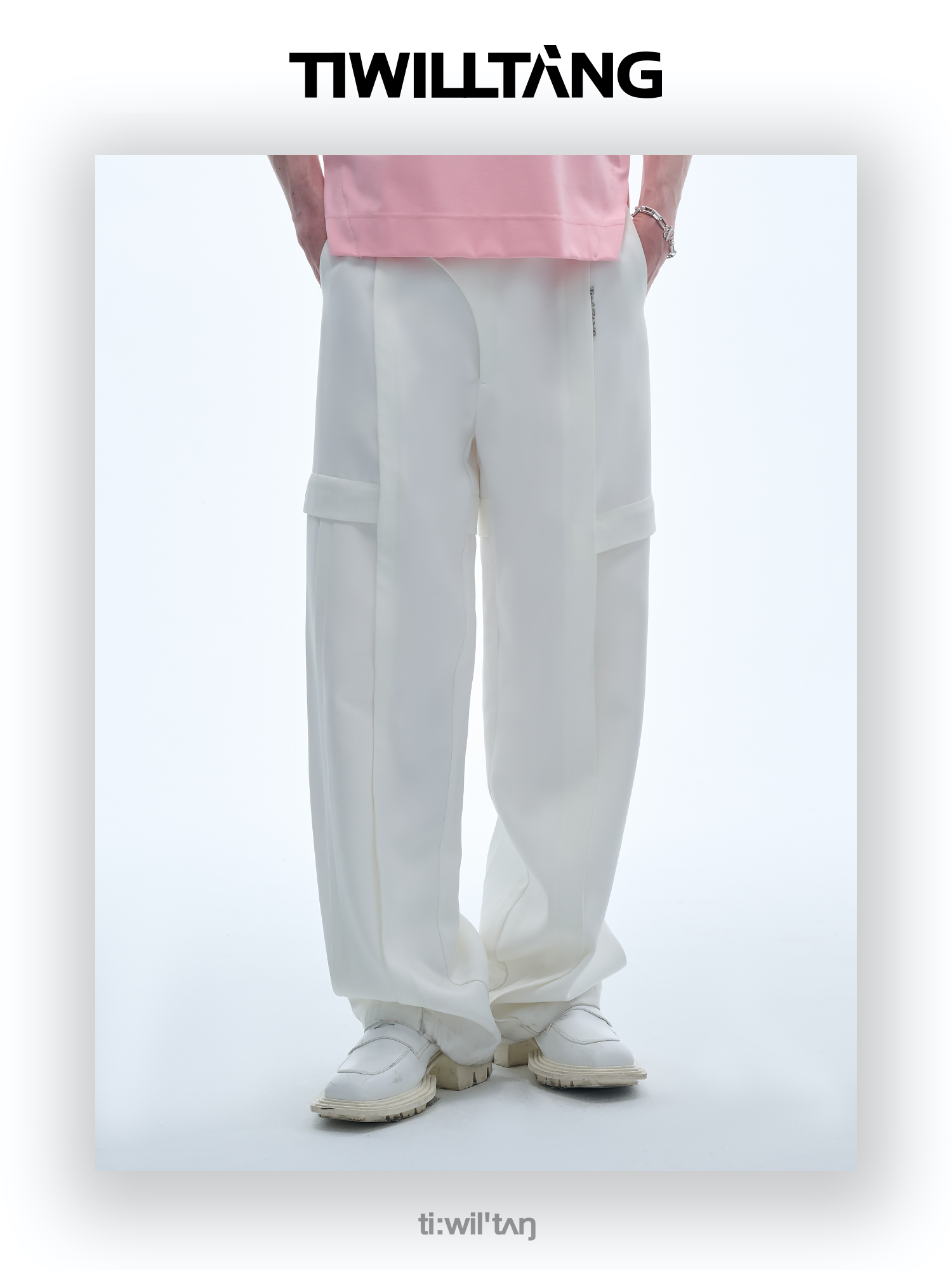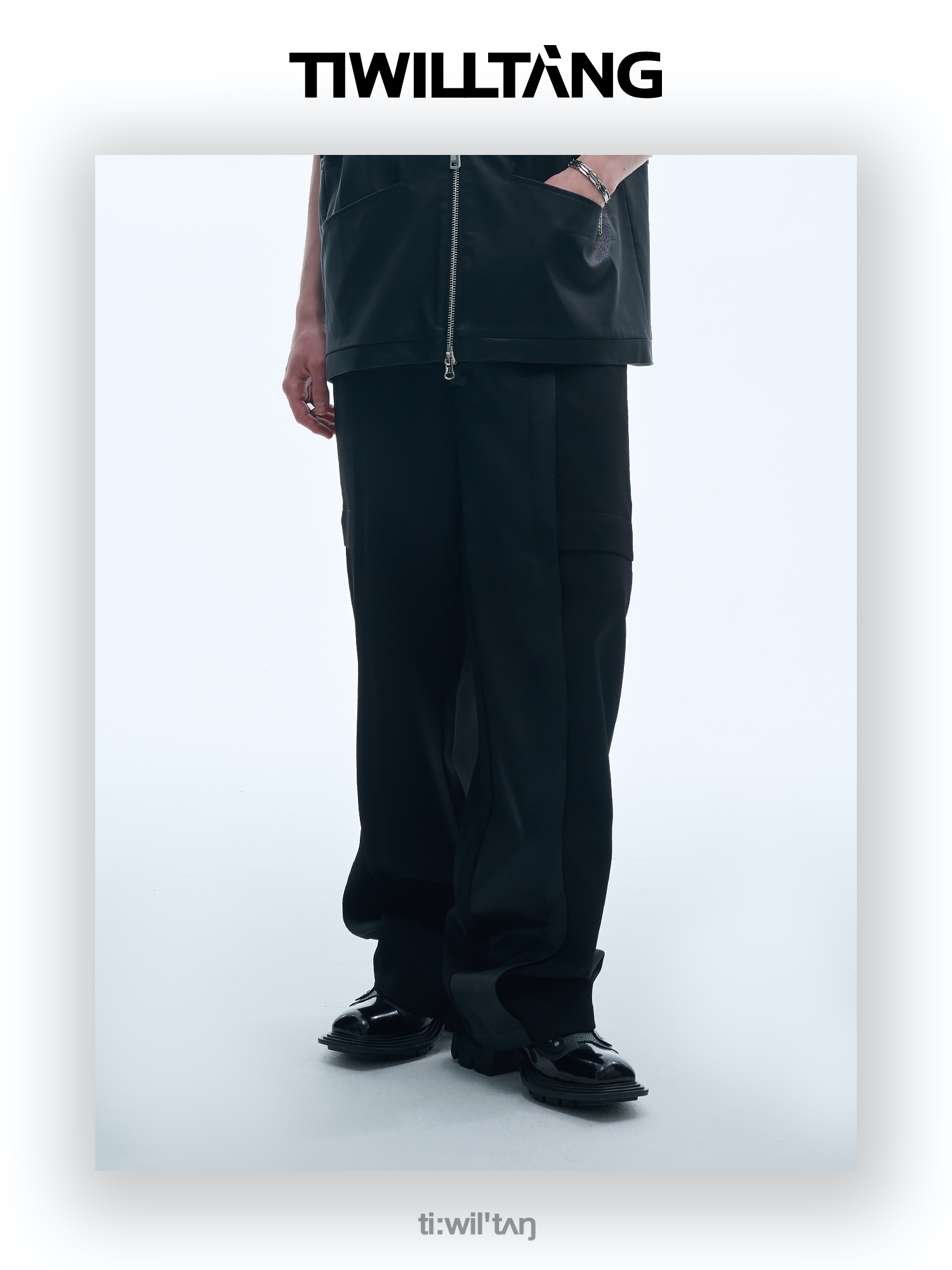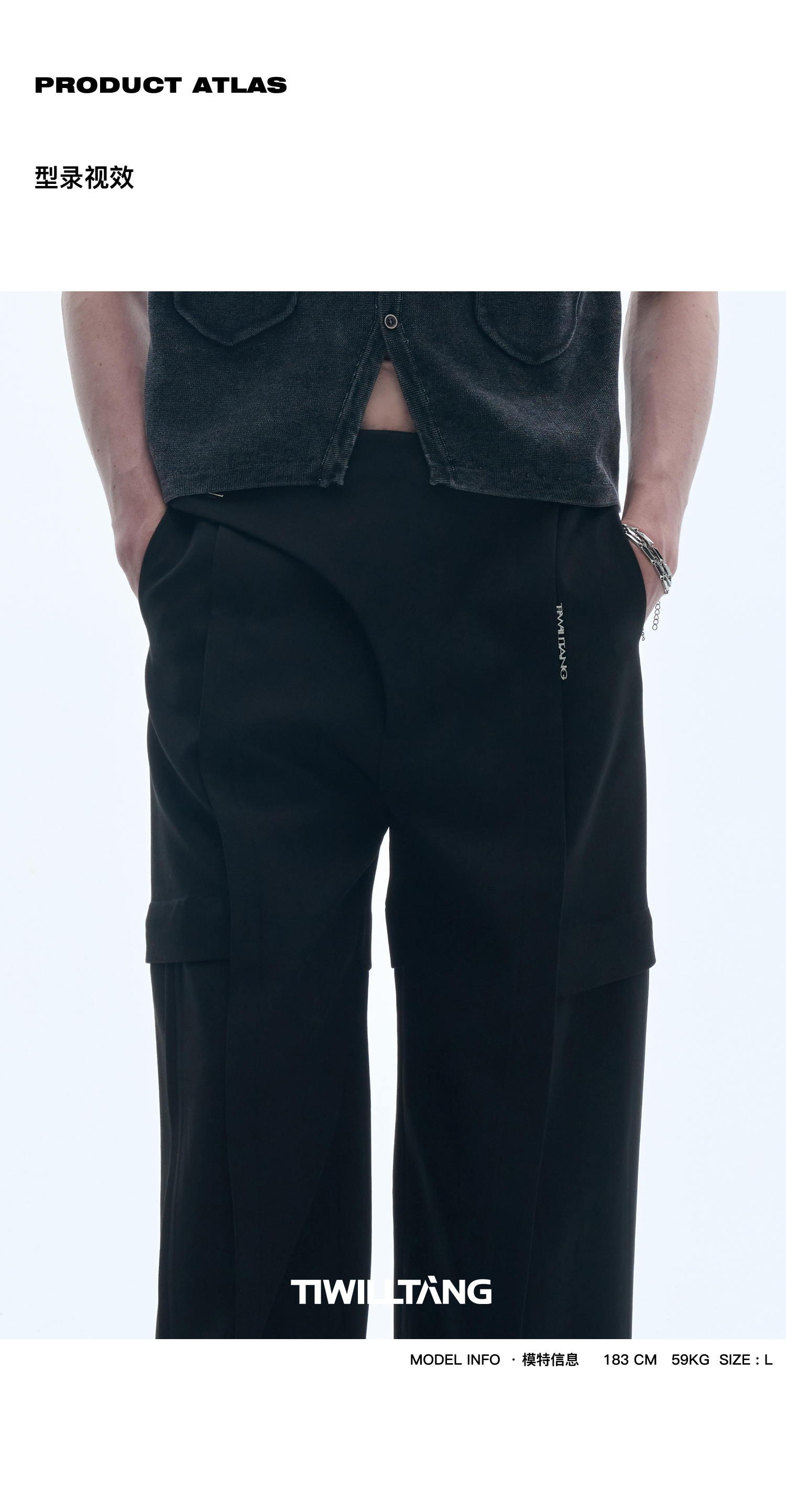 TIWILLTANG 启世录“叠塬”弧形门襟休闲裤夏季宽松直筒裤男潮流