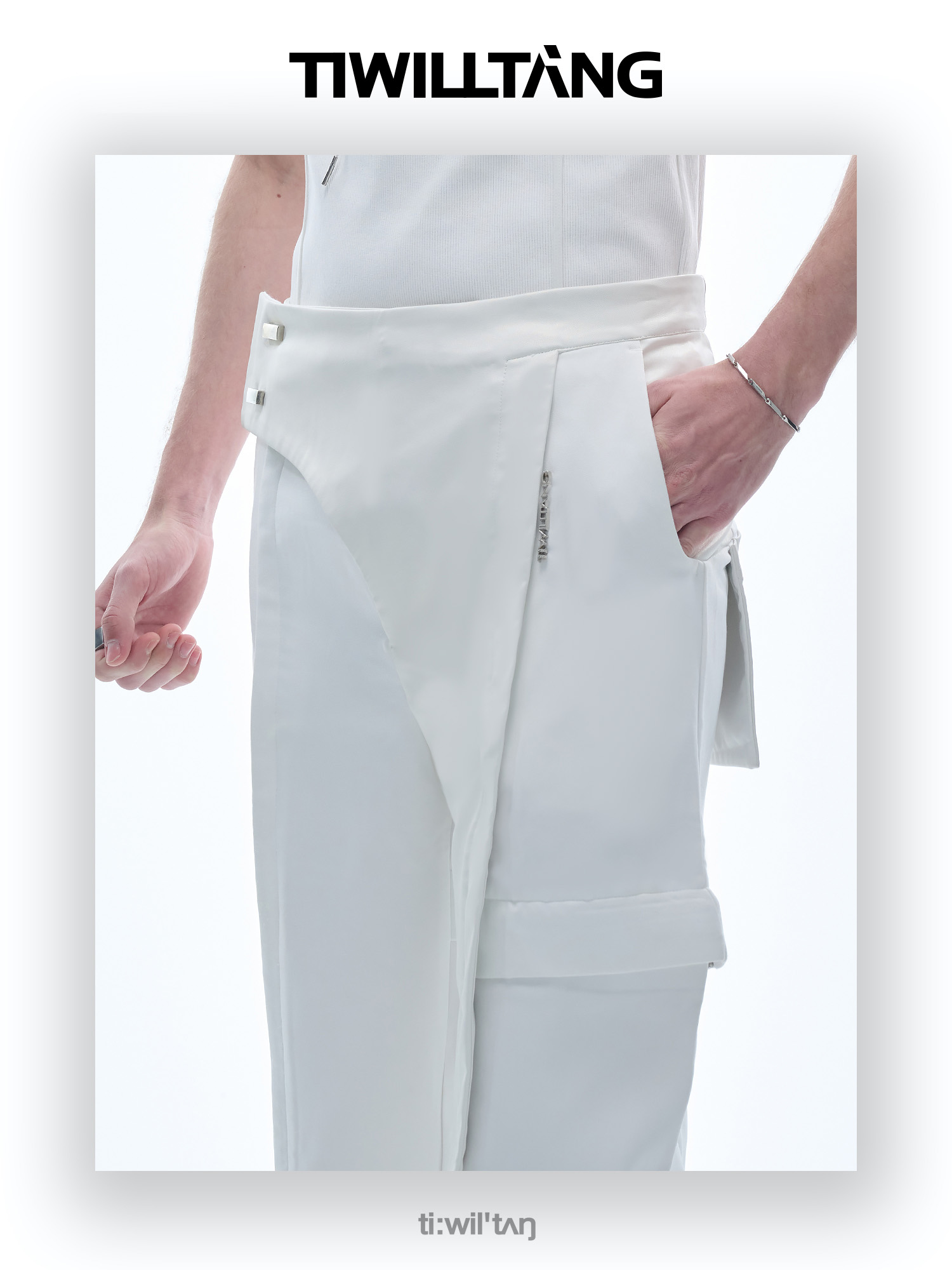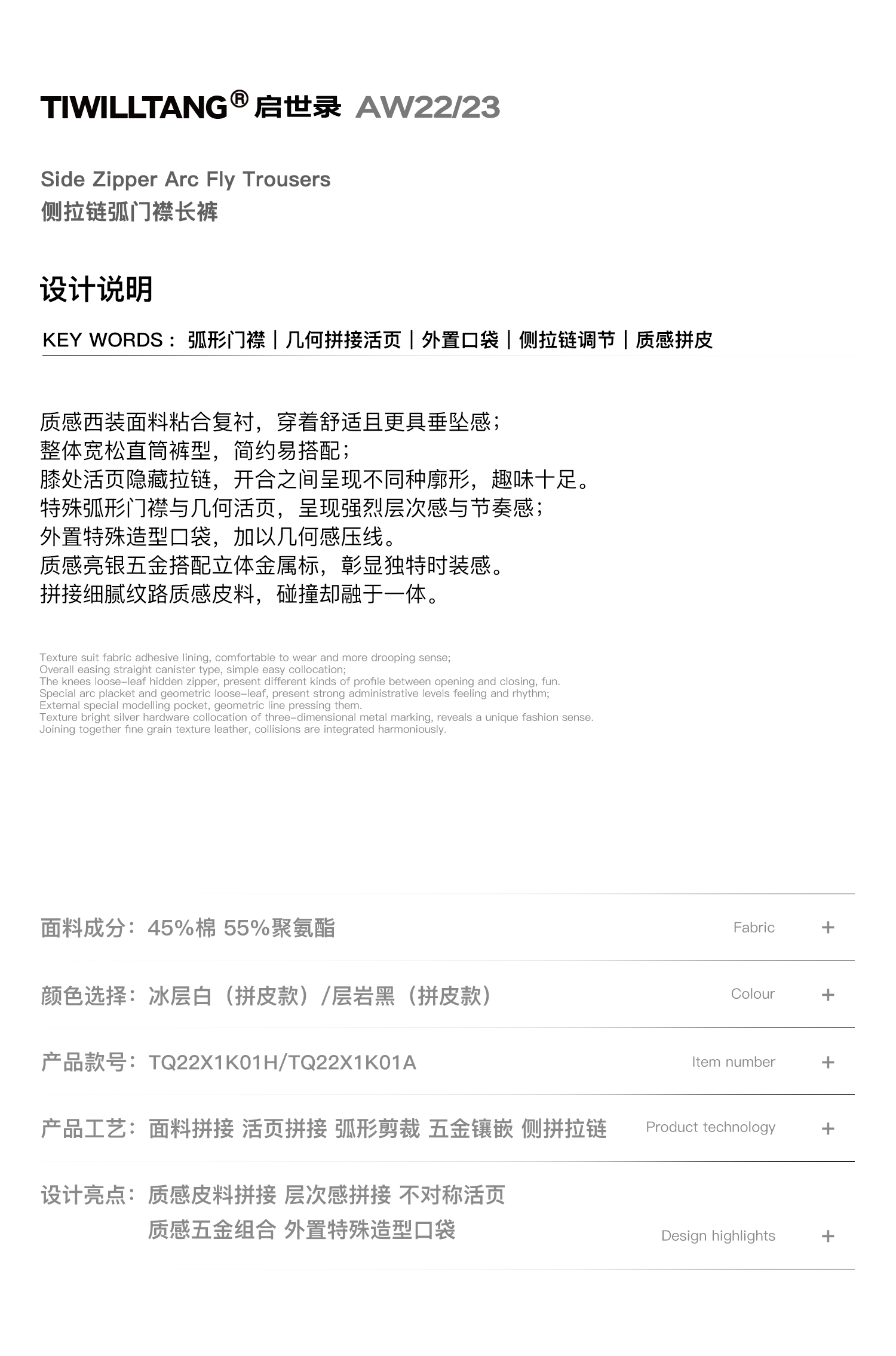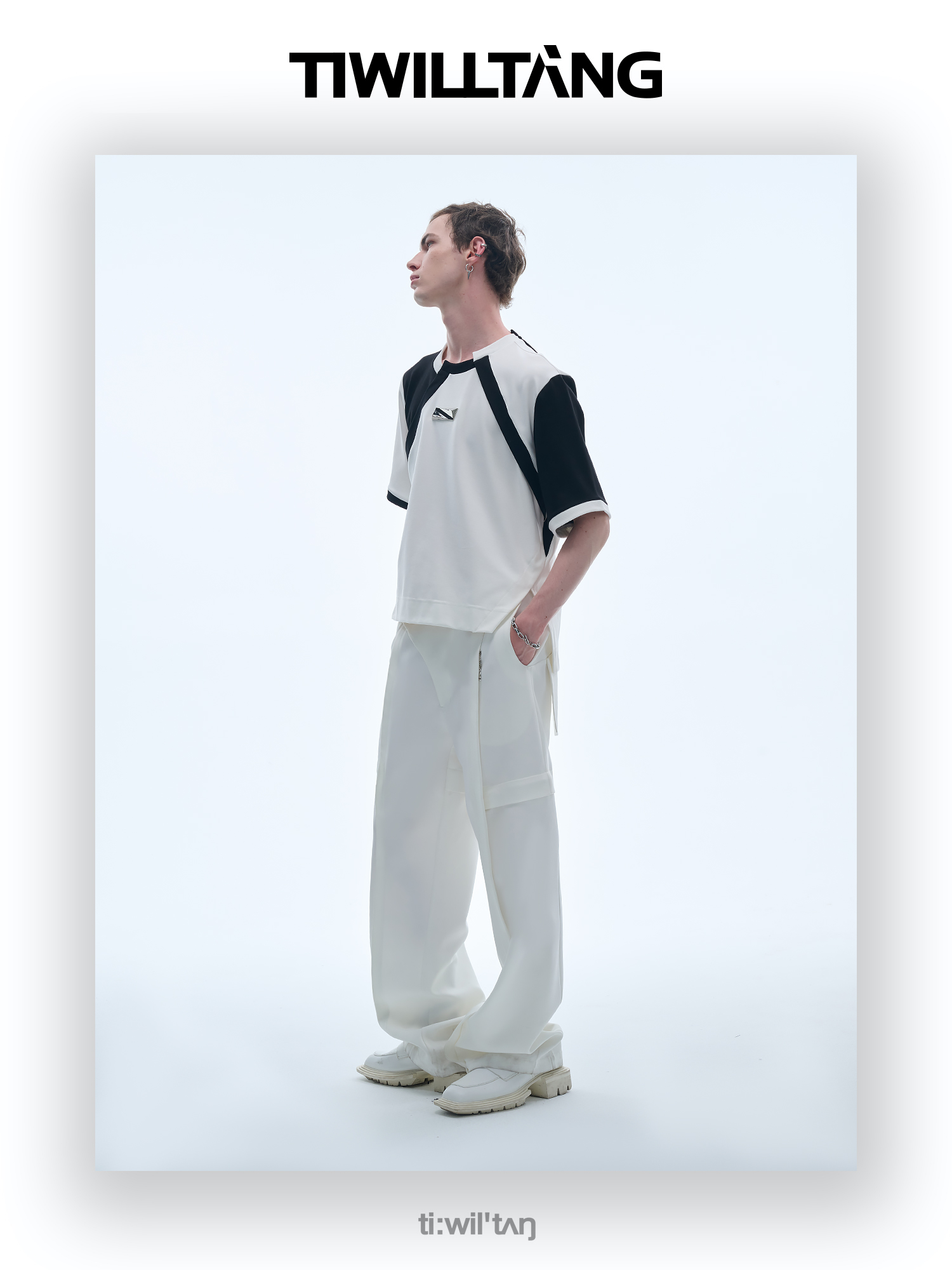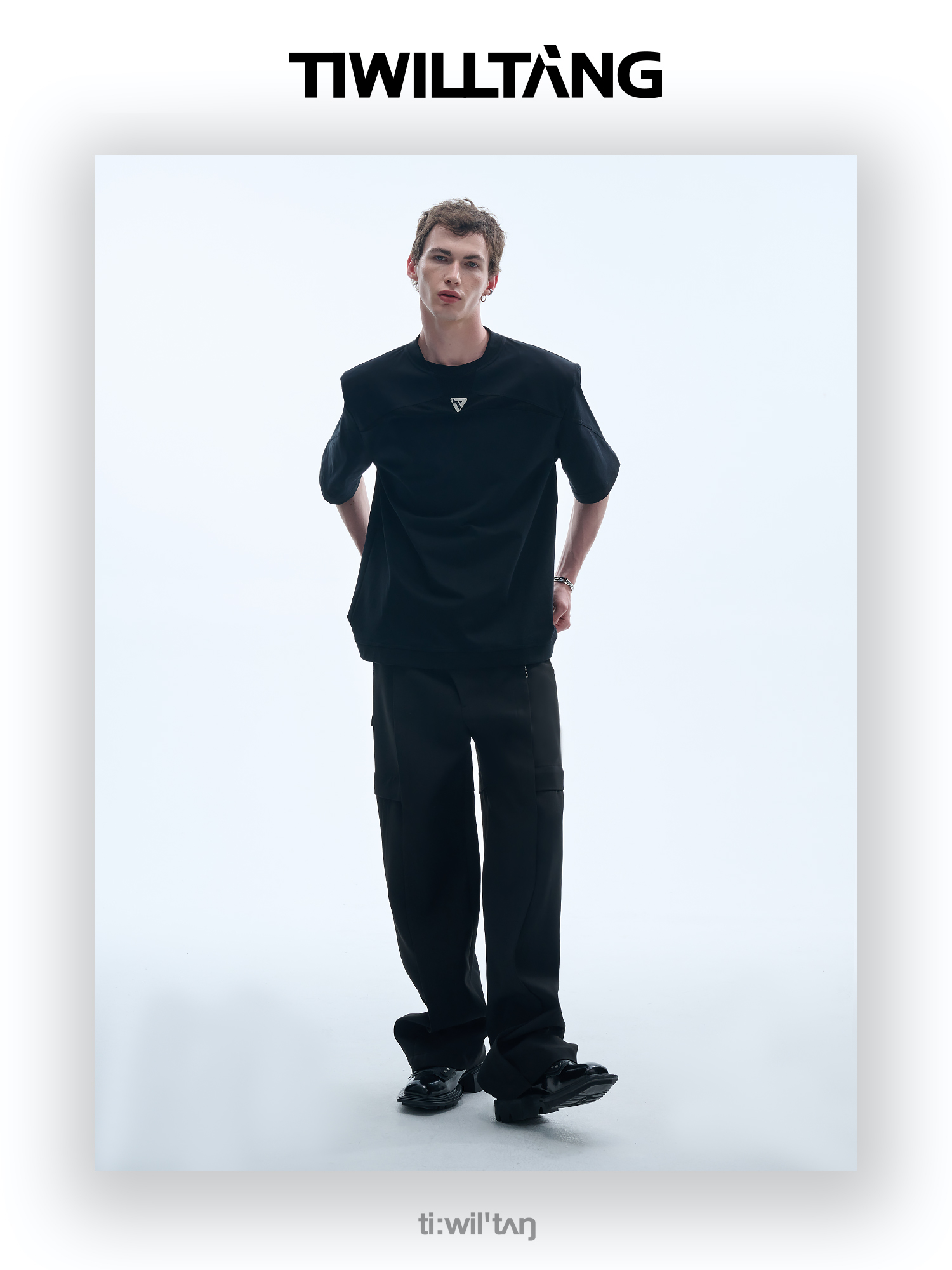 TIWILLTANG 启世录“叠塬”弧形门襟休闲裤夏季宽松直筒裤男潮流