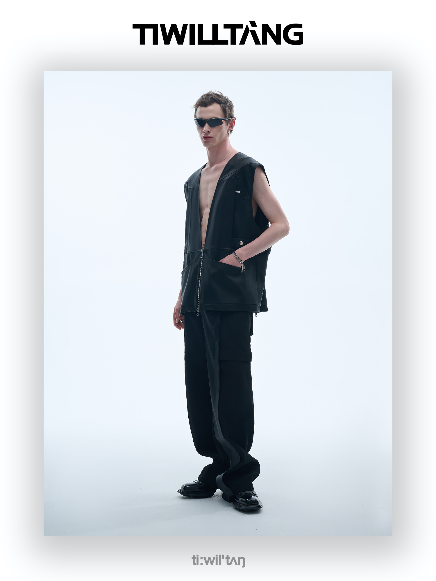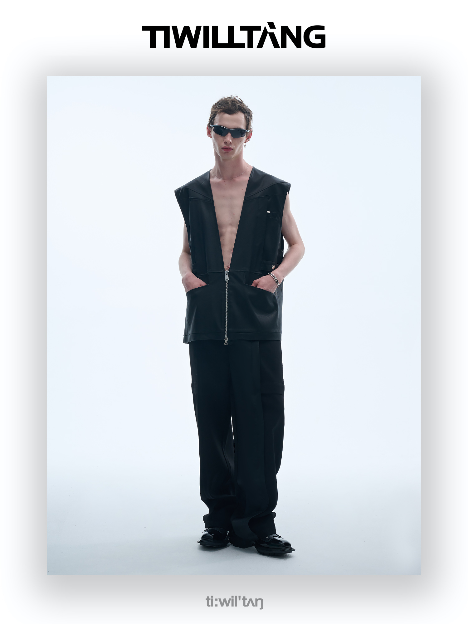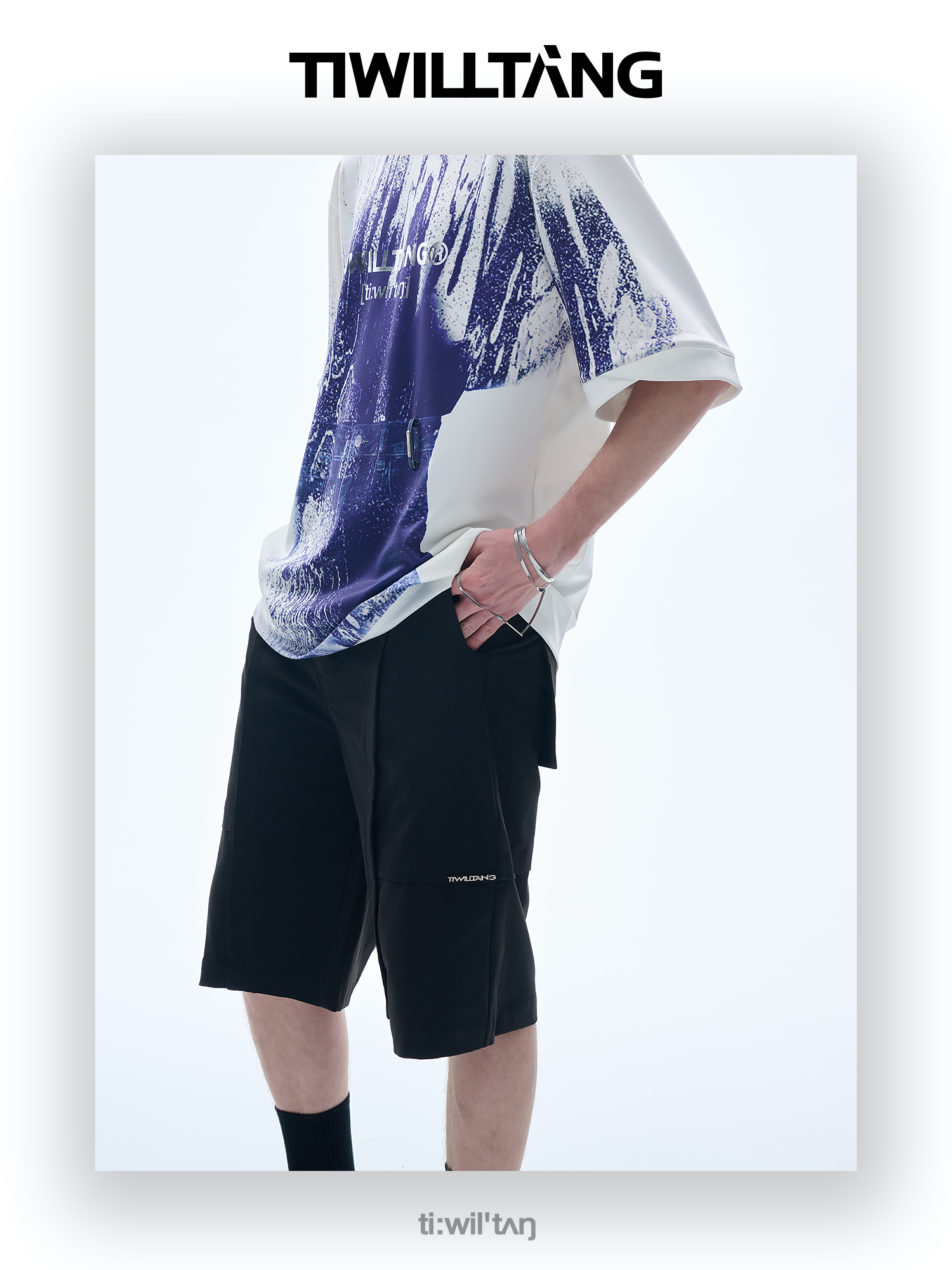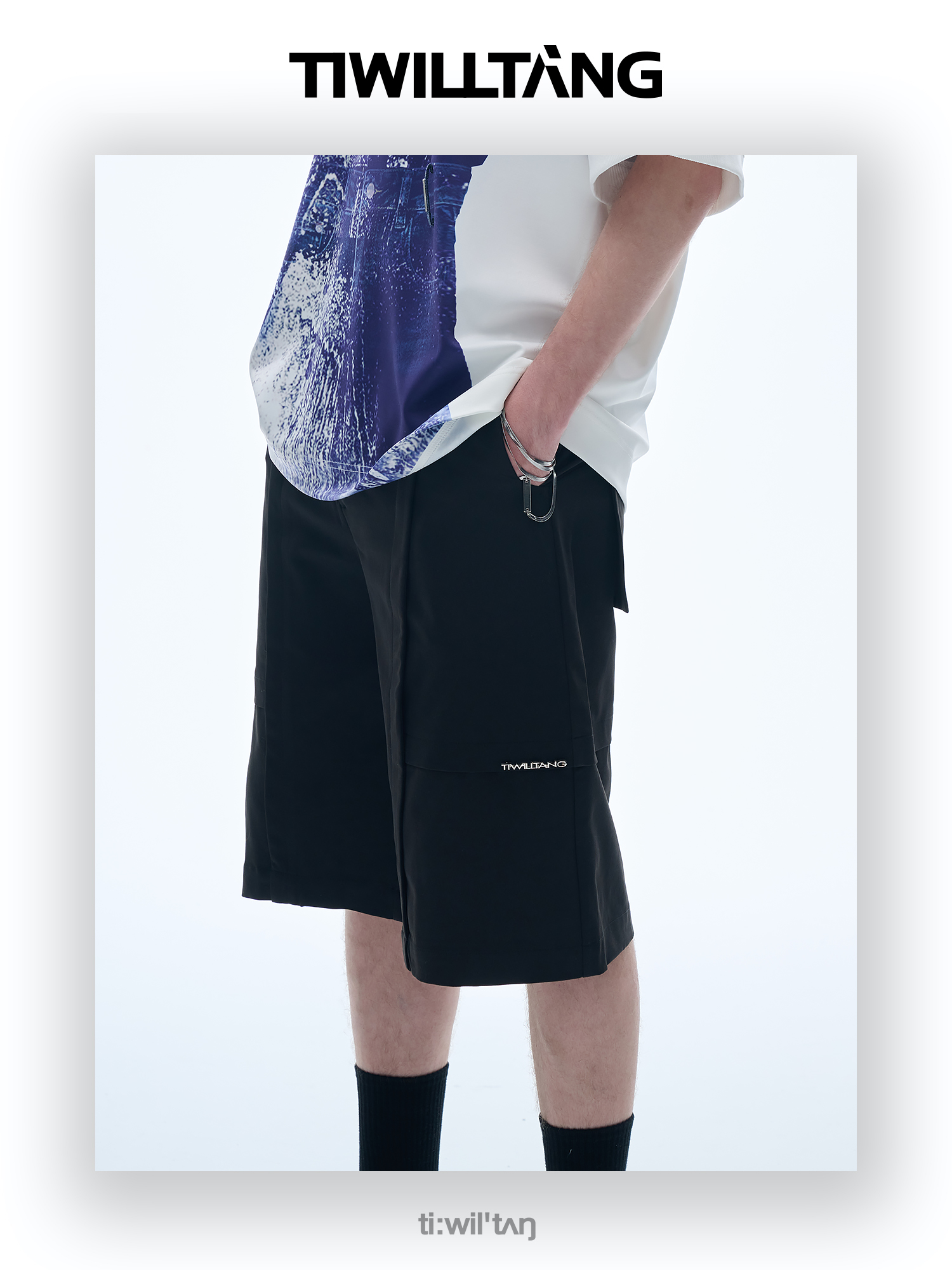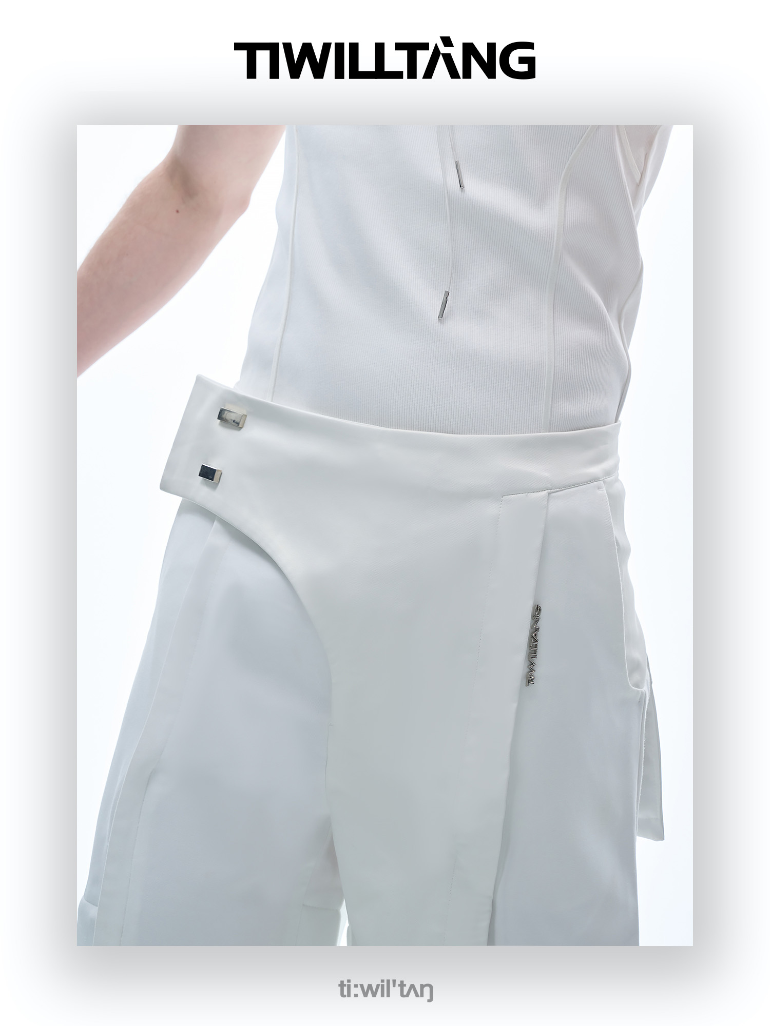 TIWILLTANG 启世录“叠塬”弧形门襟休闲裤夏季宽松直筒裤男潮流