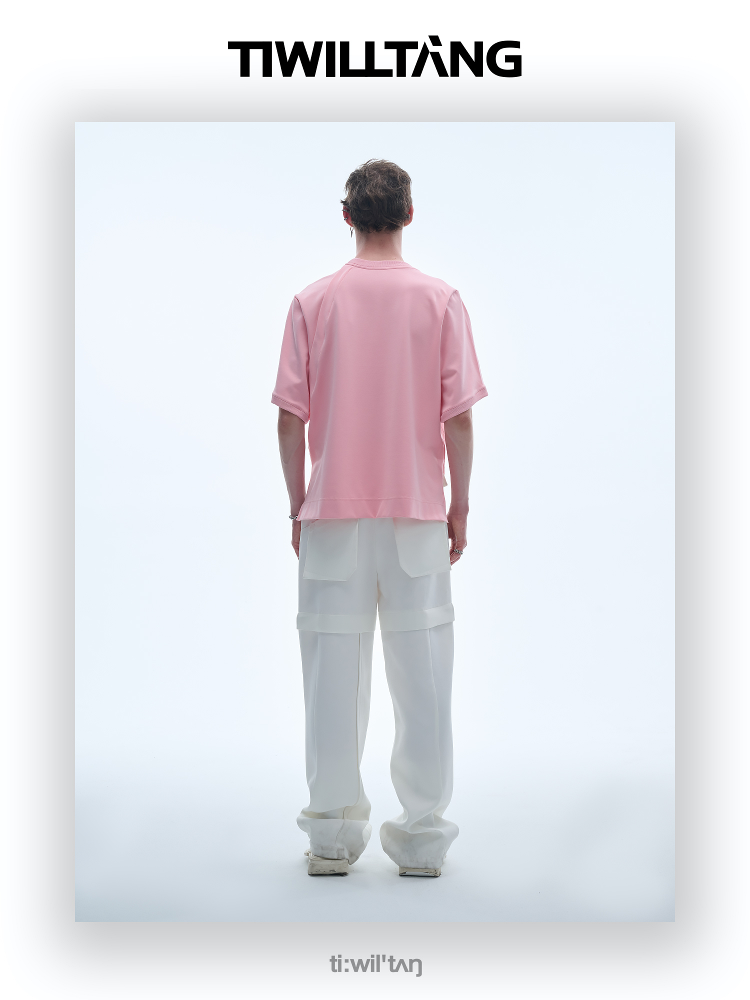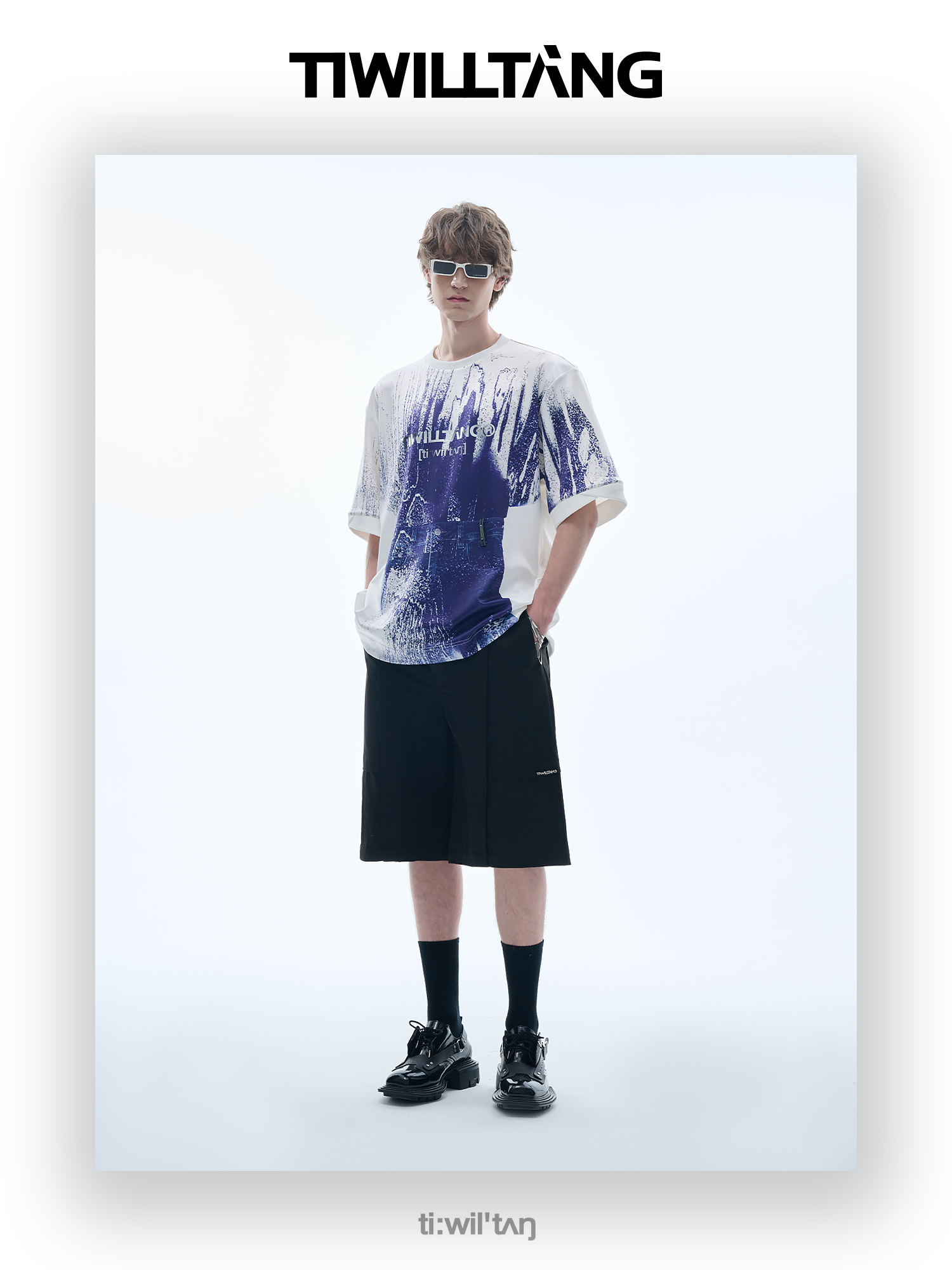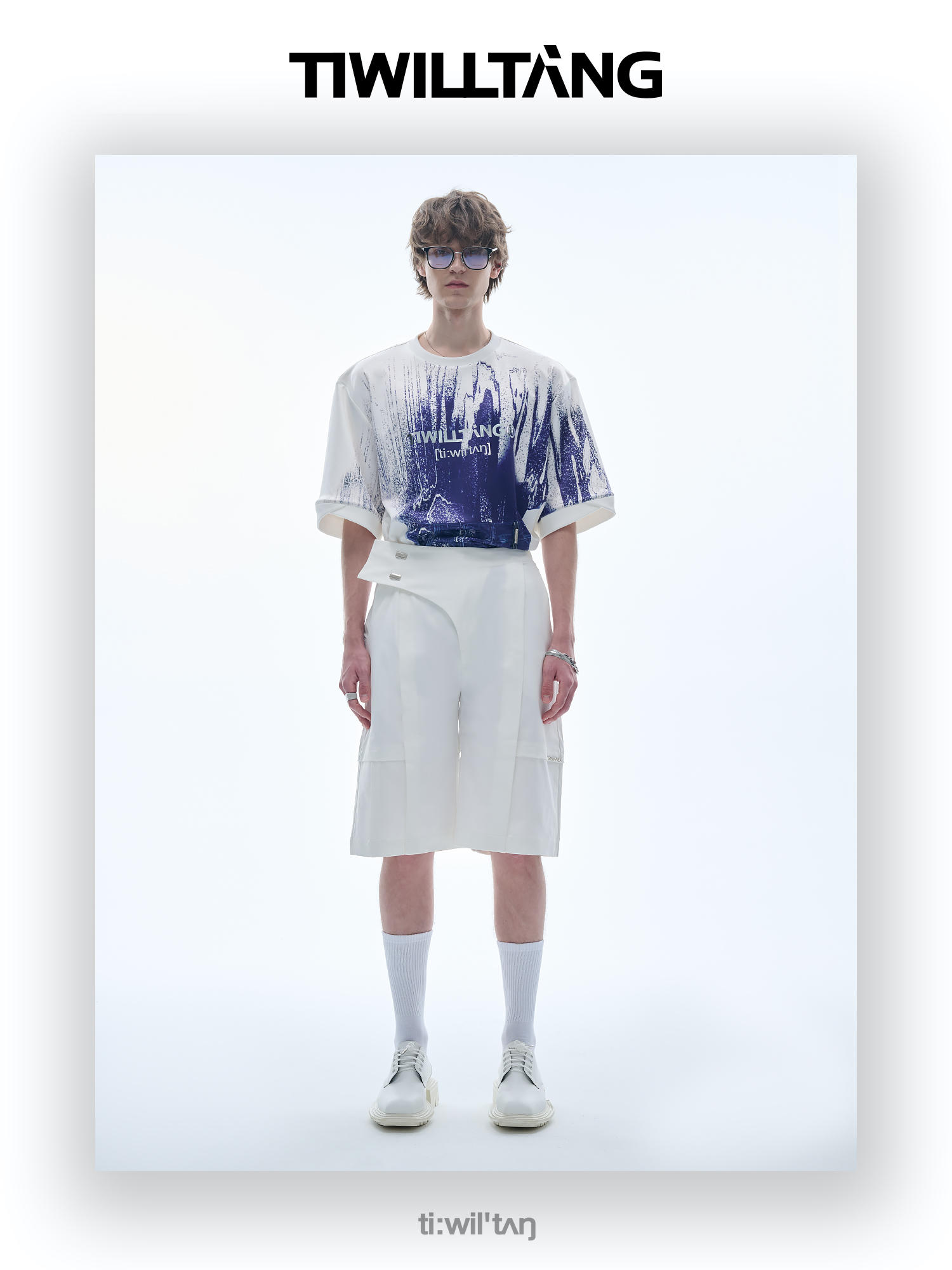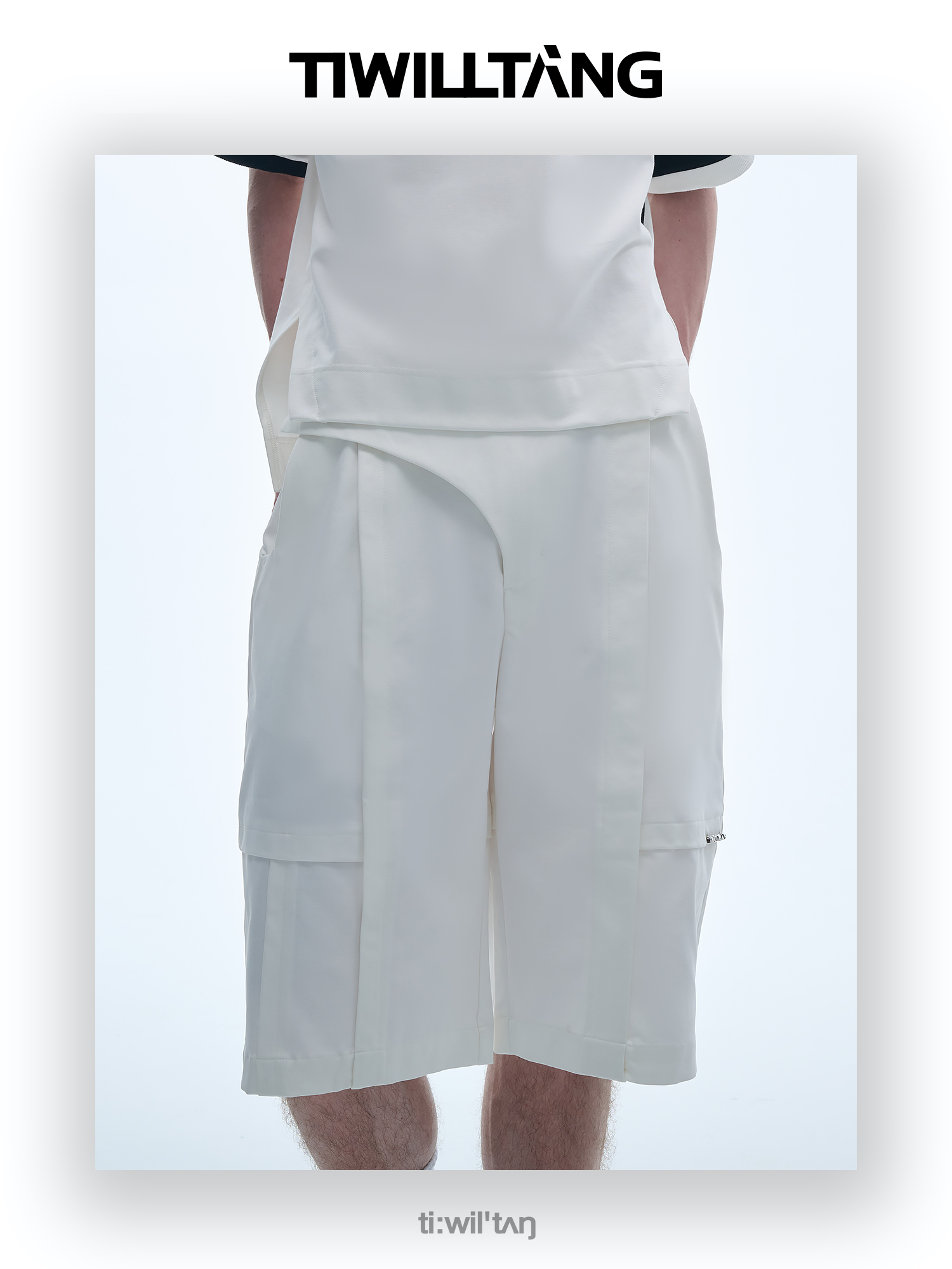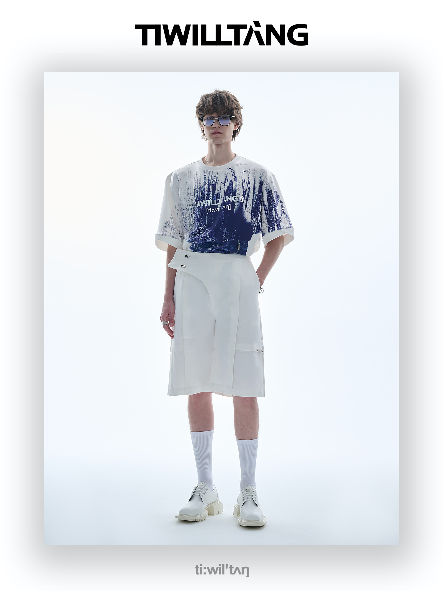 TIWILLTANG 启世录“叠塬”弧形门襟休闲裤夏季宽松直筒裤男潮流