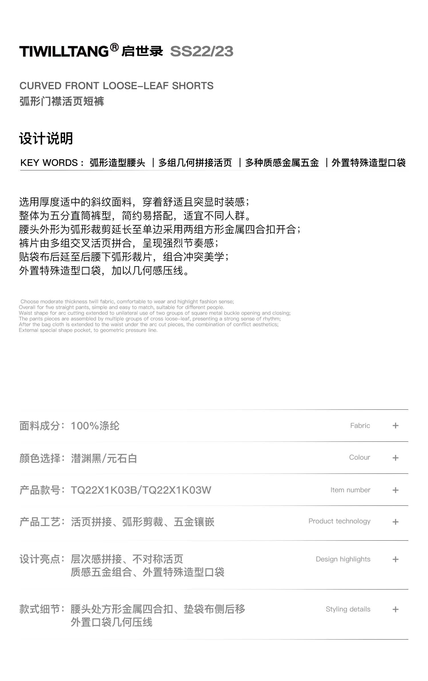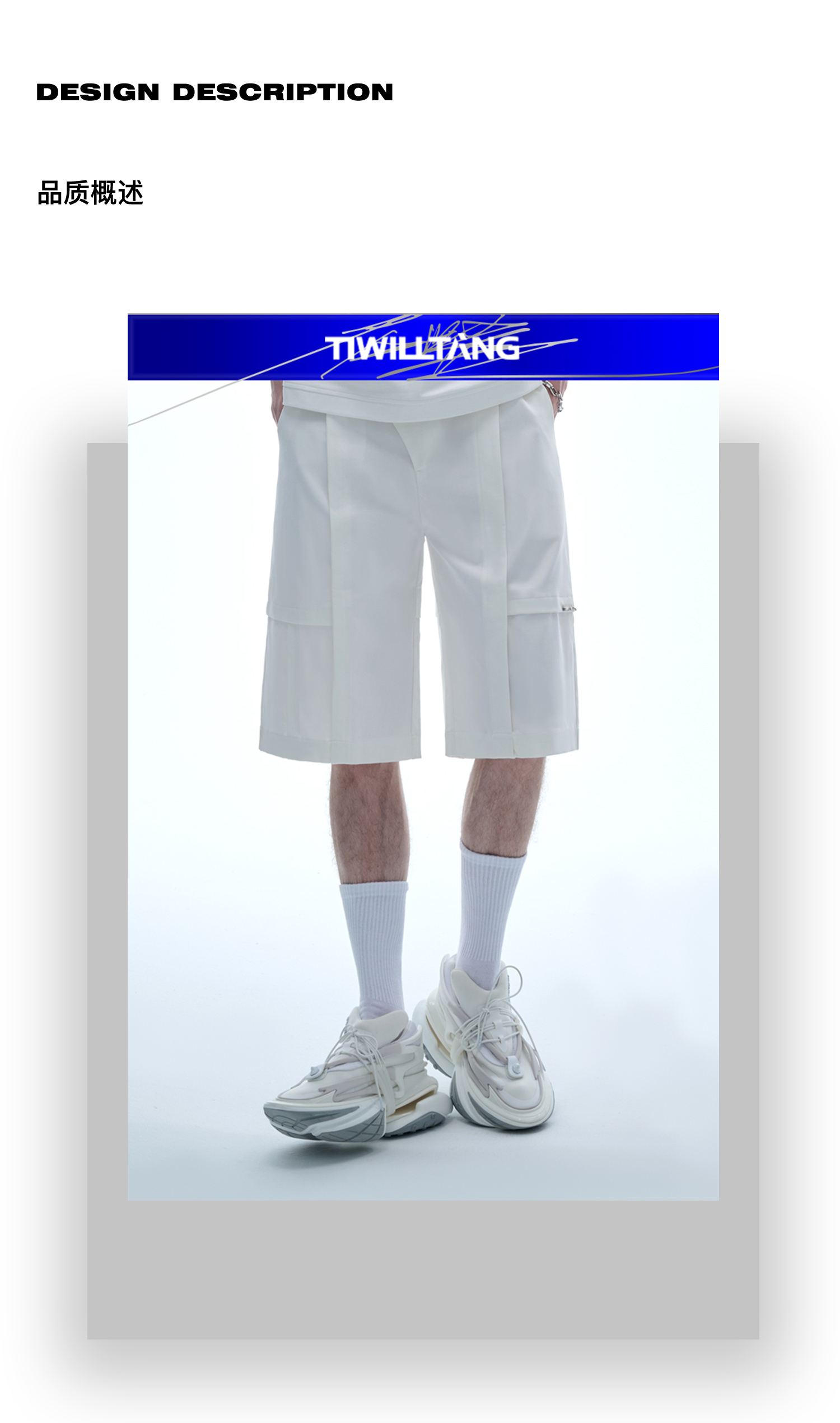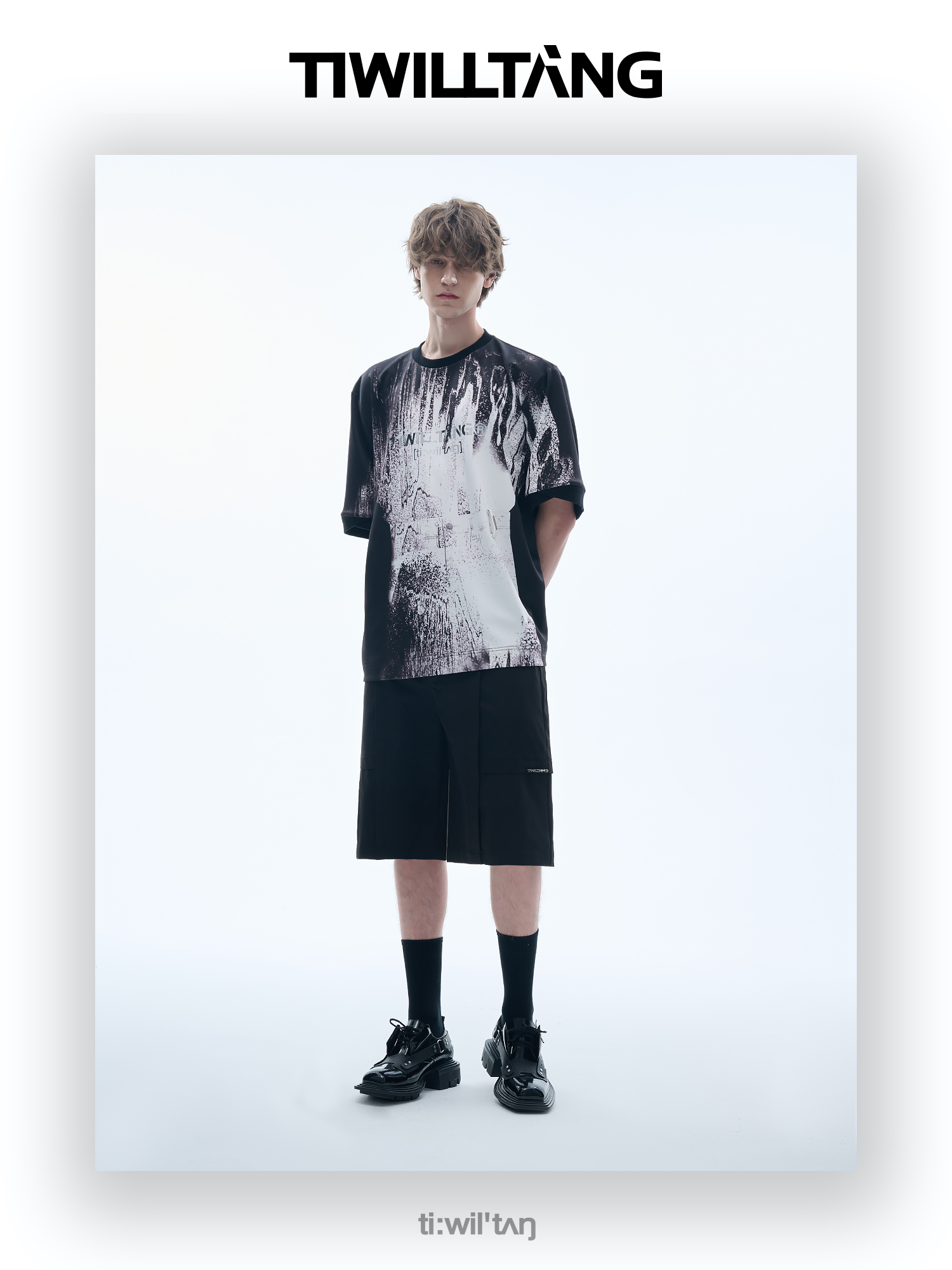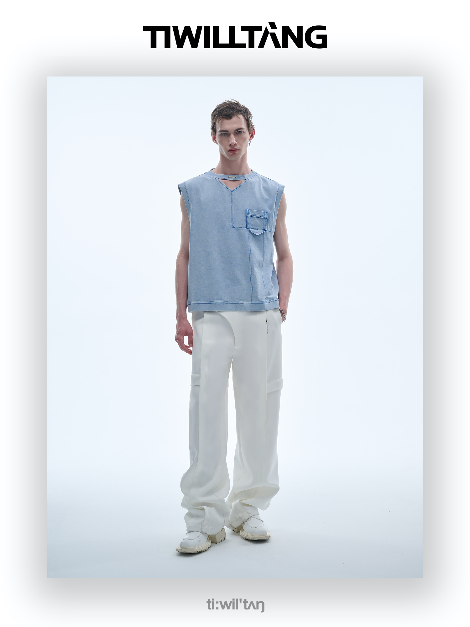 TIWILLTANG 启世录“叠塬”弧形门襟休闲裤夏季宽松直筒裤男潮流