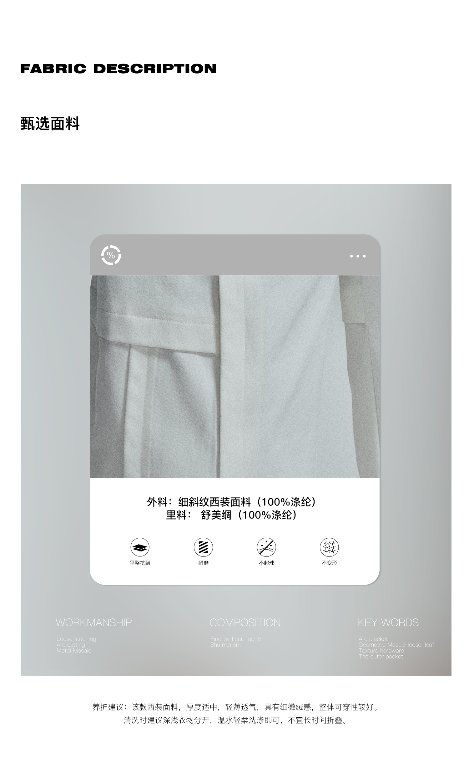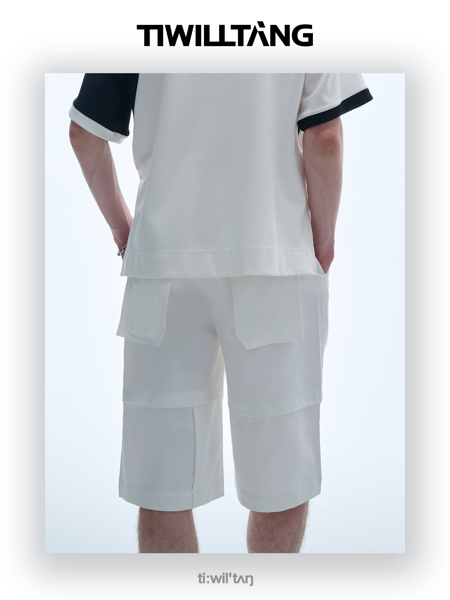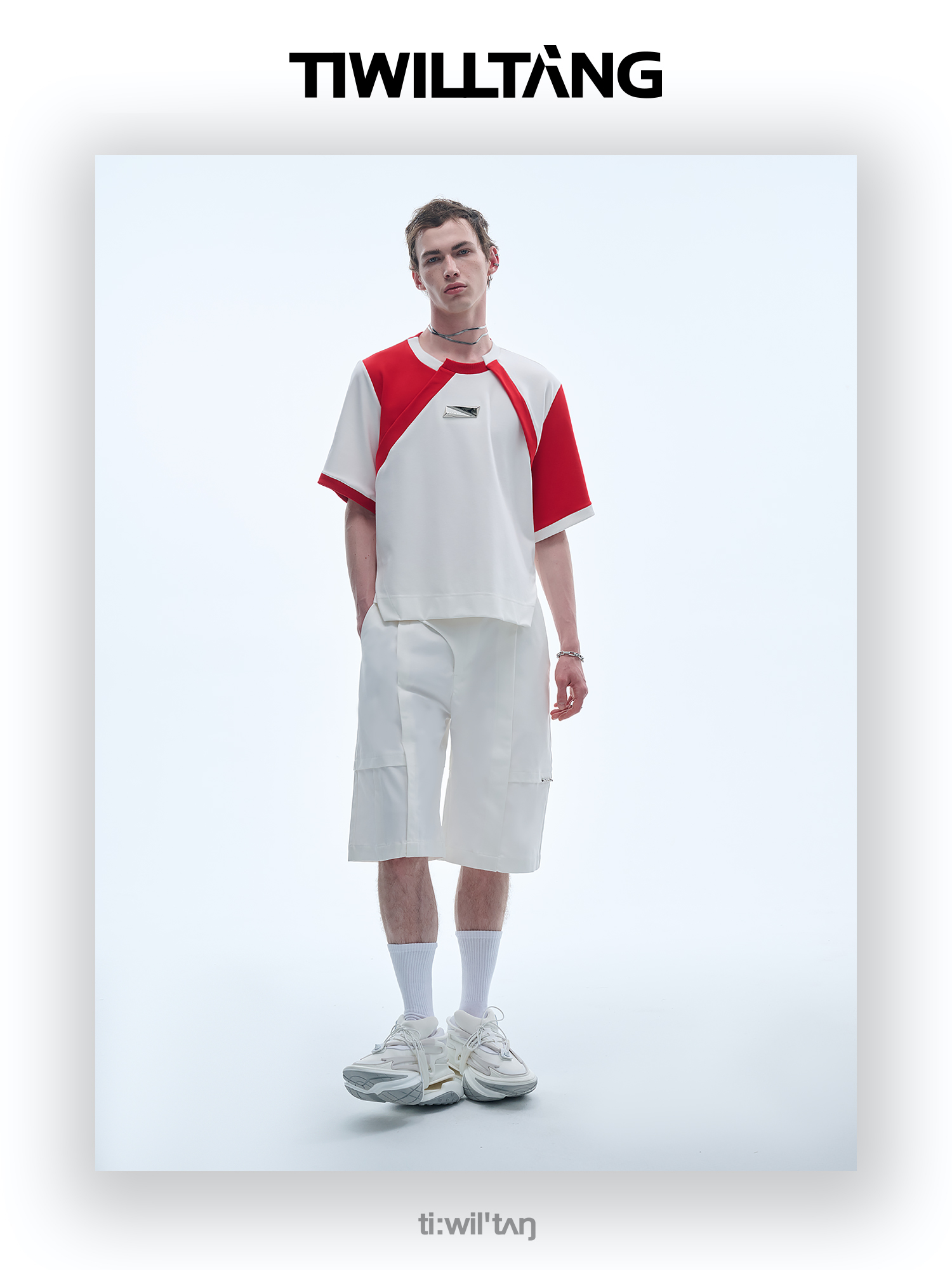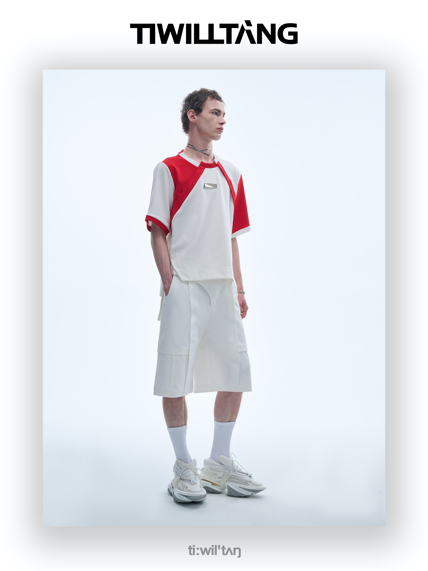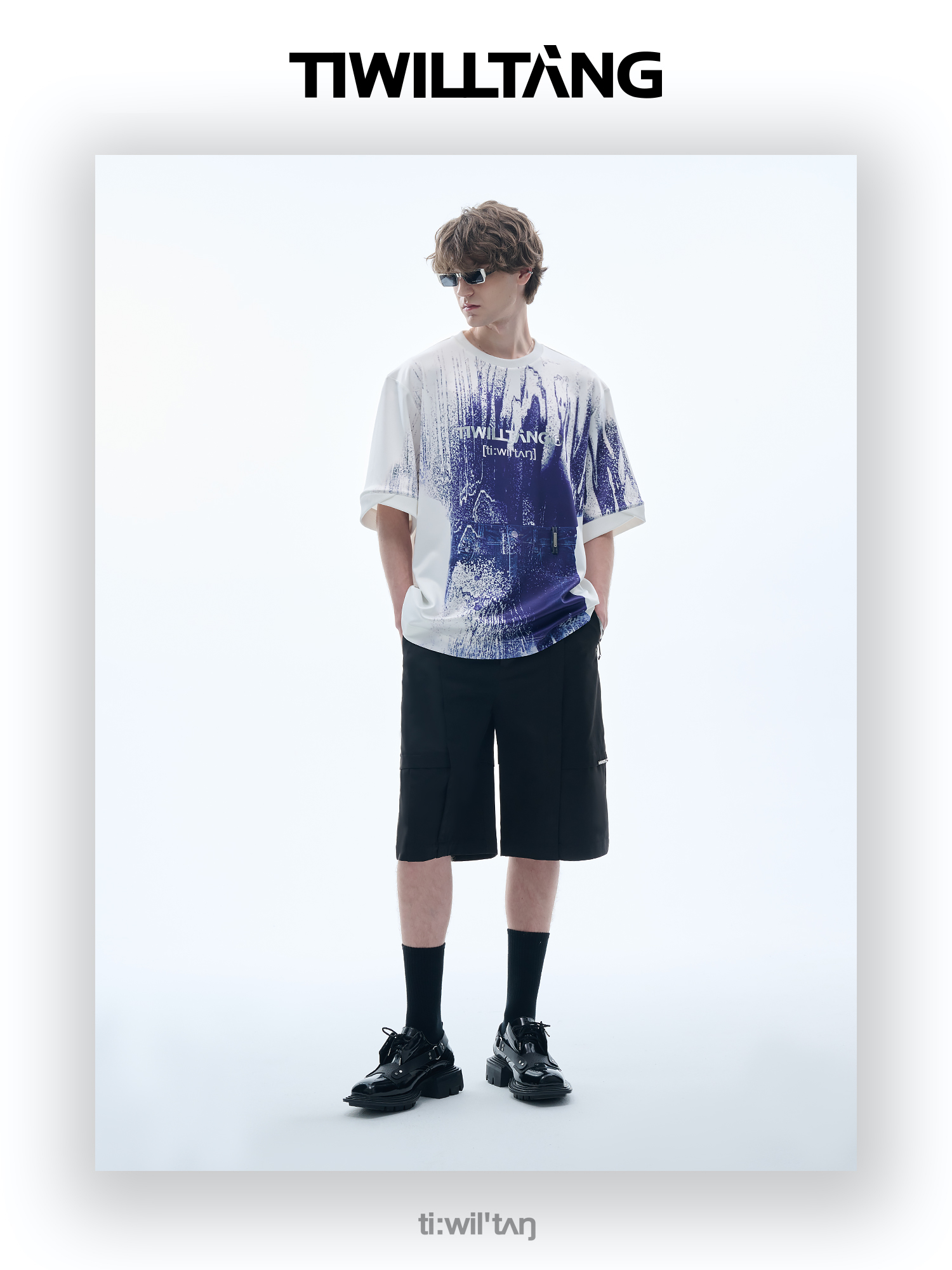 TIWILLTANG 启世录“叠塬”弧形门襟休闲裤夏季宽松直筒裤男潮流