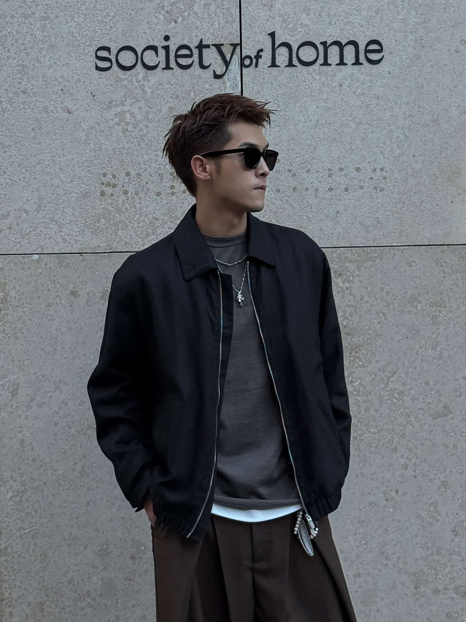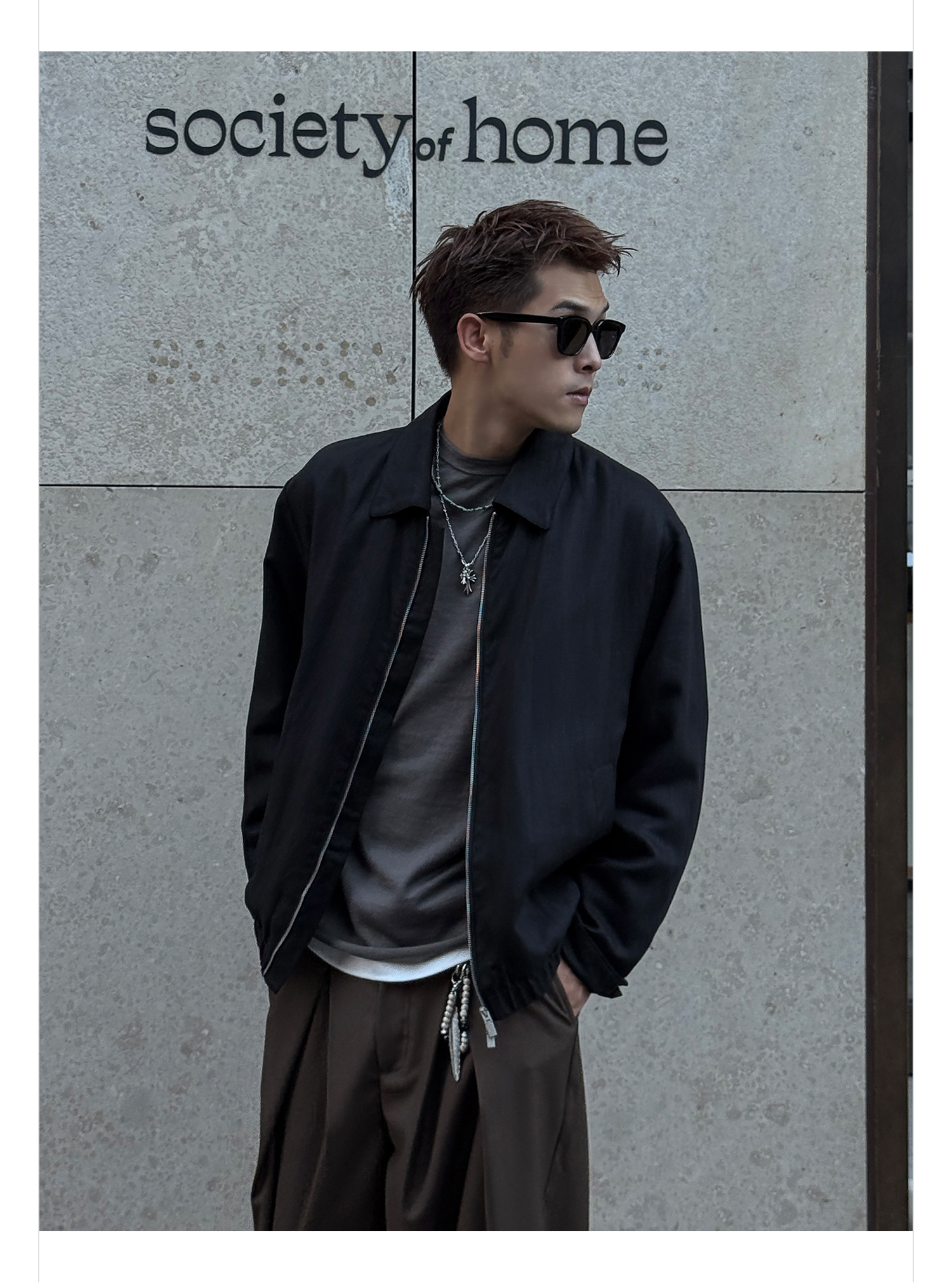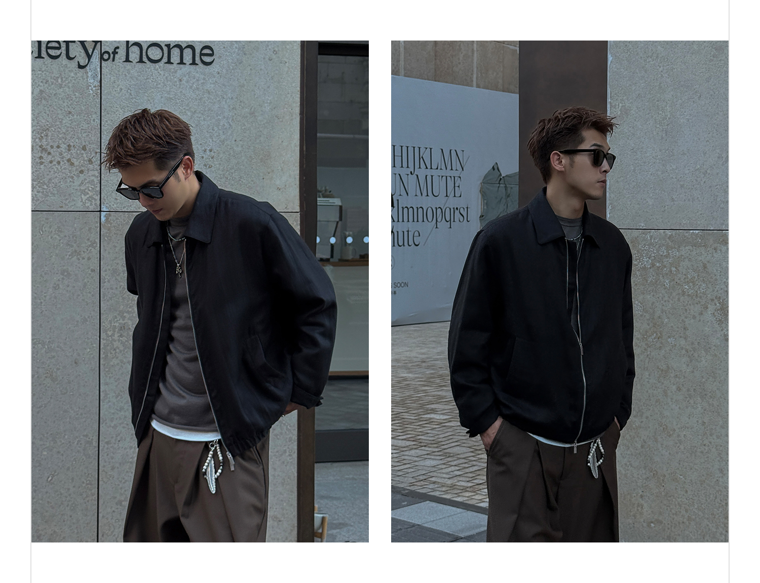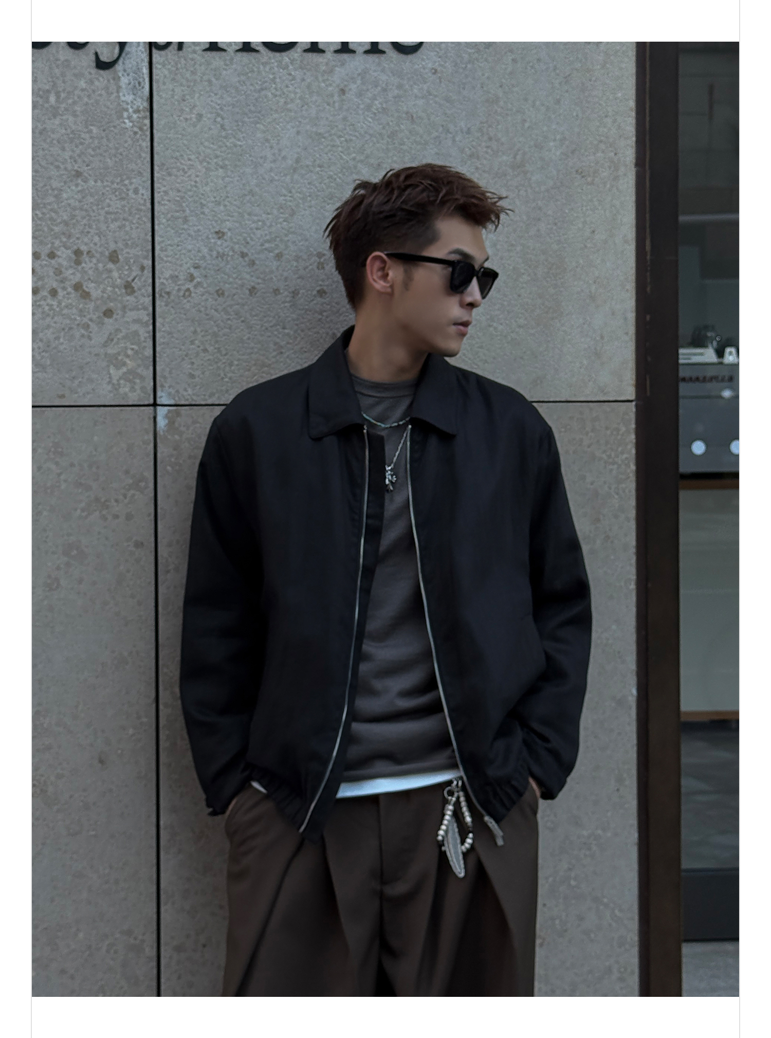 徐太浪【200g透气 莱赛尔混纺】黑色双拉链夹克男春秋休闲风外套