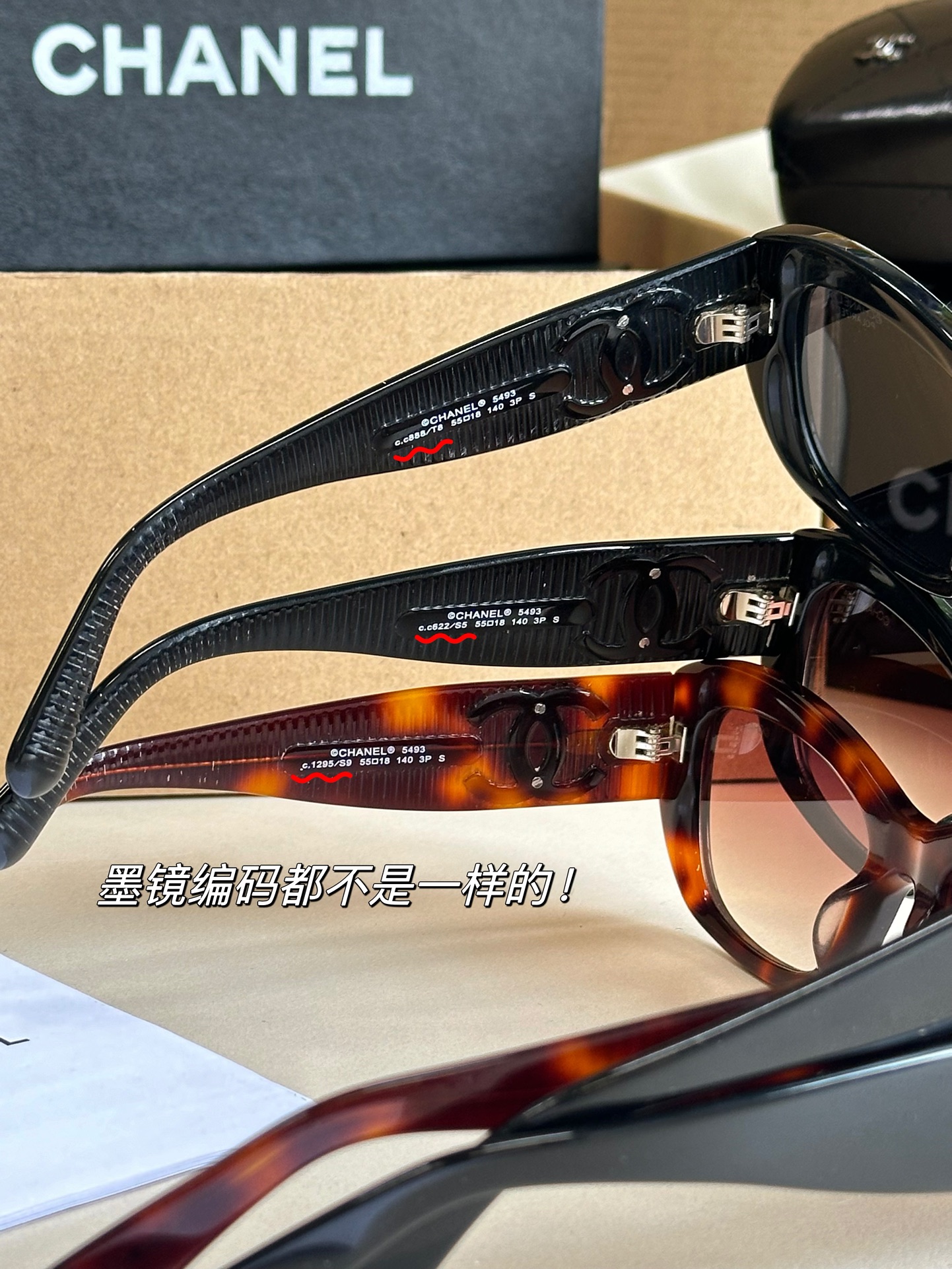 一共三款:黑框黑字、黑框金字茶片、玳瑁
