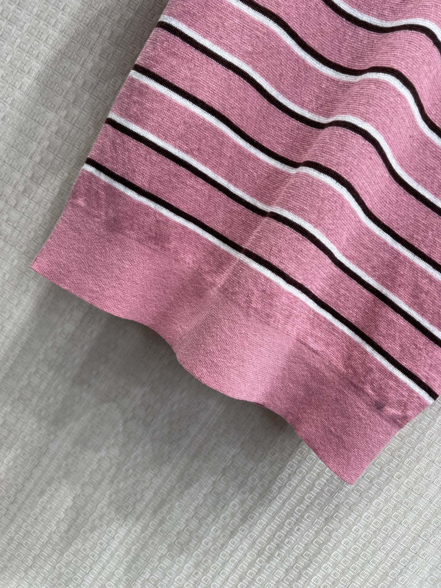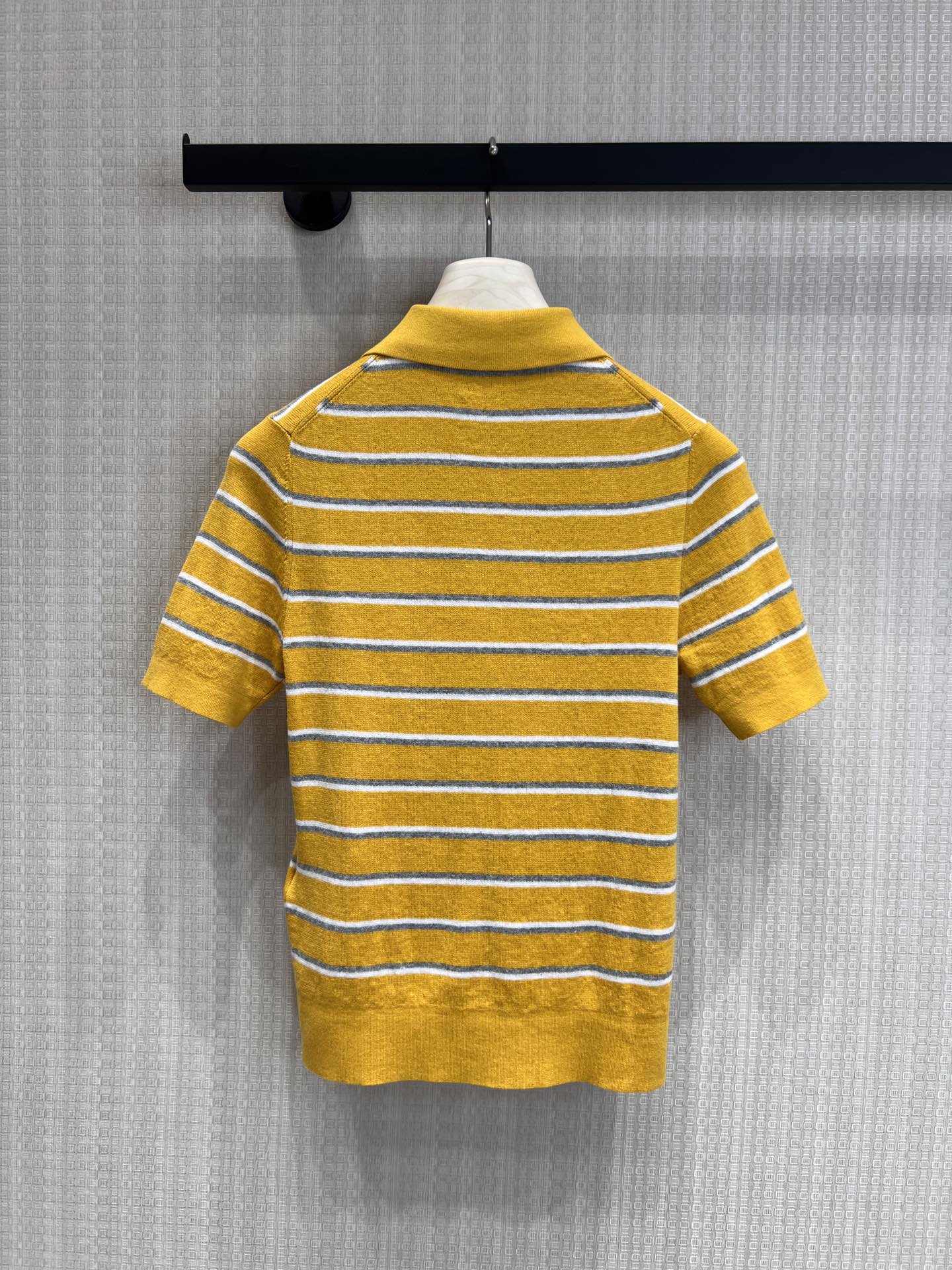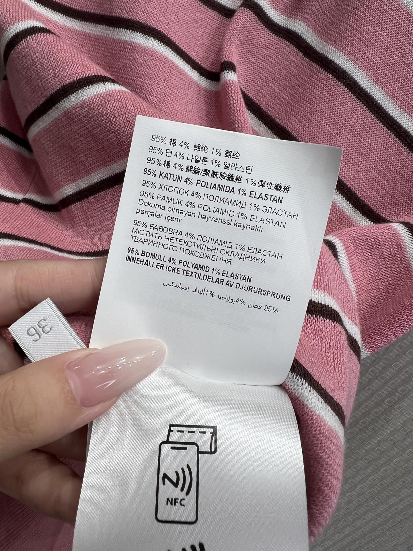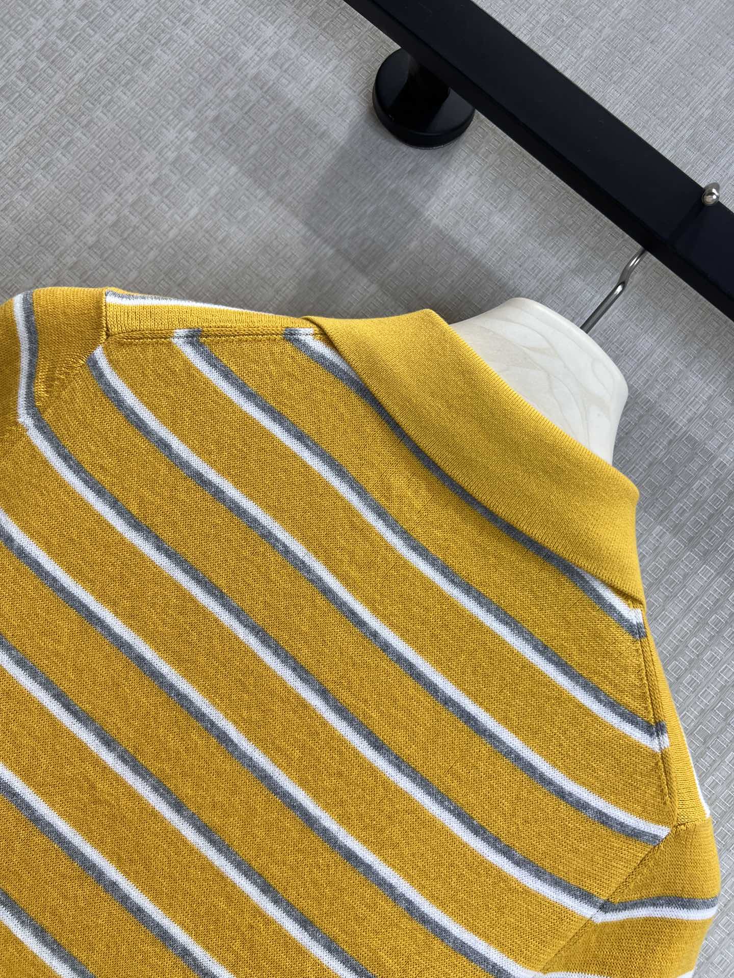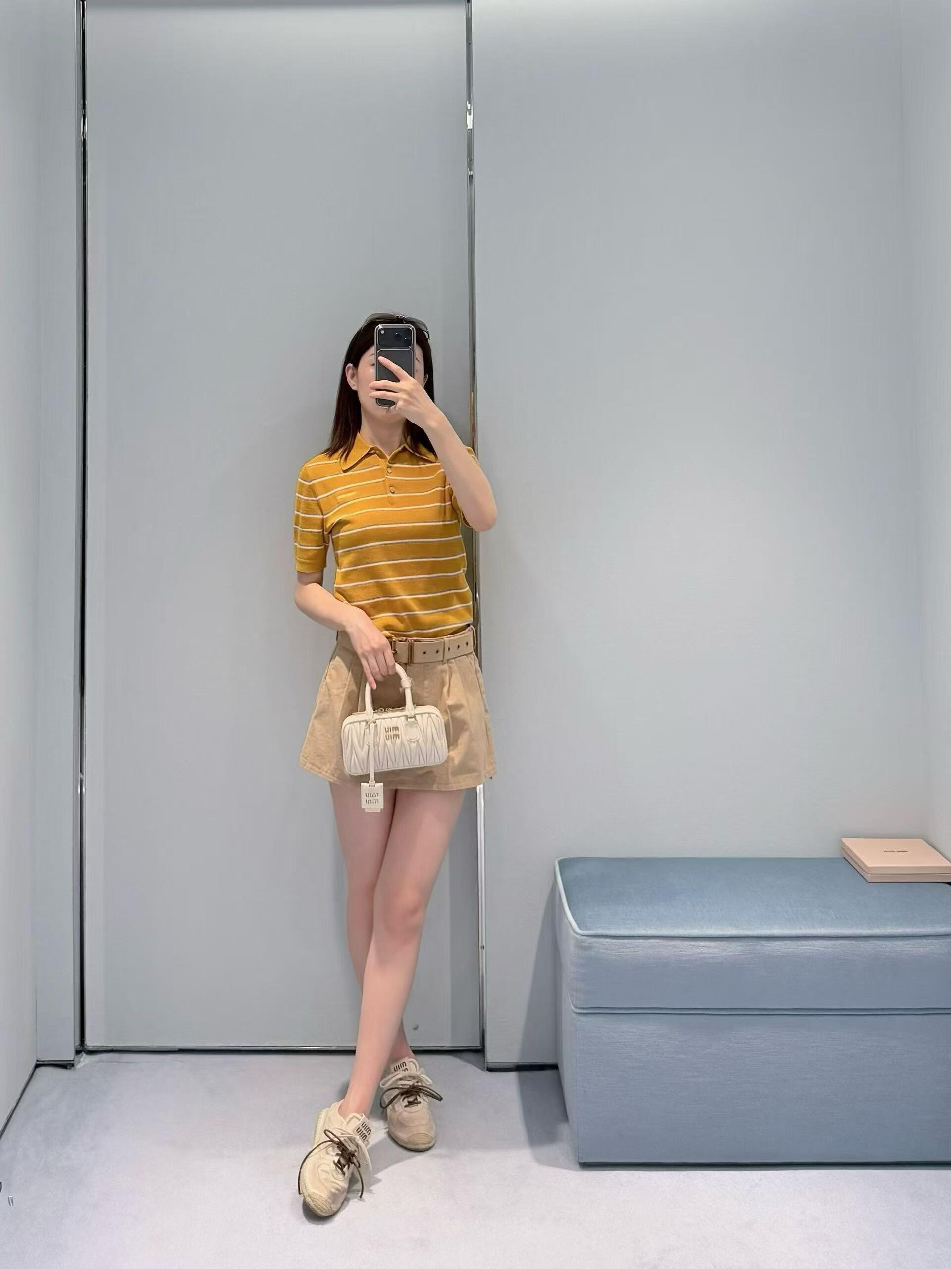 Miu* 26Ss春夏新款 撞色条纹棉质Polo短袖针织衫丨⚠独家yb开发!顶级高版出品!面料选用透气棉质针织材质,软糯亲肤,垂坠感十足,经典Polo翻领+半开扣设计,巧妙修饰脖颈线条,拉长比例,利落又显精神;衣身采用撞色条纹设计,清新配色自带春日滤镜,视觉上显瘦又减龄,对各种身材都友好。微收腰的修身版型,贴合身形却不紧绷,凸显腰线,轻松打造三七分比例。现货发售S/M/L