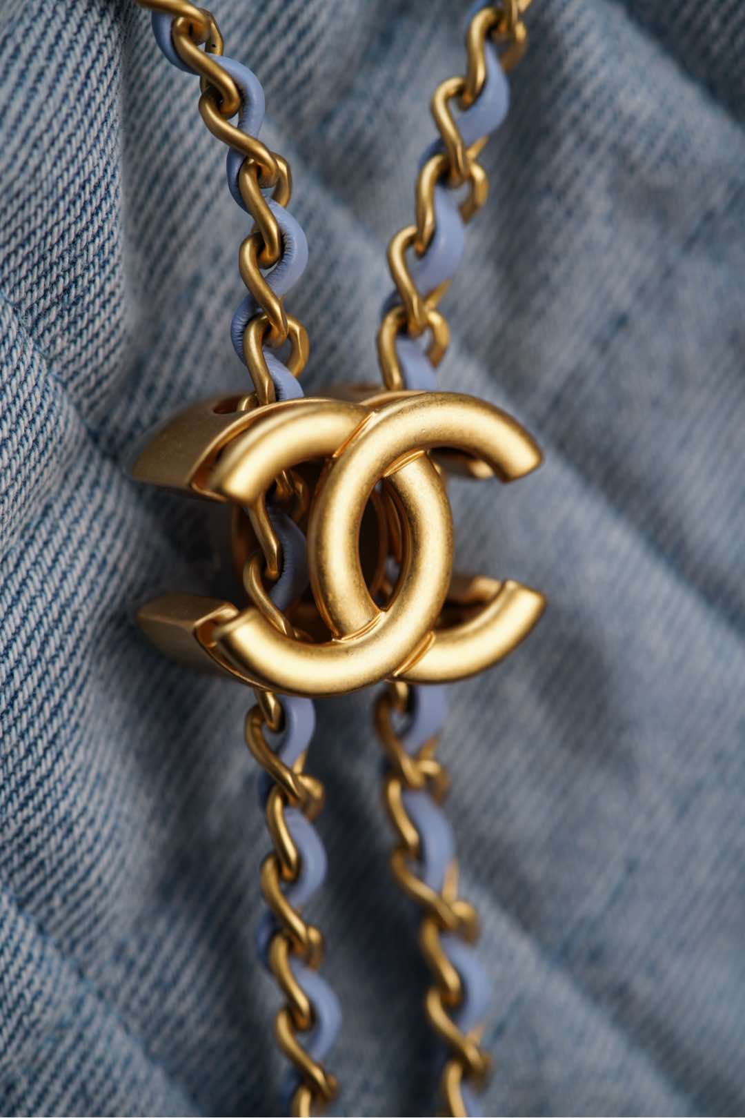 香奈儿25S smaII hobo 抽绳水桶包 牛仔蓝(AH*MM)