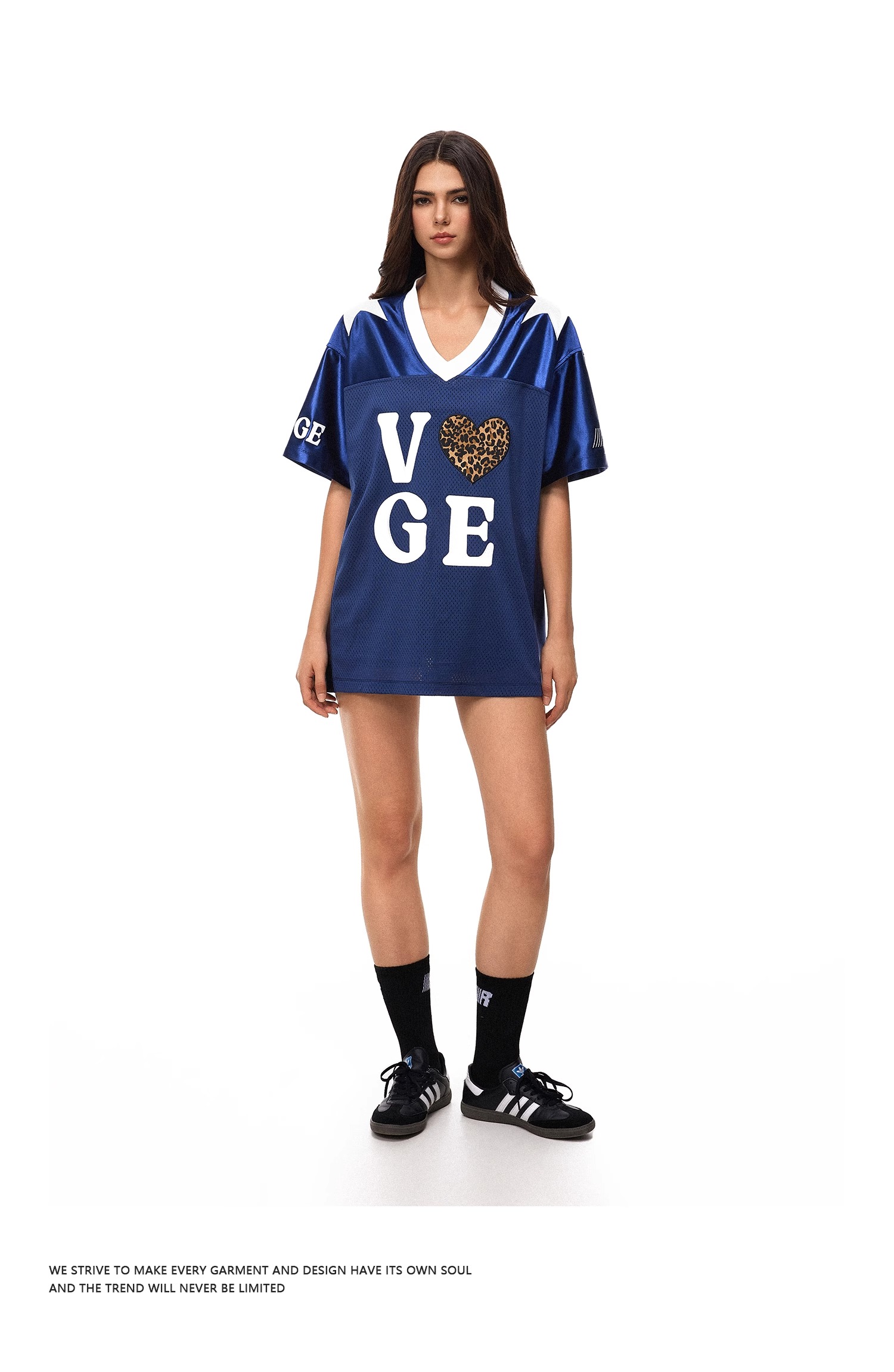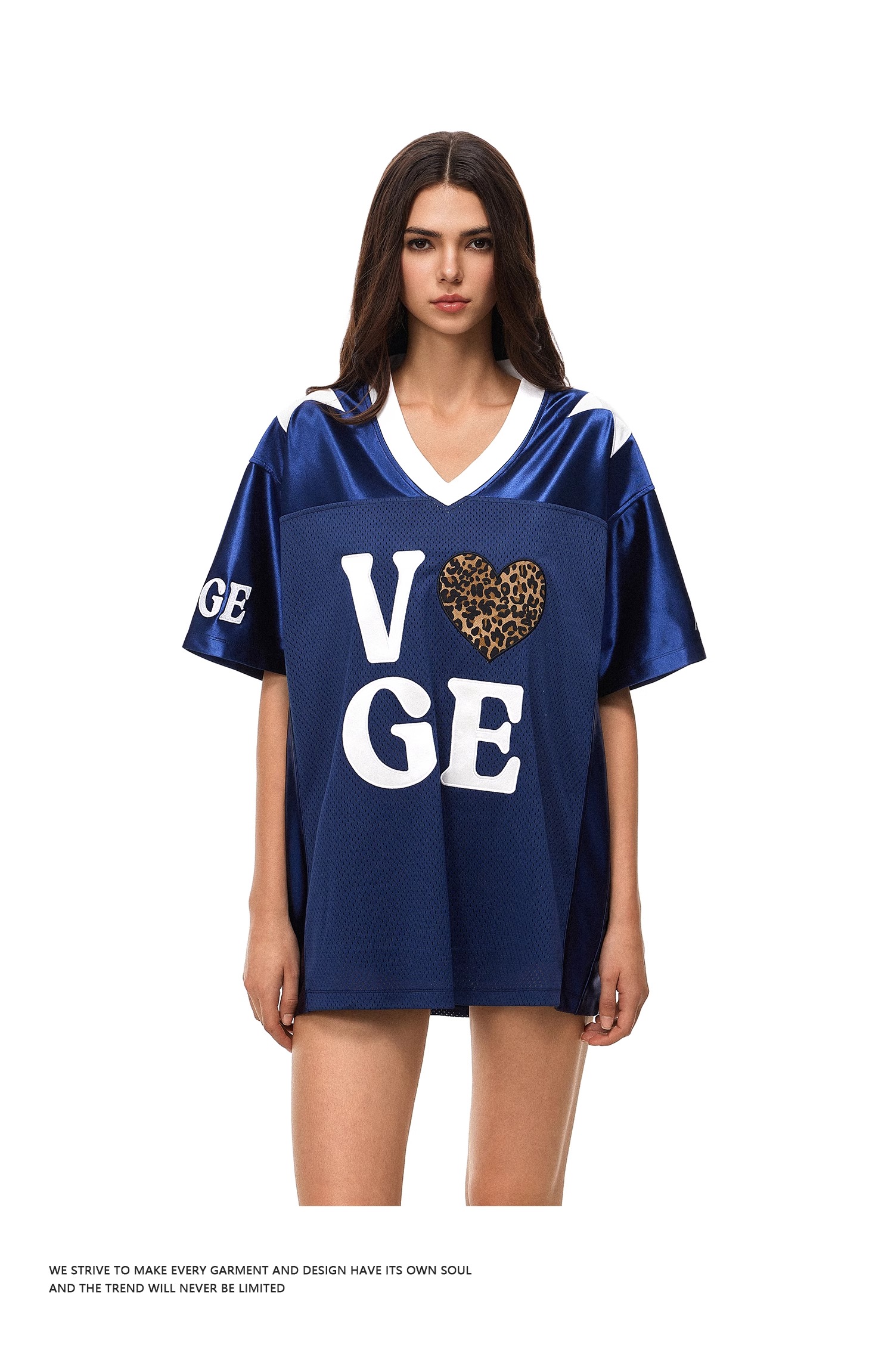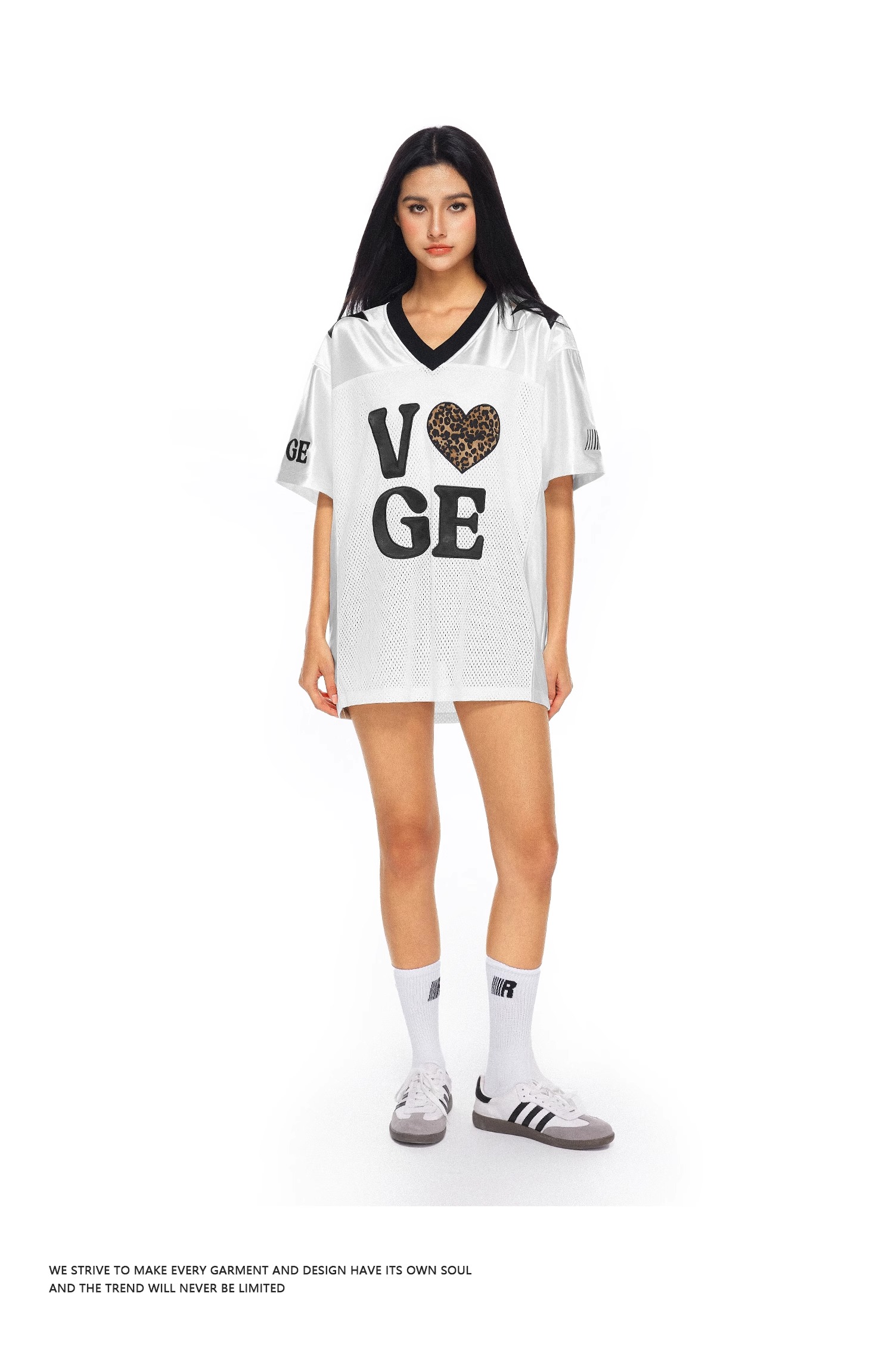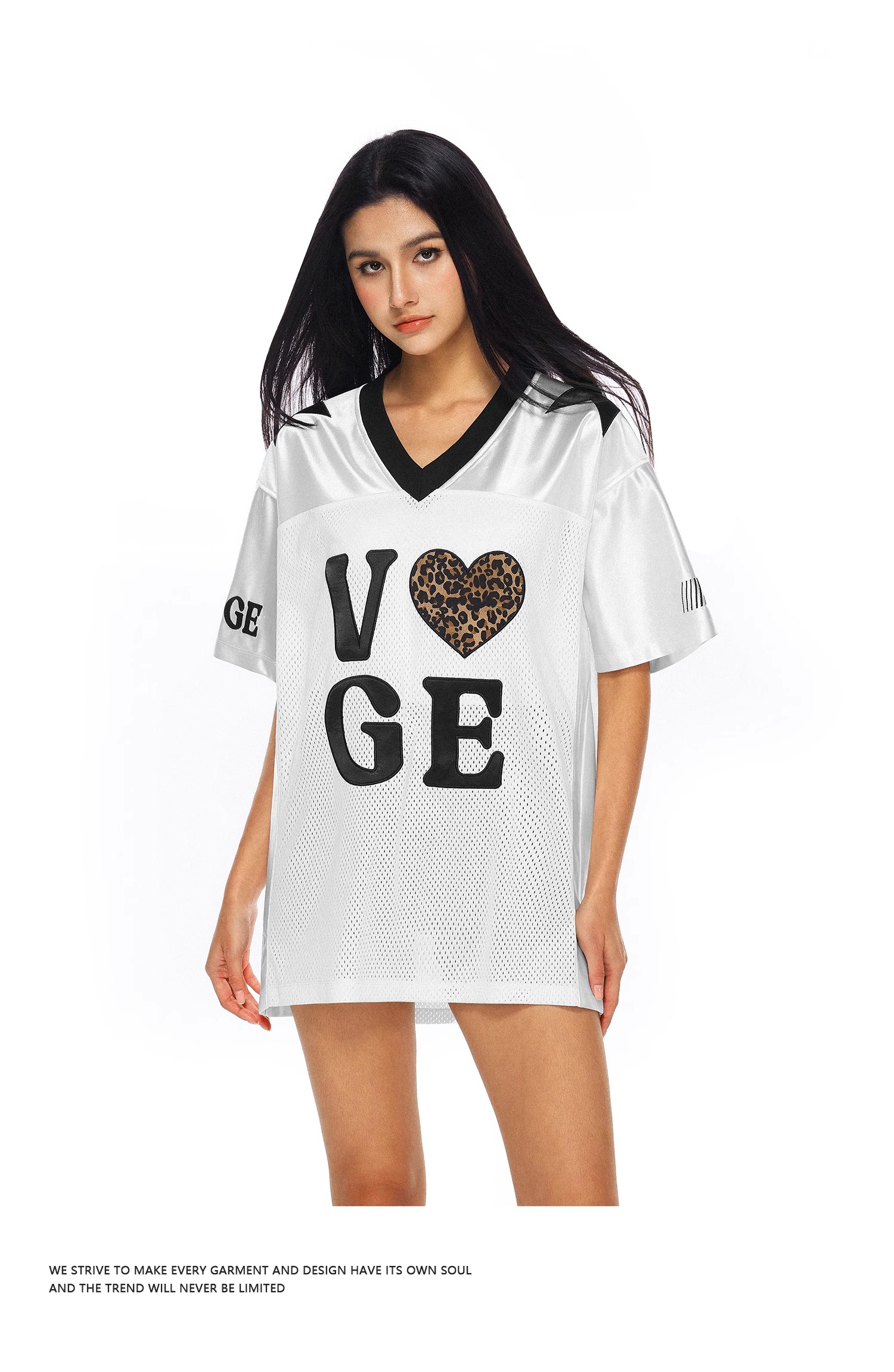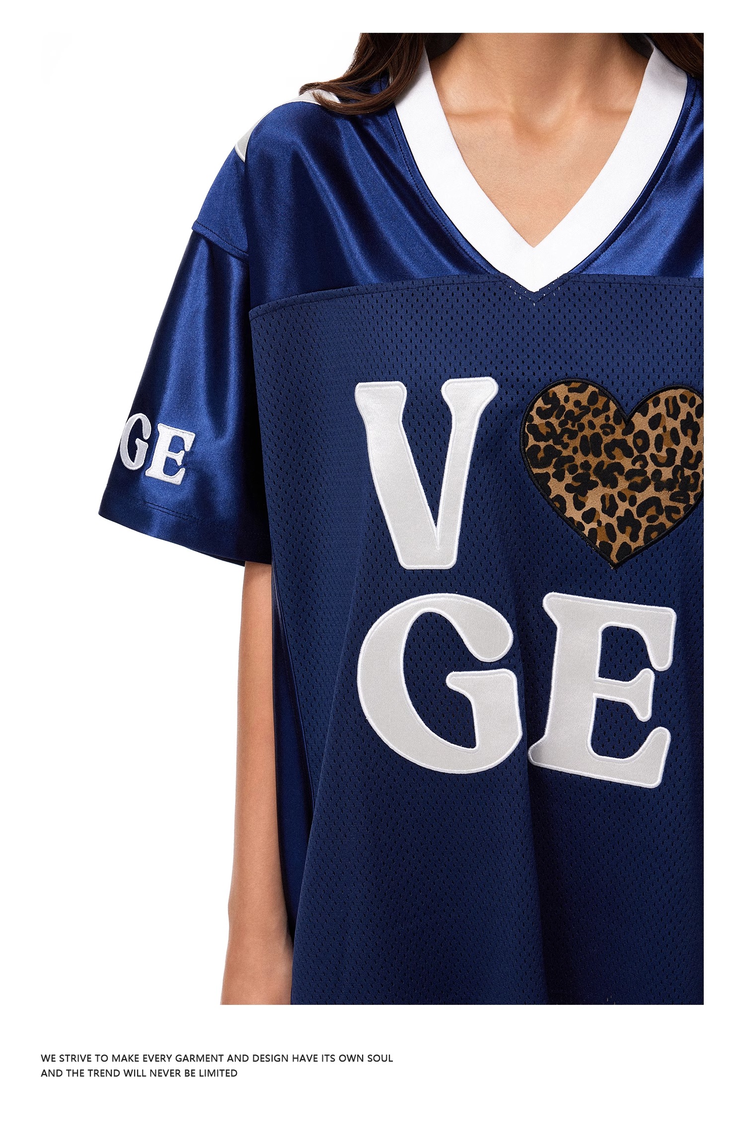 【178元任选3件】FDR官方店 V领美式爱心运动网眼短袖T恤女夏季宽松撞色球衣体恤