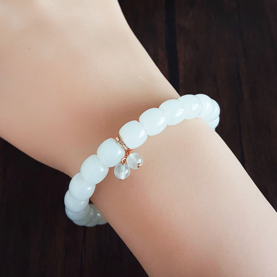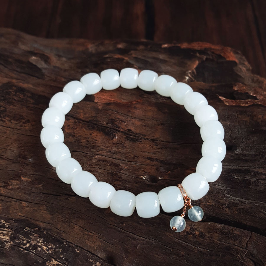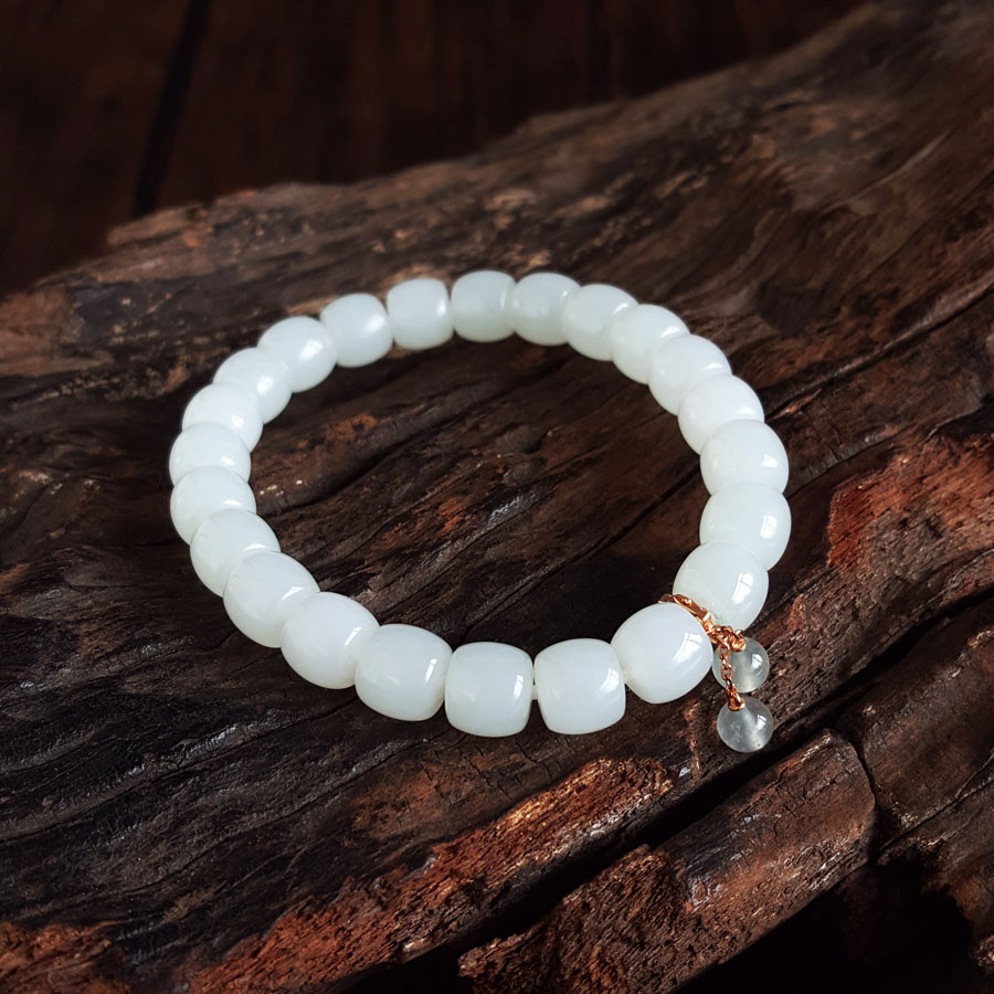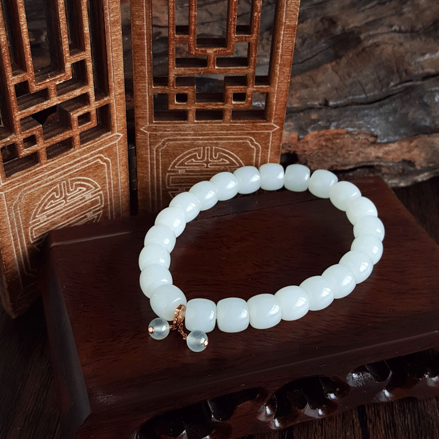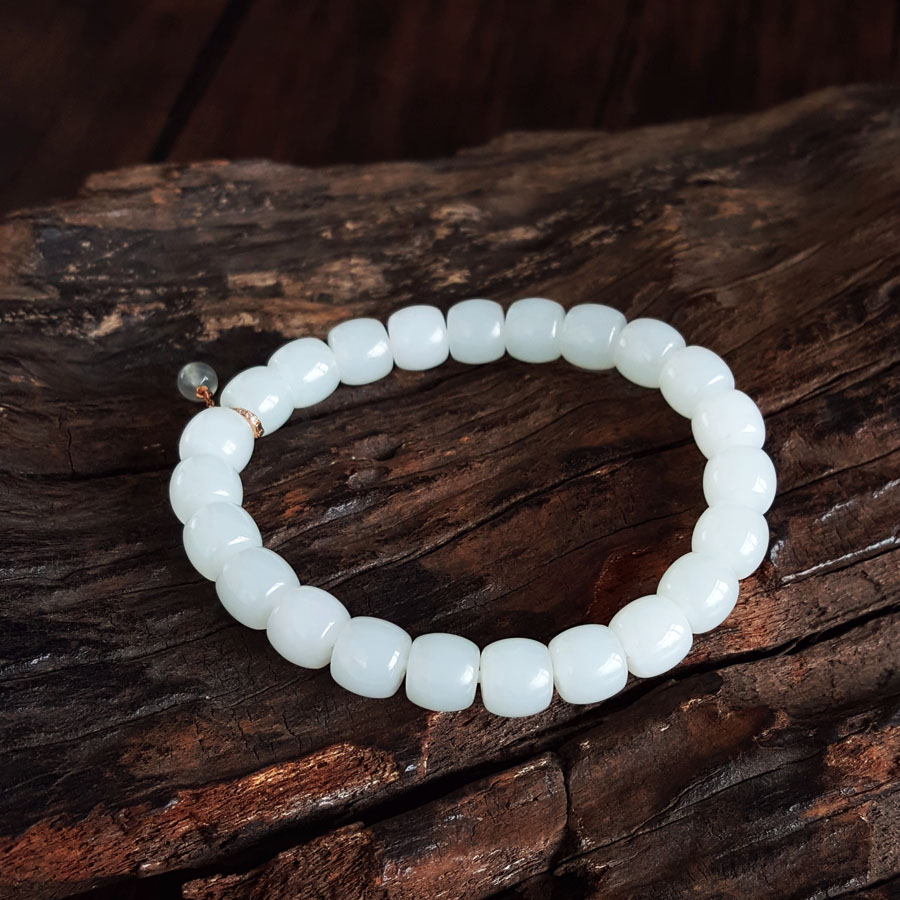 名称 | 天然新疆料细腻一级白油润度佳桶珠约8.3*7.5MM和田玉配AU750白金镶钻镶翡翠配件手串 |