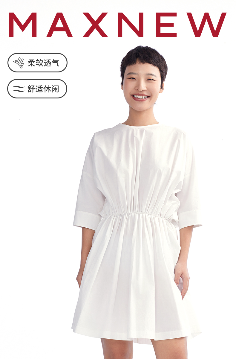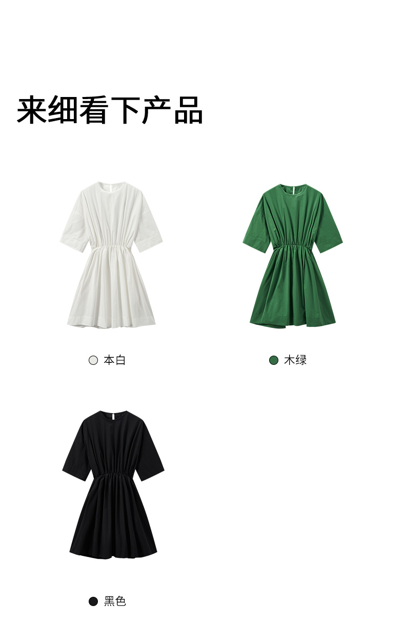 【裙装】女装棉柔抽褶收腰连衣裙 1N2225311