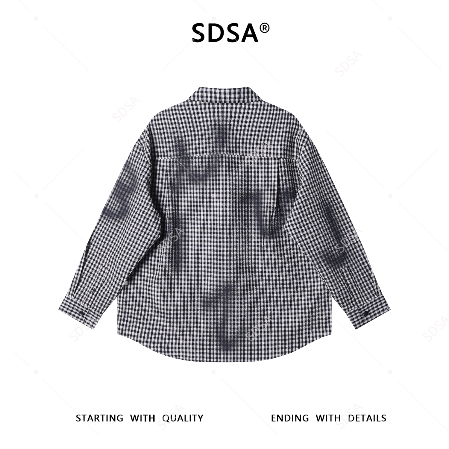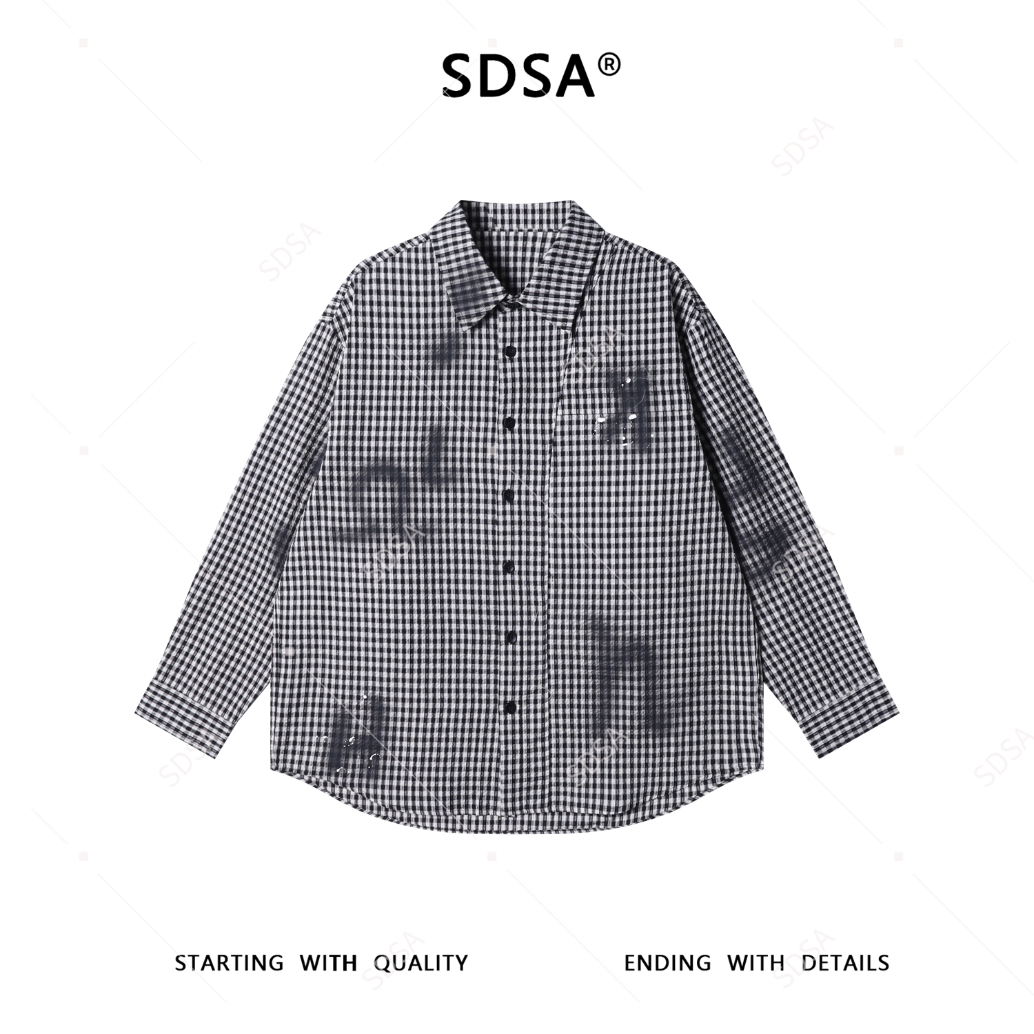 SDSA男士秋冬新款痞帅男装时尚撞色格子泼墨长袖衬衫百搭晕染衬衣