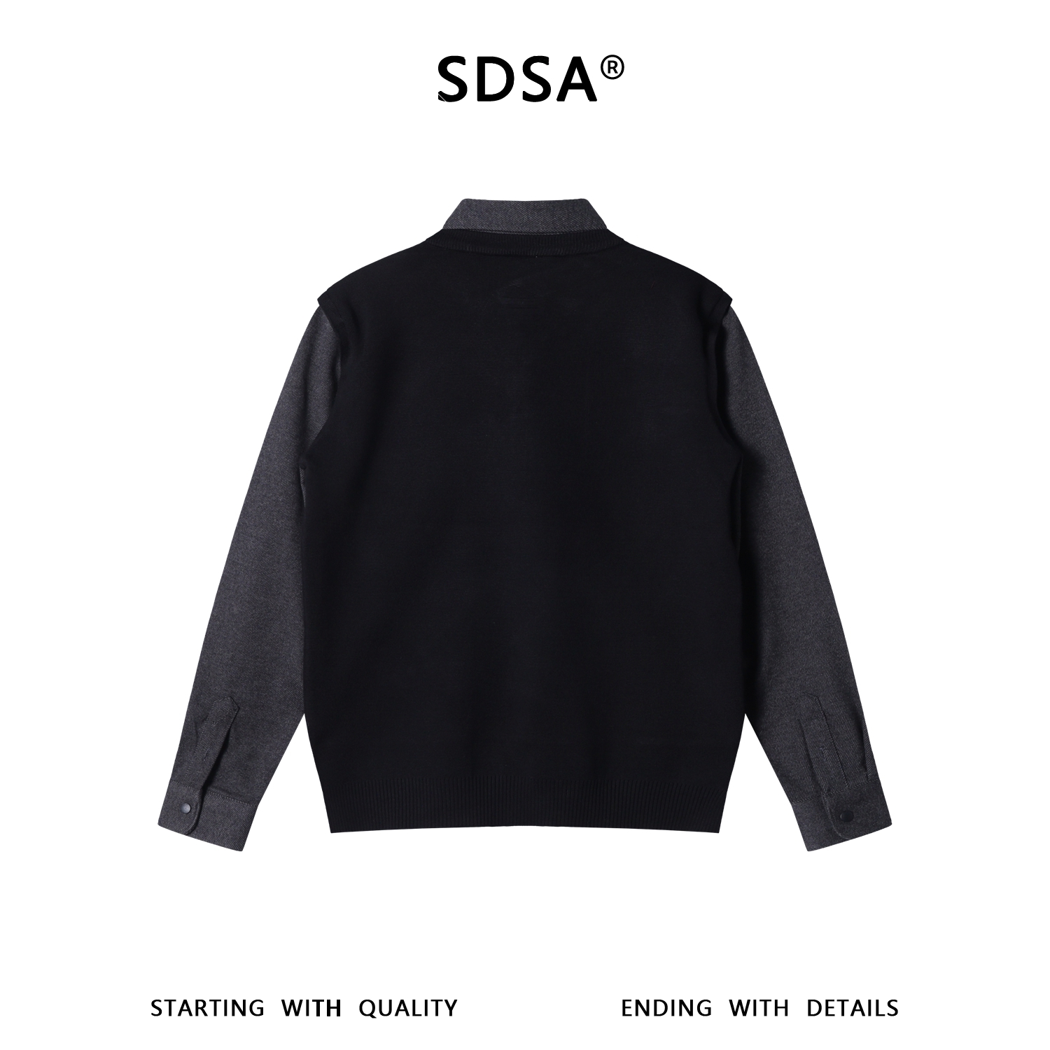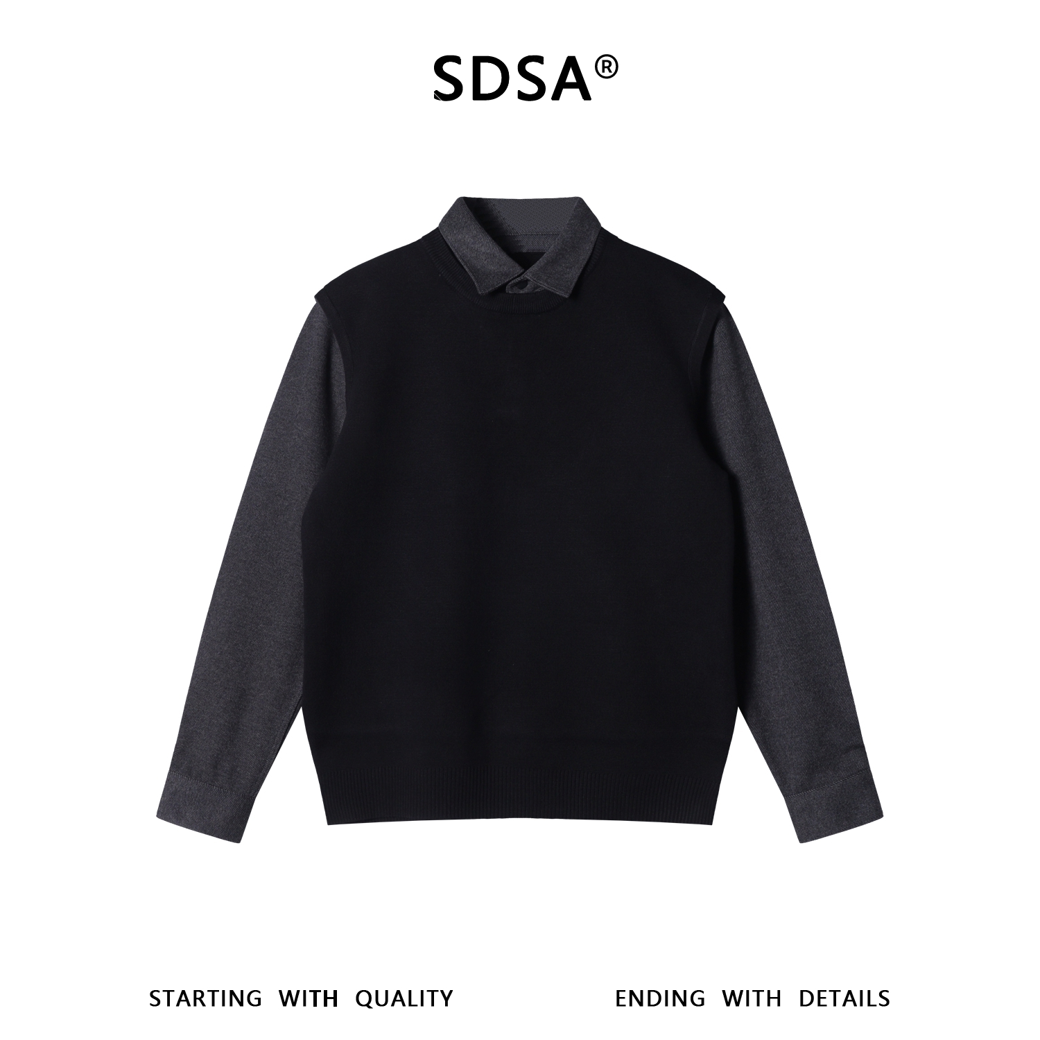 9629SDSA男士秋冬新款痞帅男装老钱风假两件翻领毛衣简约百搭针织衫