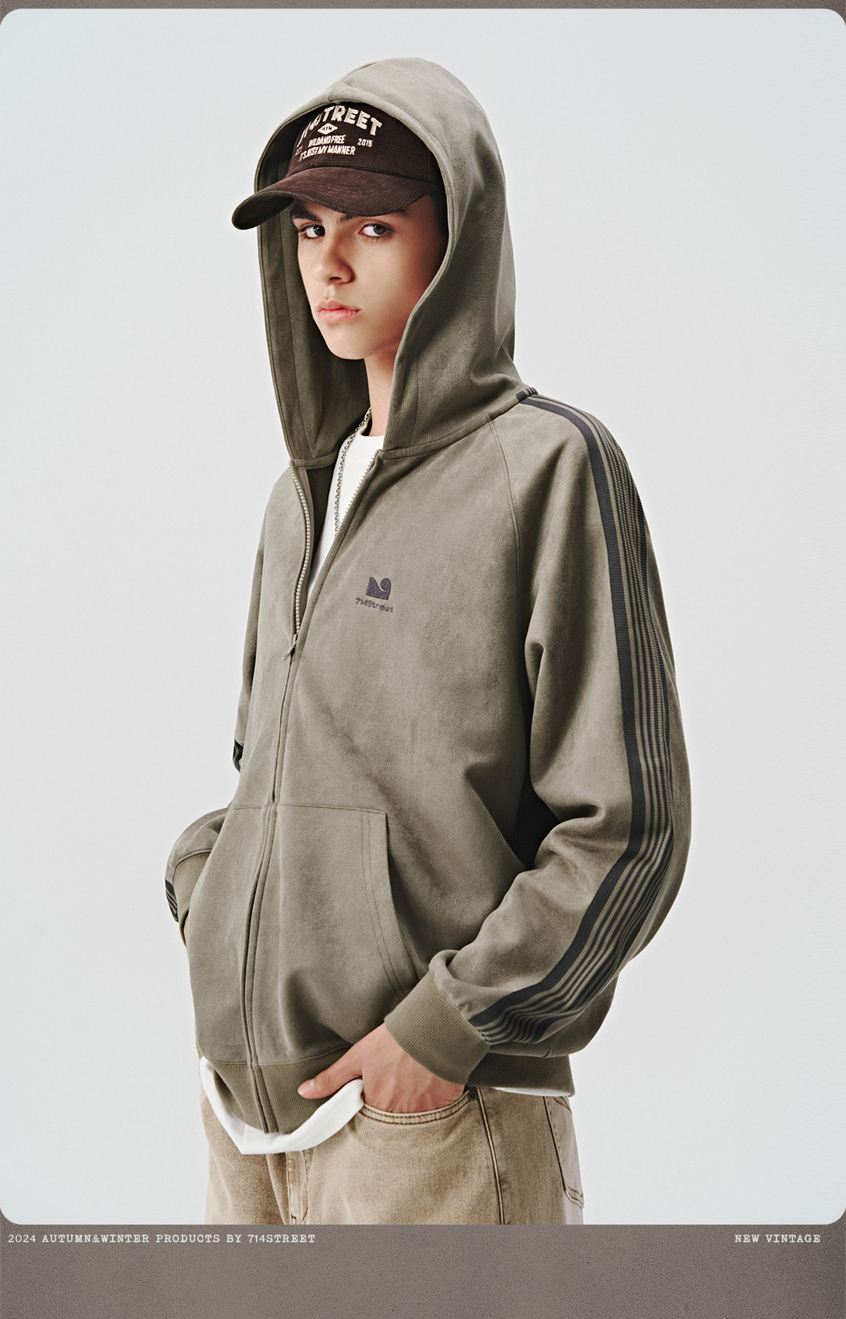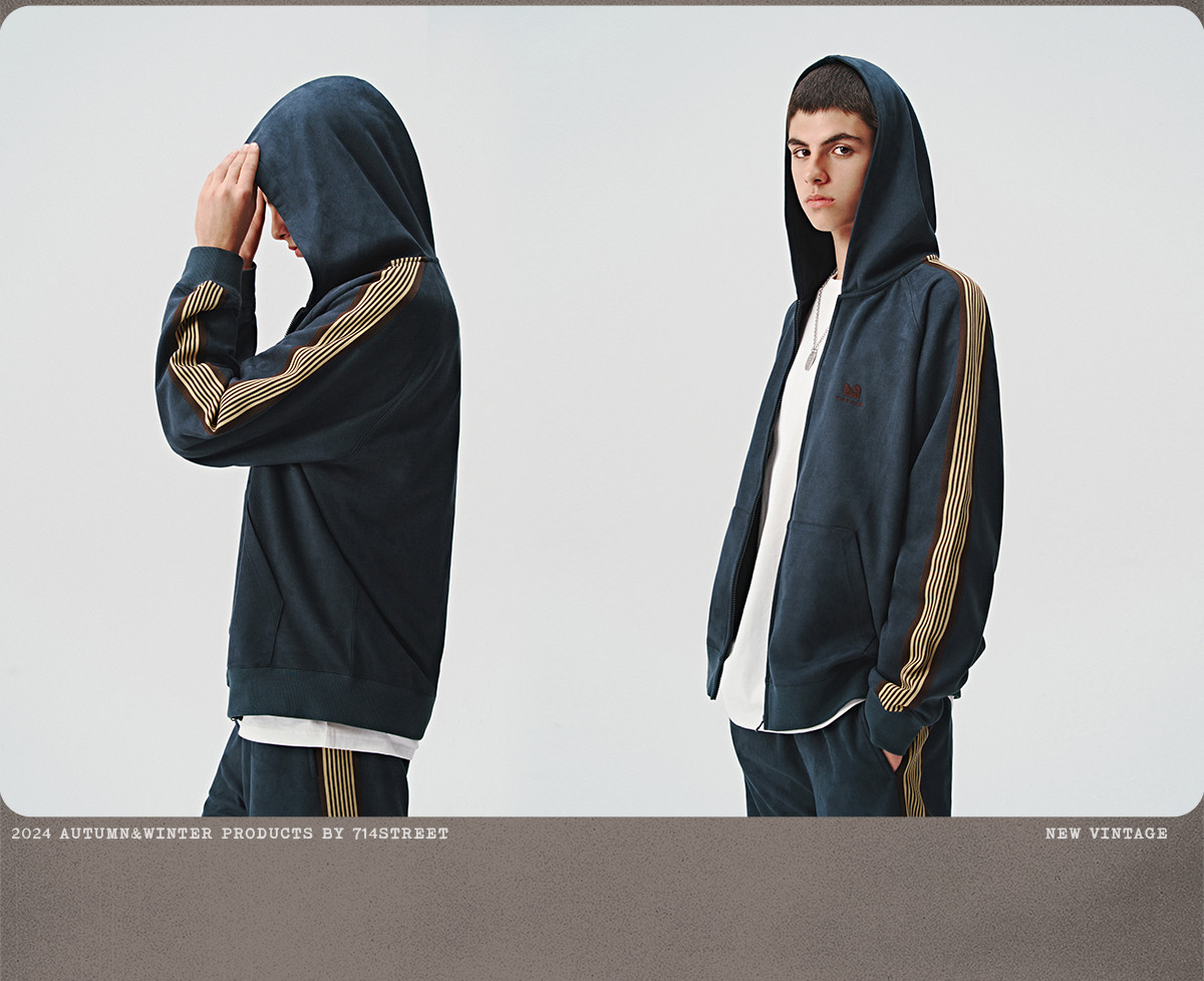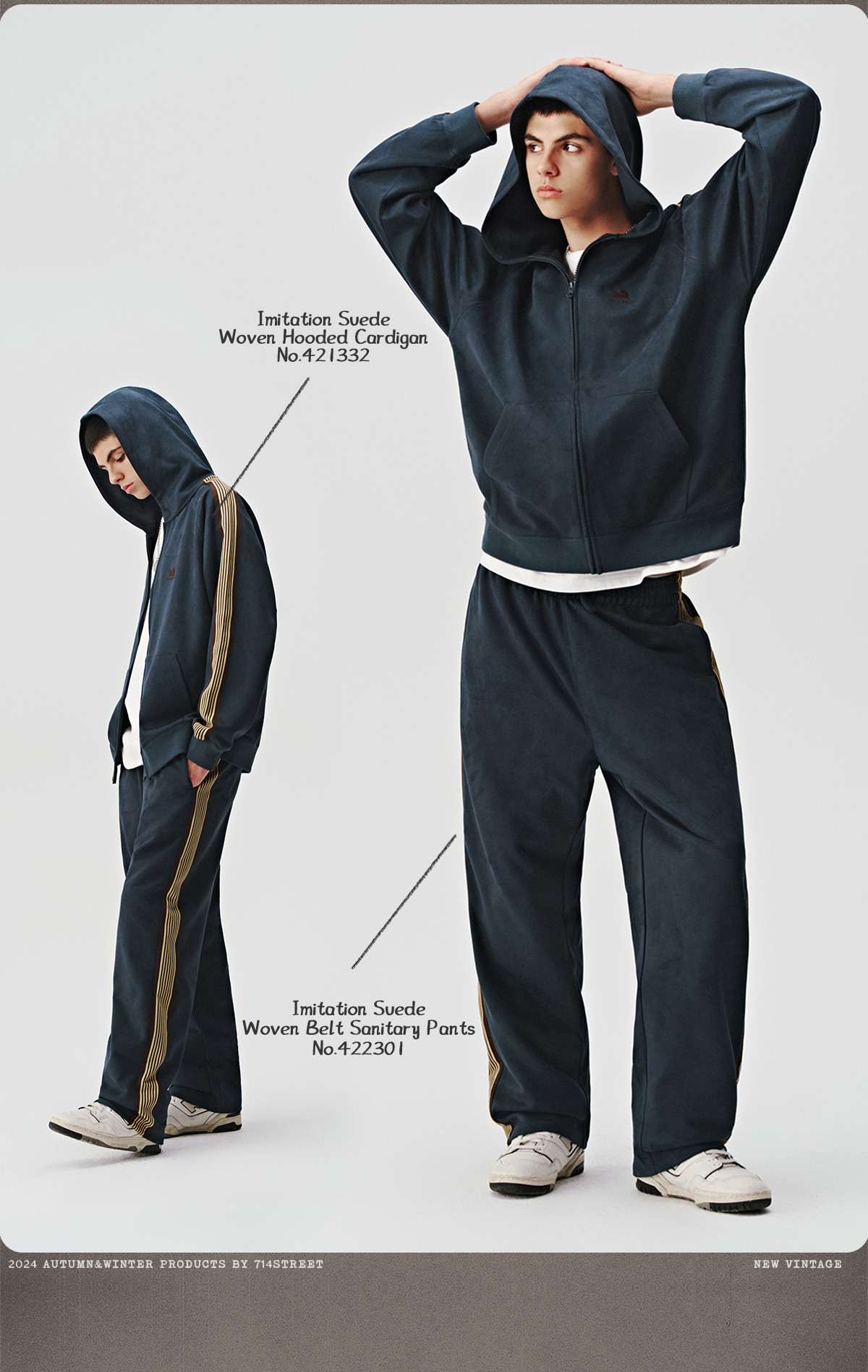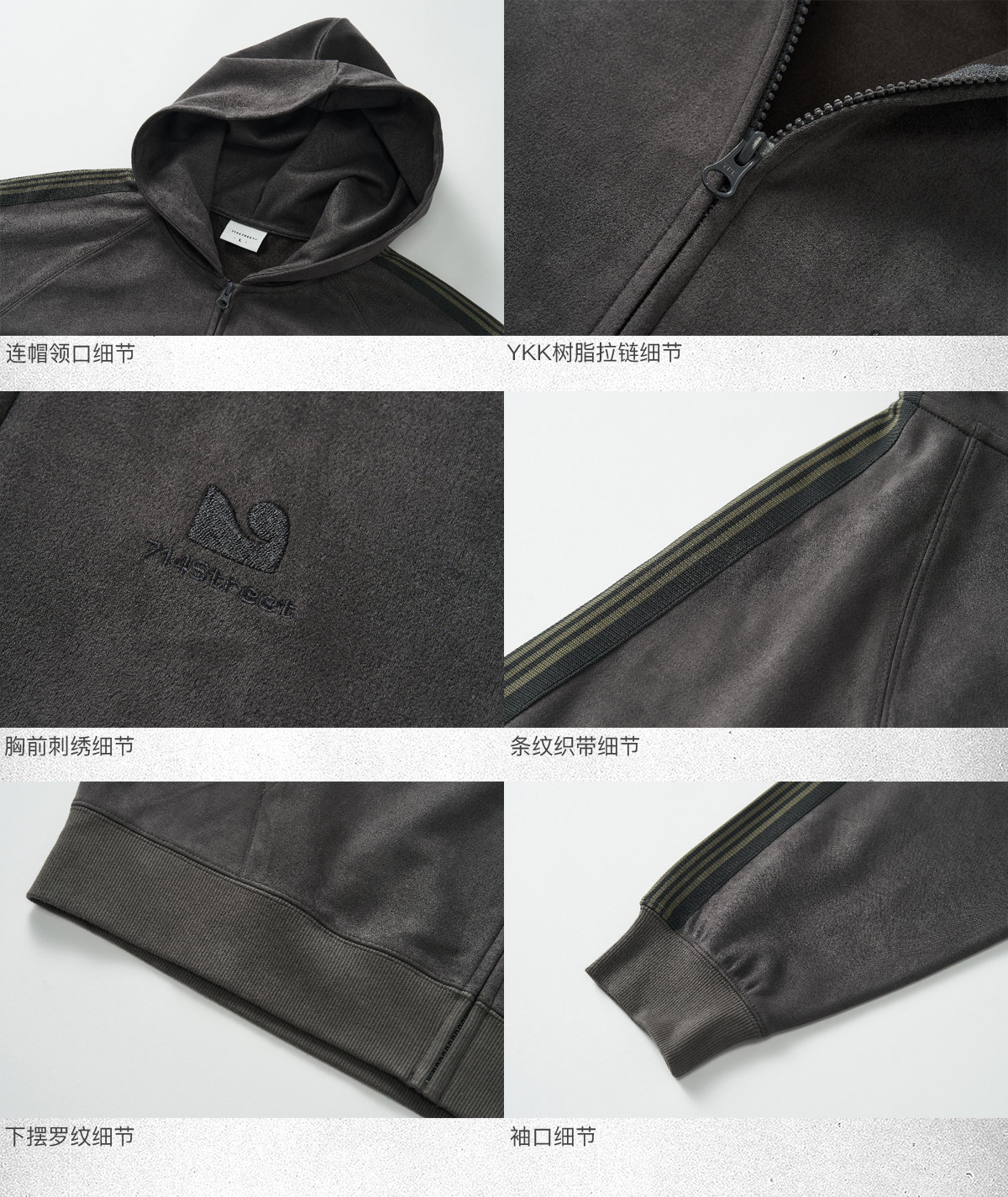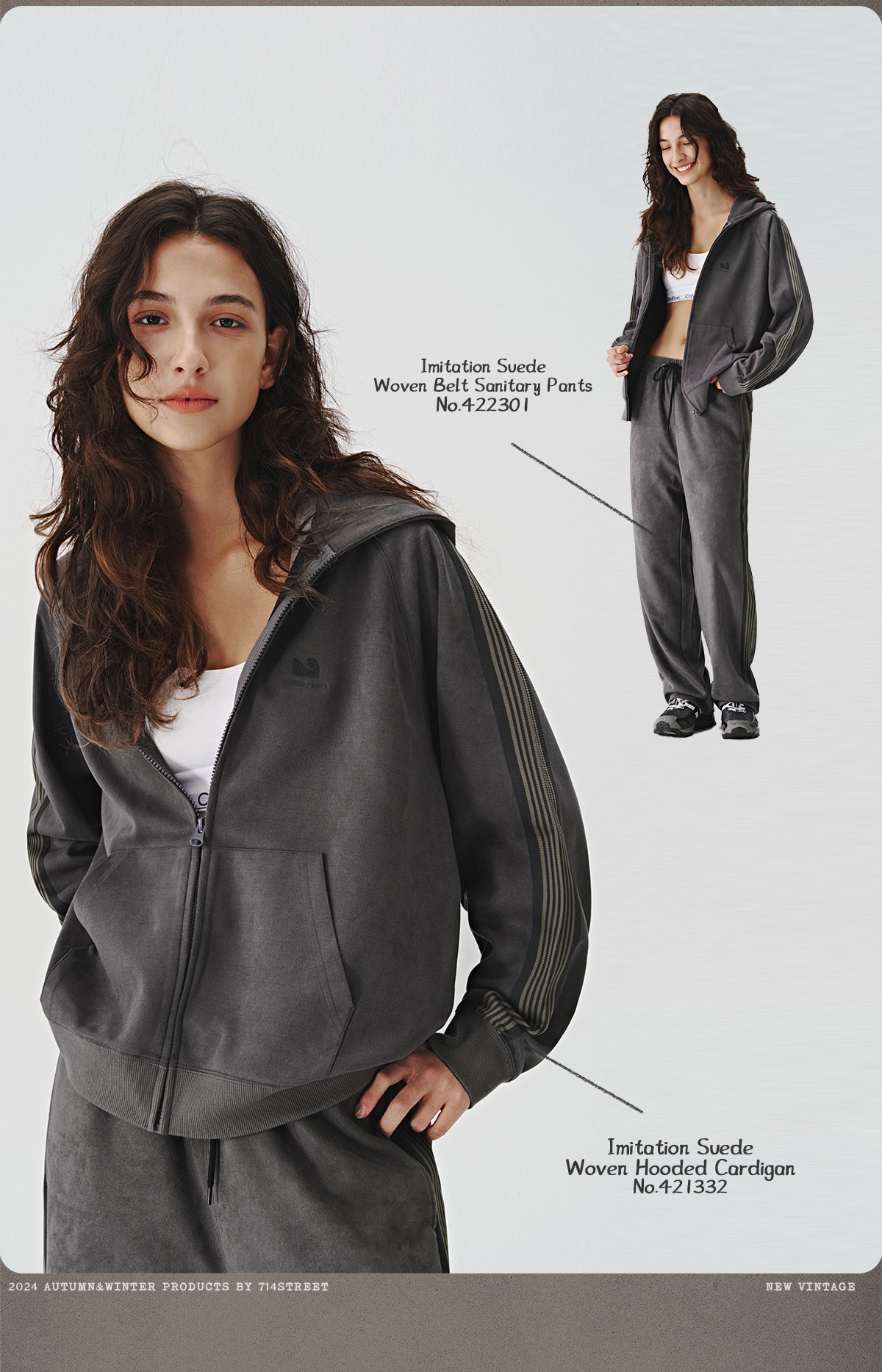 714street麂皮薄款卫衣外套男女连帽针织开衫2024秋新款帽衫套装