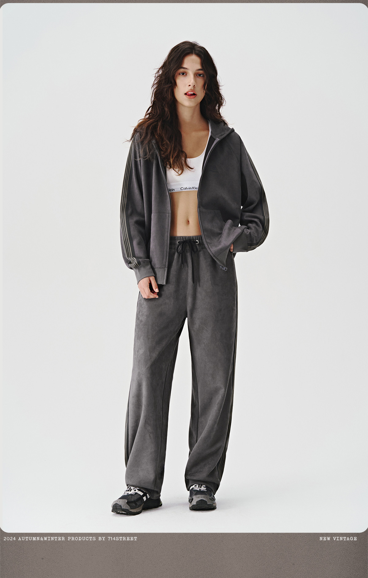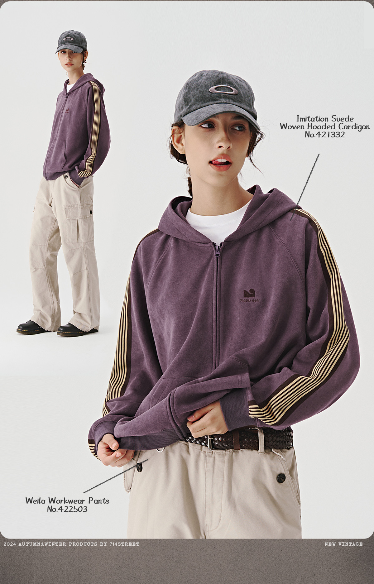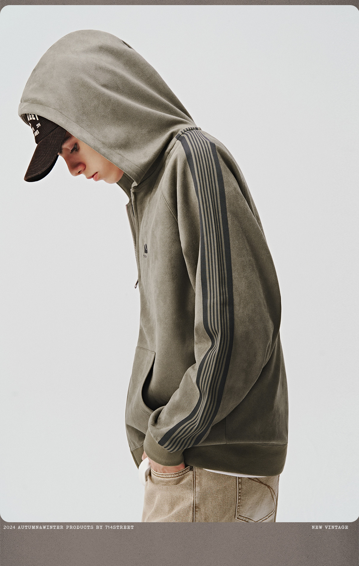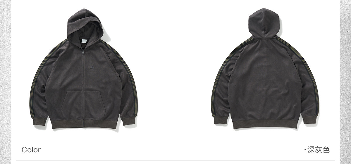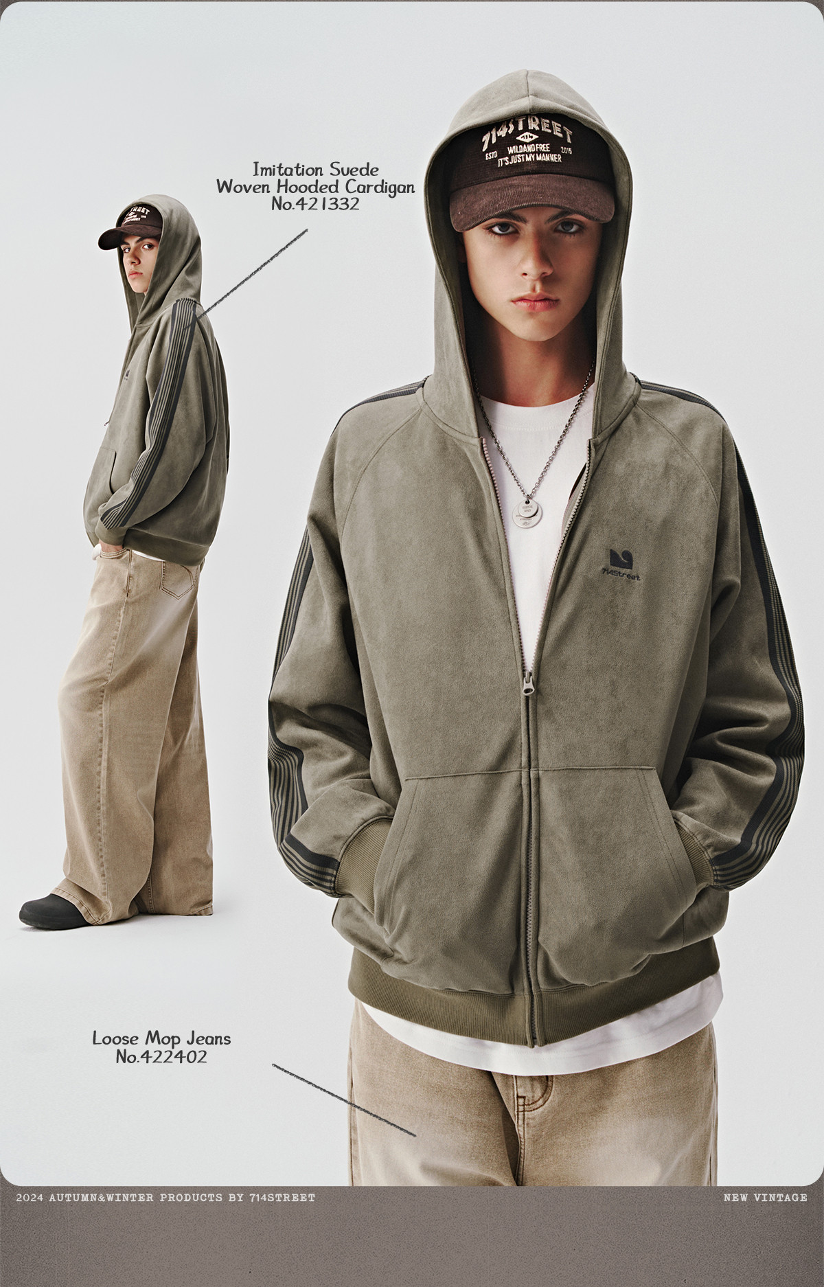 714street麂皮薄款卫衣外套男女连帽针织开衫2024秋新款帽衫套装