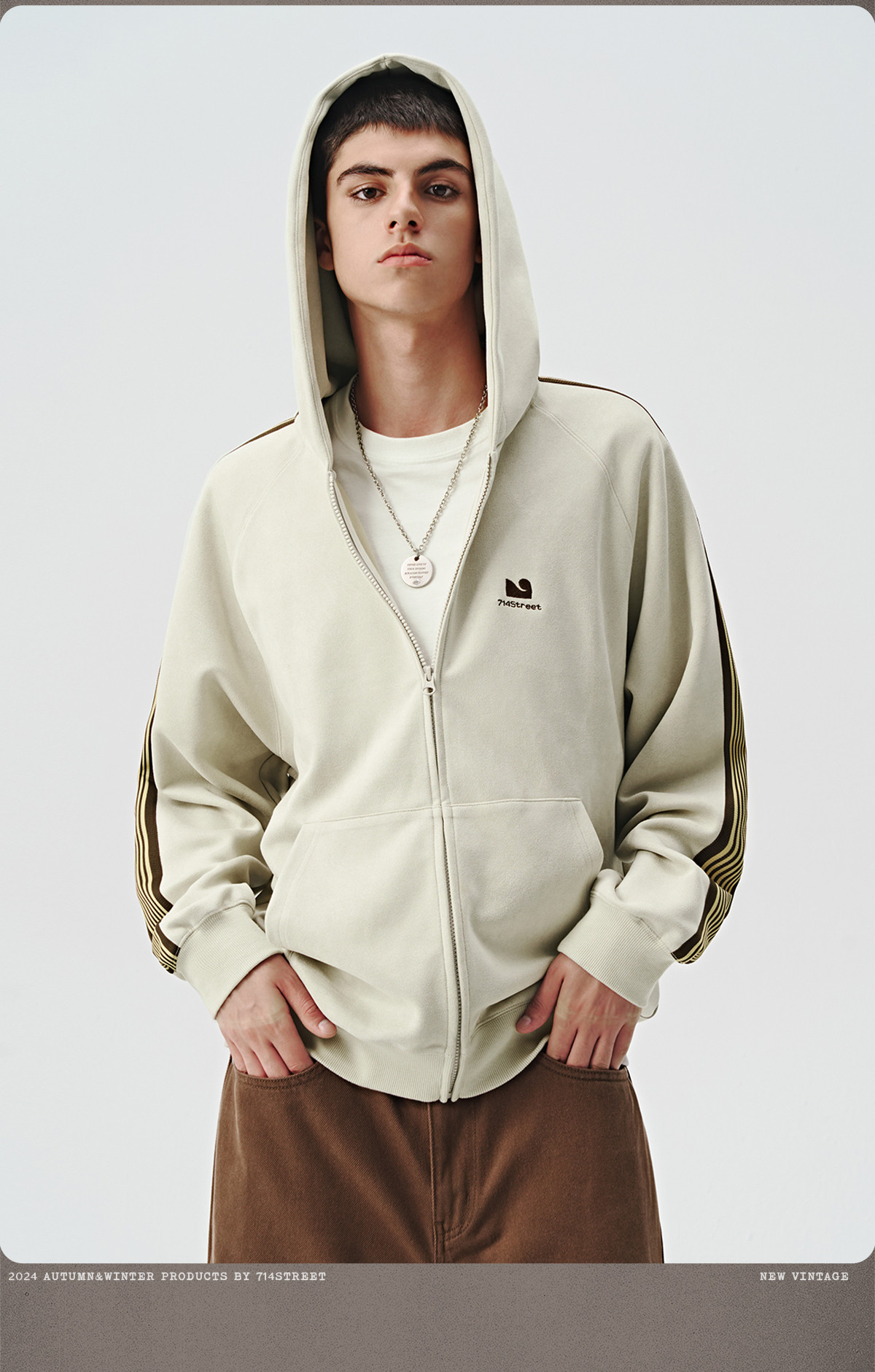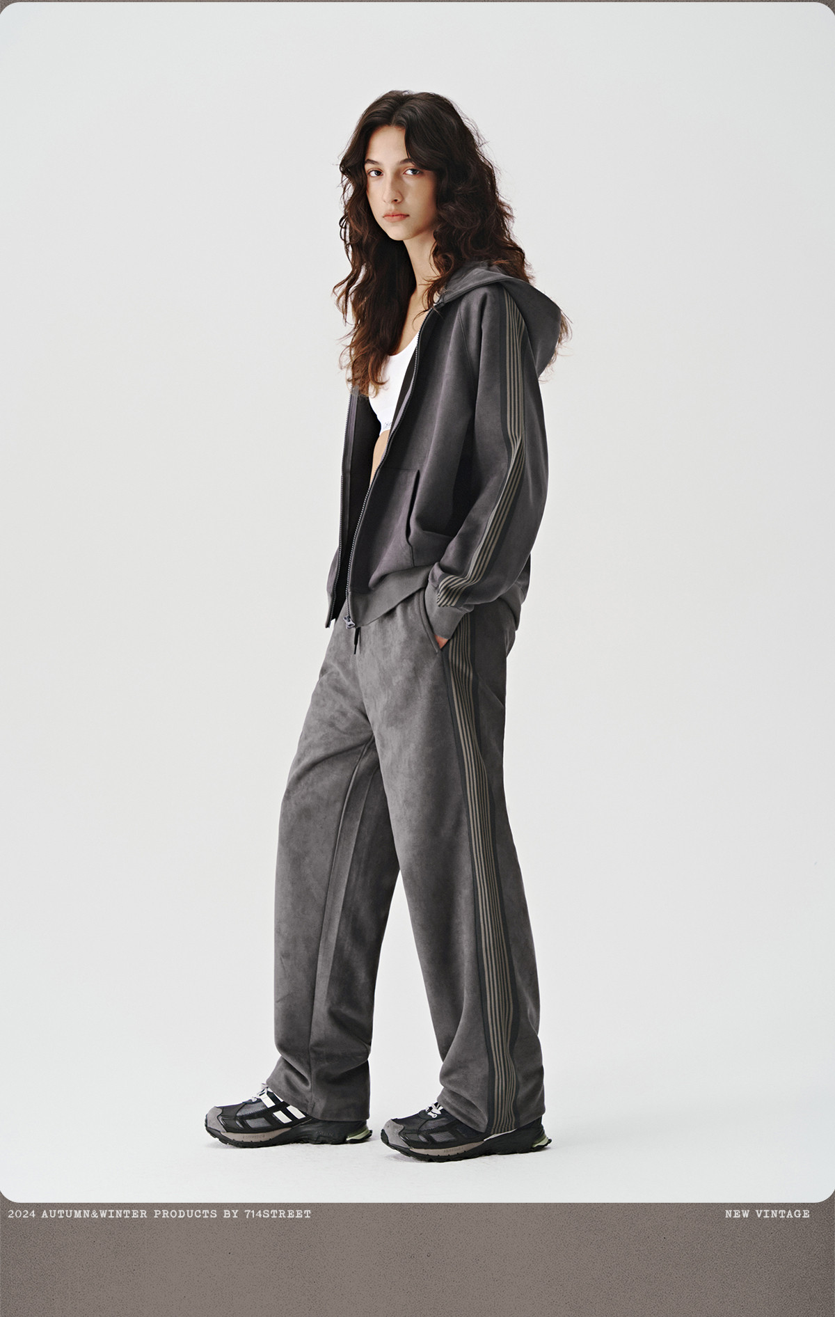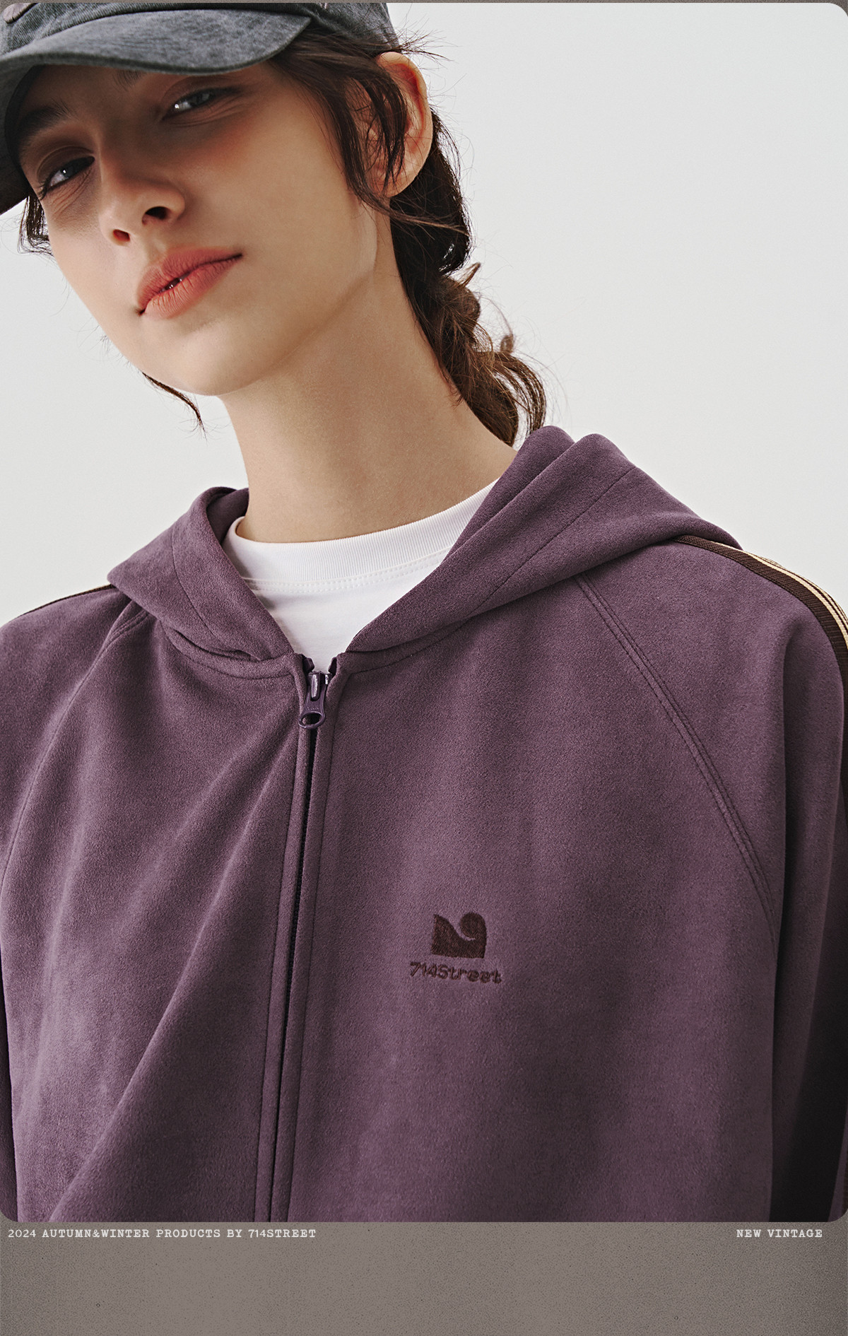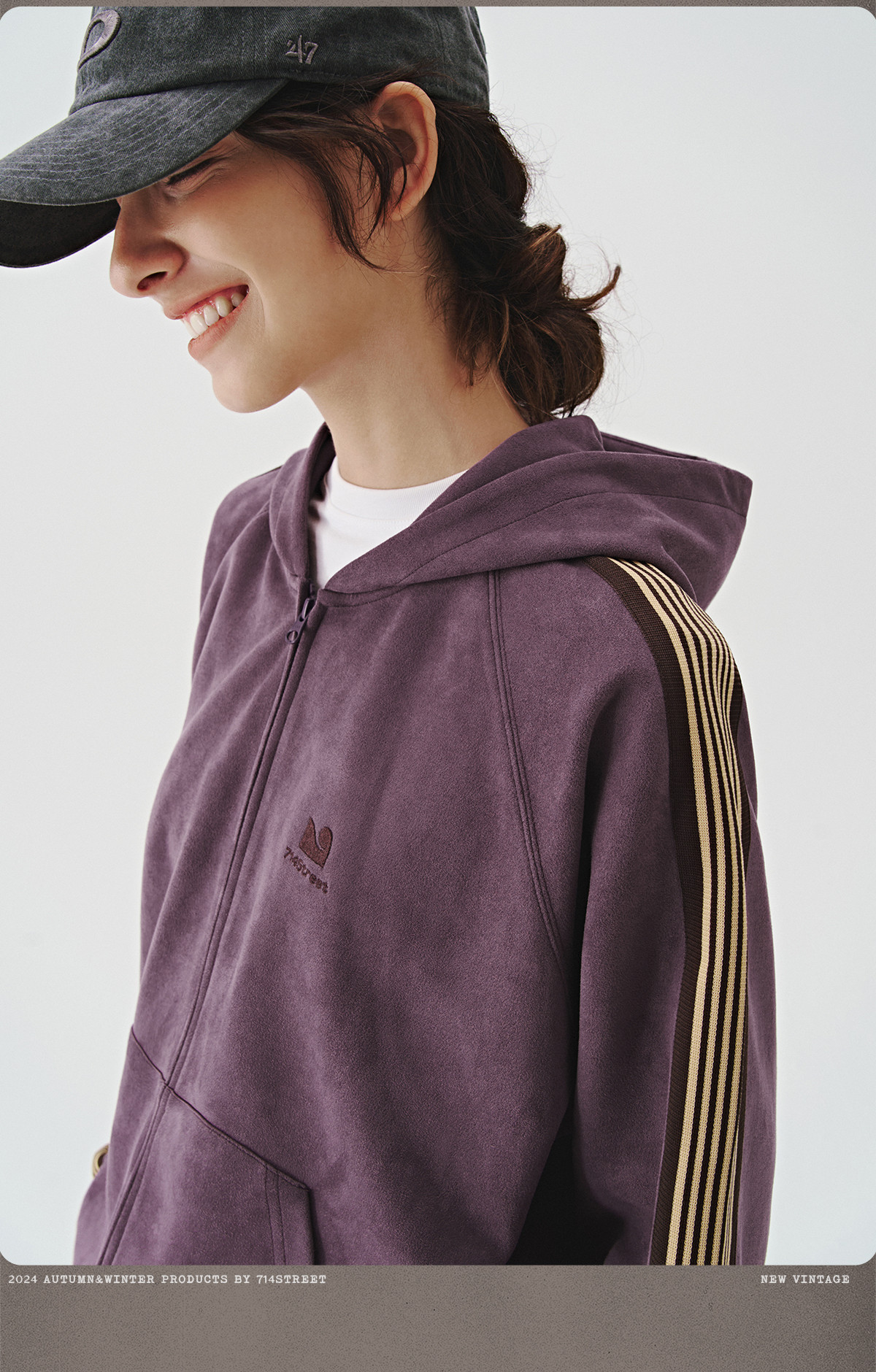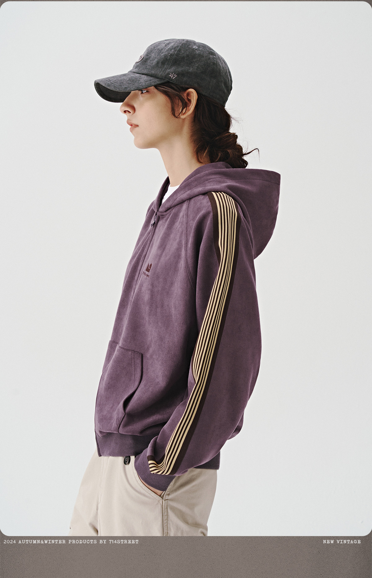 714street麂皮薄款卫衣外套男女连帽针织开衫2024秋新款帽衫套装