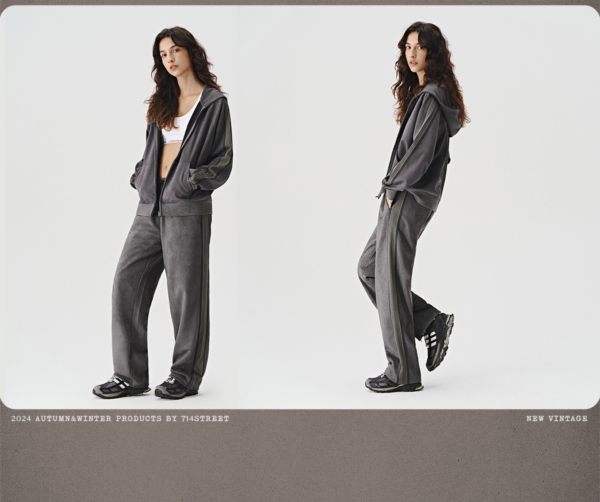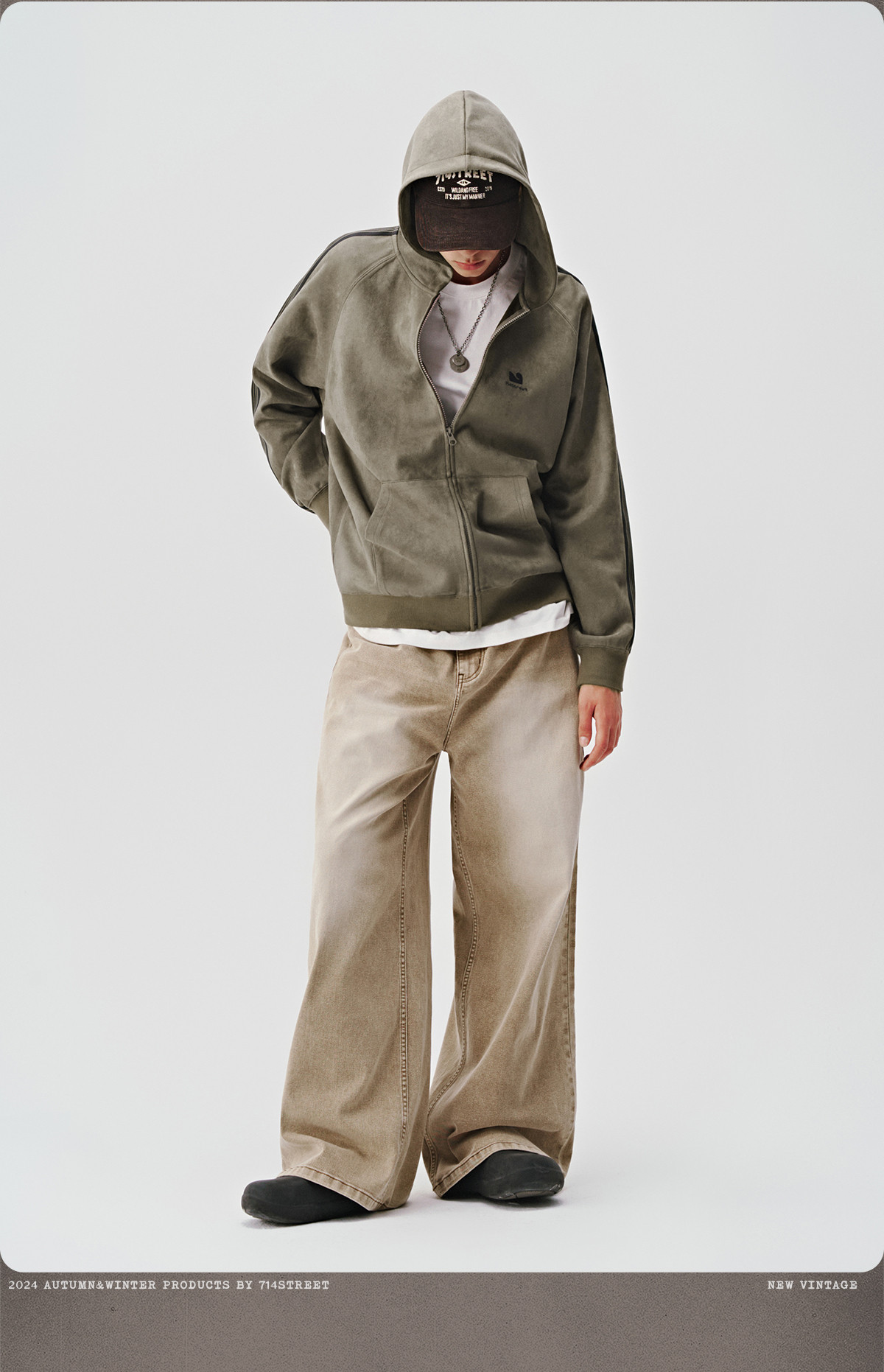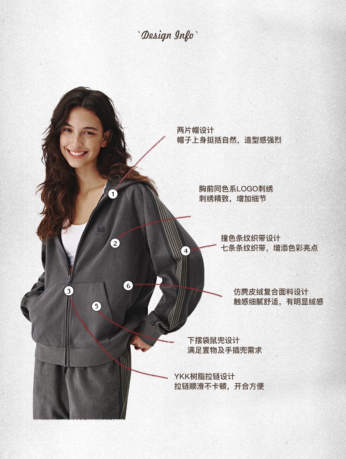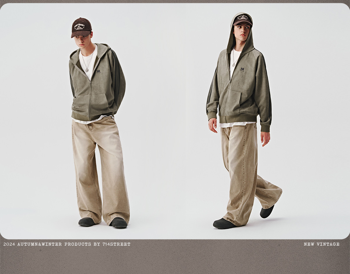 714street麂皮薄款卫衣外套男女连帽针织开衫2024秋新款帽衫套装