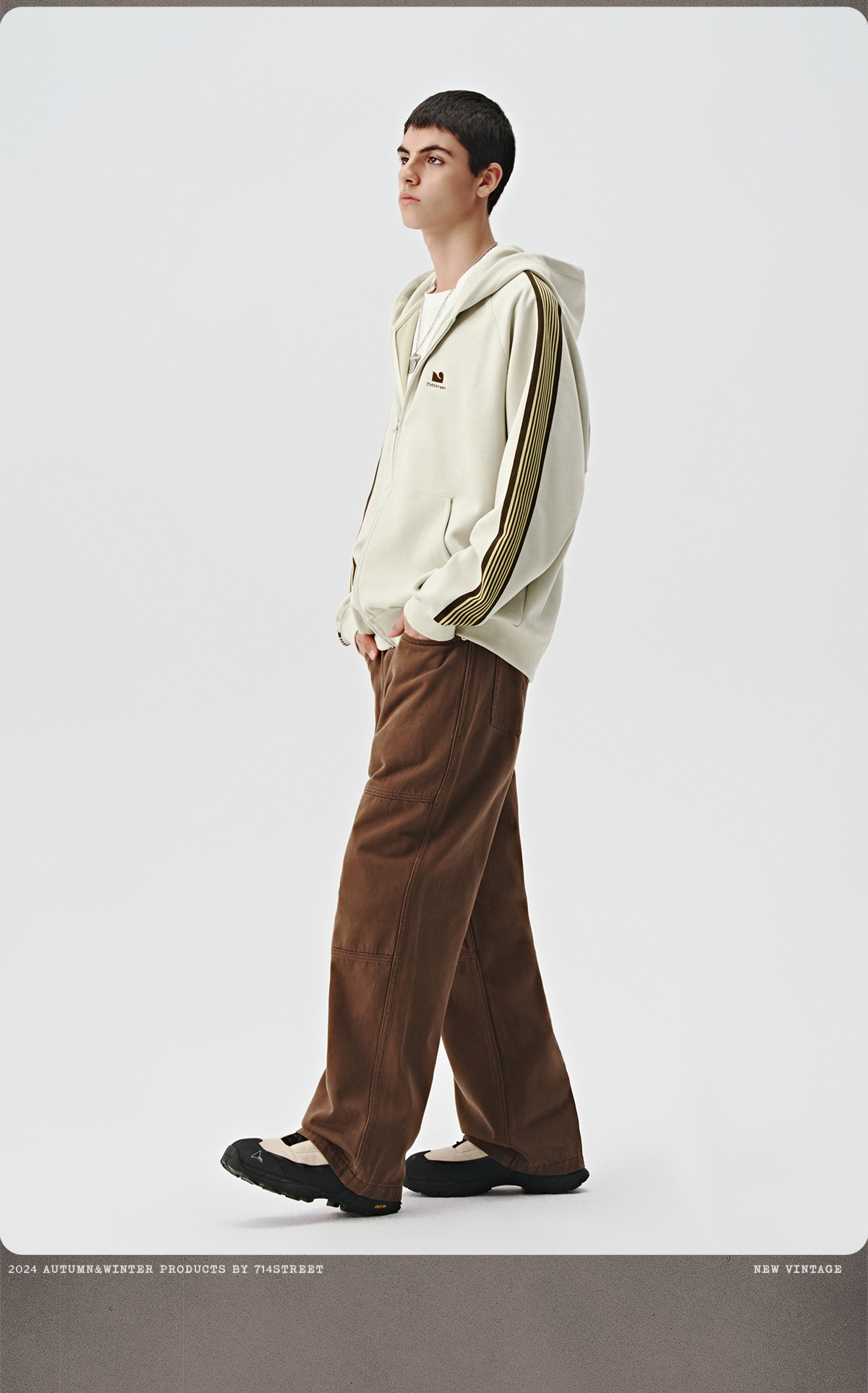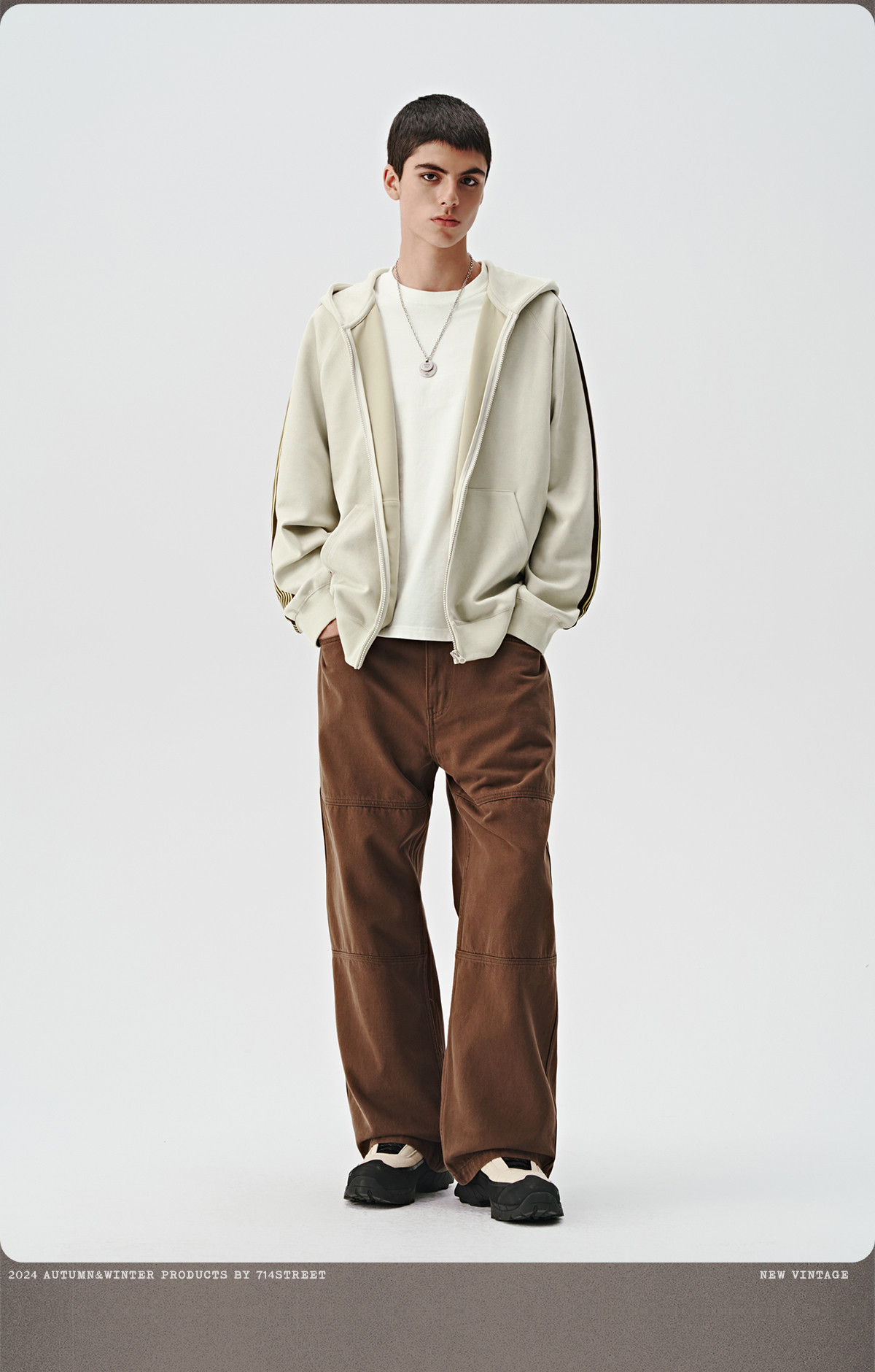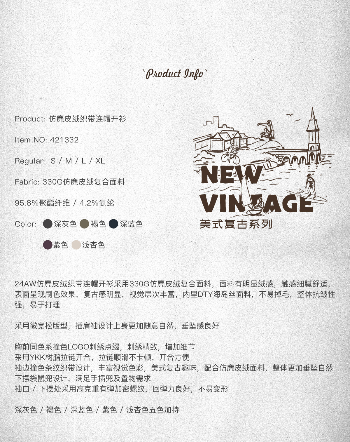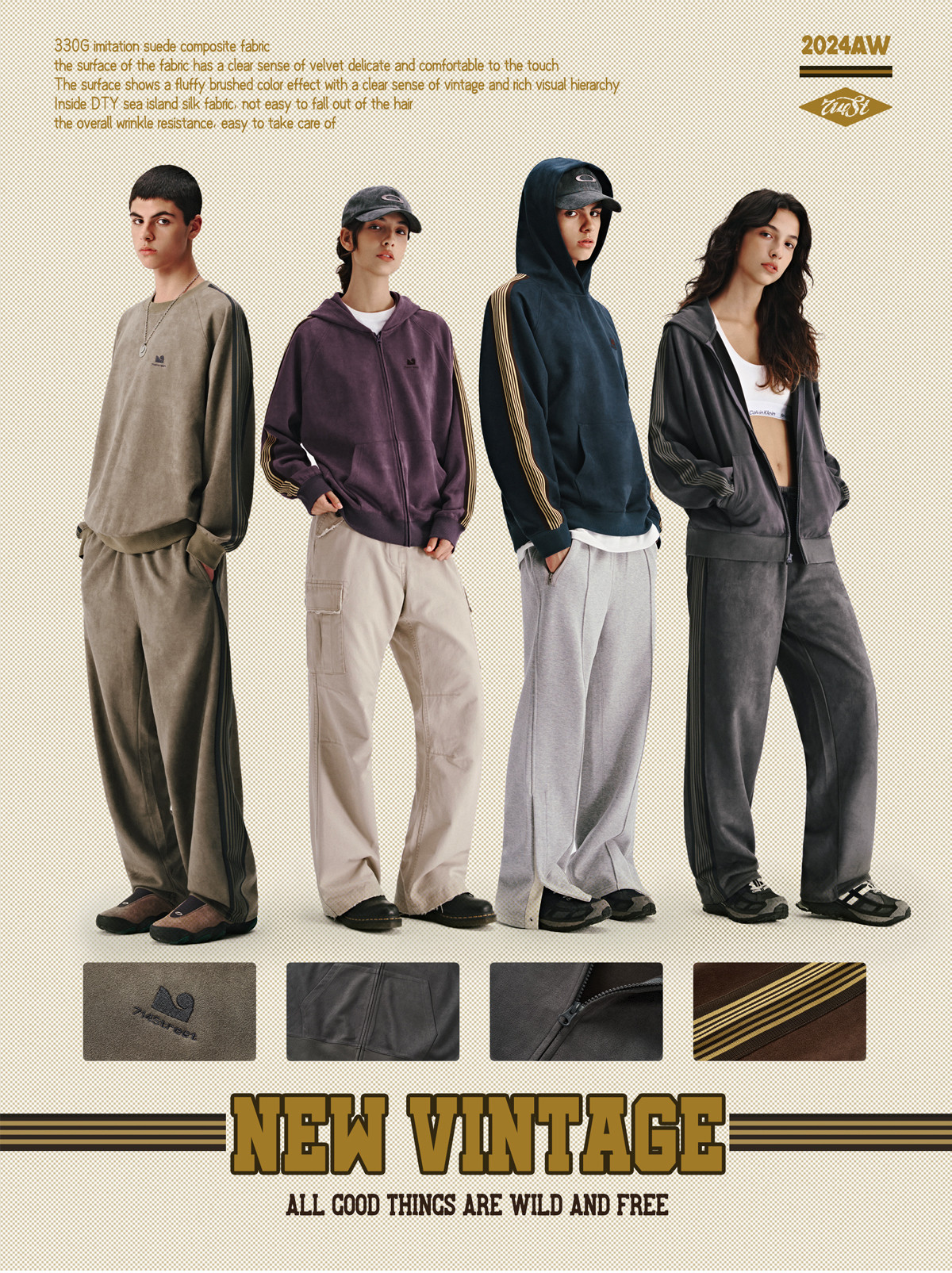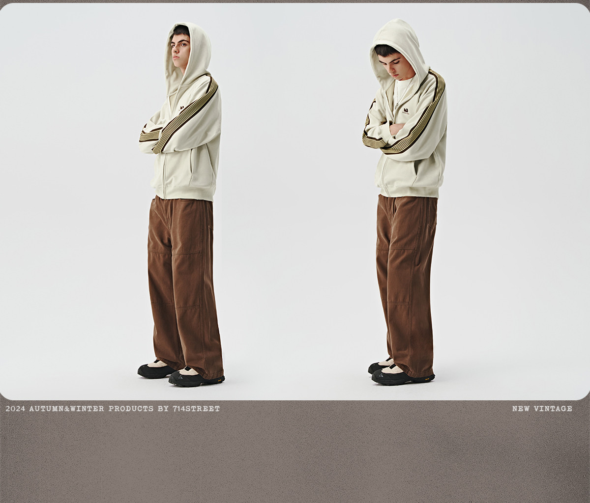 714street麂皮薄款卫衣外套男女连帽针织开衫2024秋新款帽衫套装