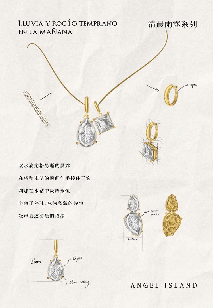 ANGEL ISLAND 「清晨雨露」水钻锆石吊坠可拆卸项链