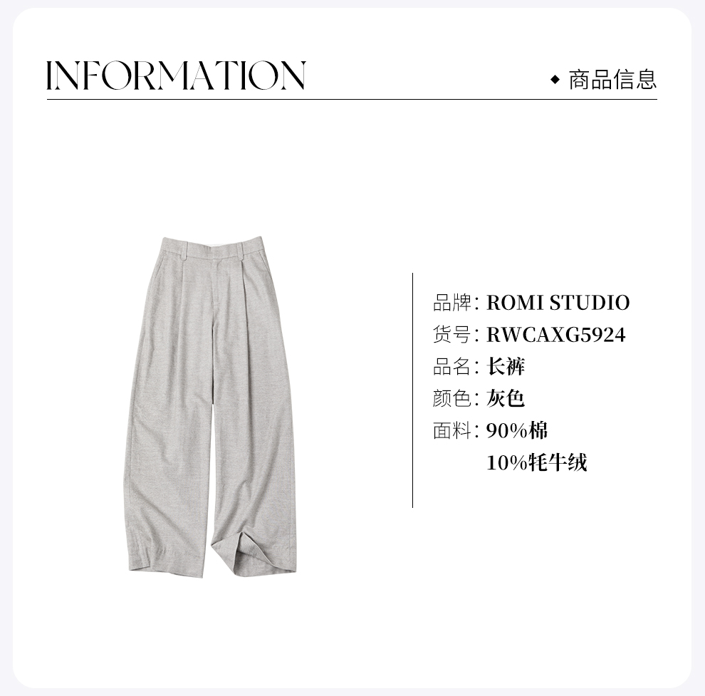 ROMI STUDIO“自然无拘”牦牛绒混纱气质保暖松弛直筒裤RWCAXG5924