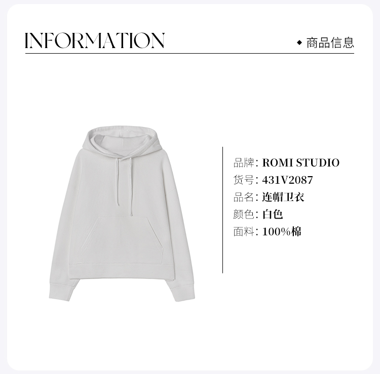 ROMI STUDIO“简约随性”*高支棉肤感宽松连帽抽绳卫衣 431V2087