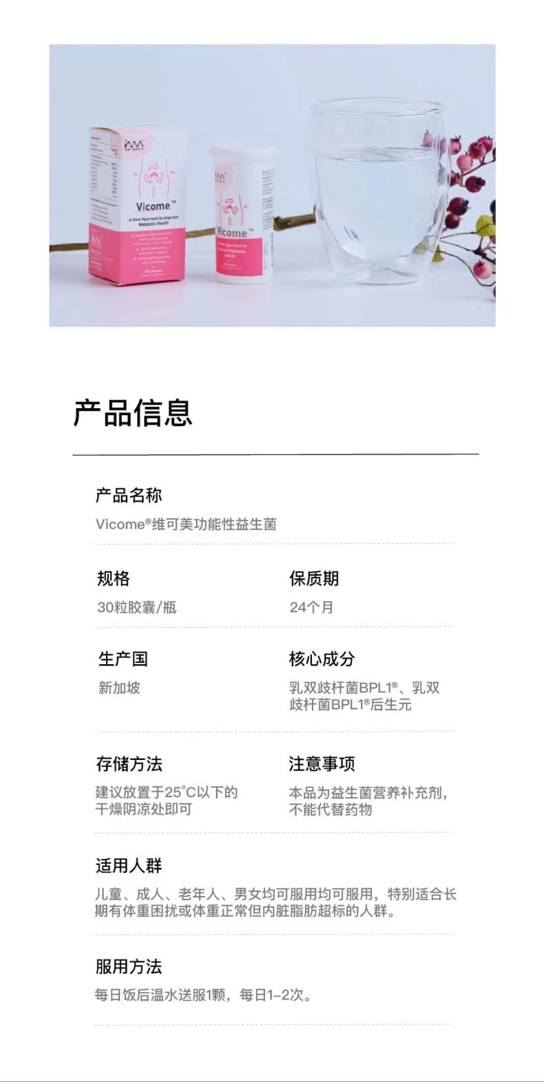 新加坡Vicome维可美益生菌辅助体重管理调节肠道