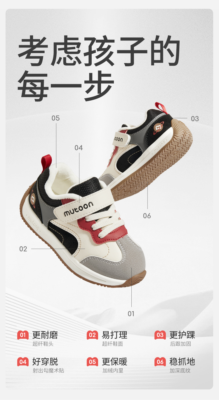 牧童2025冬季保暖加绒机能棉鞋新款幼儿园鞋子宝宝软底防滑运动鞋