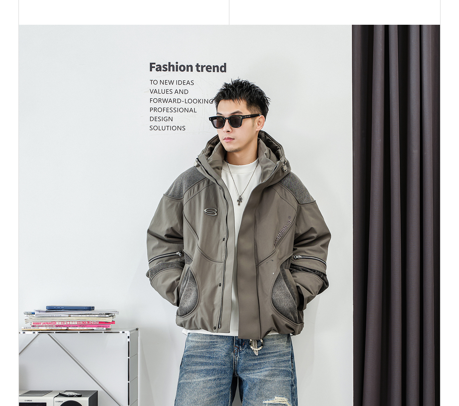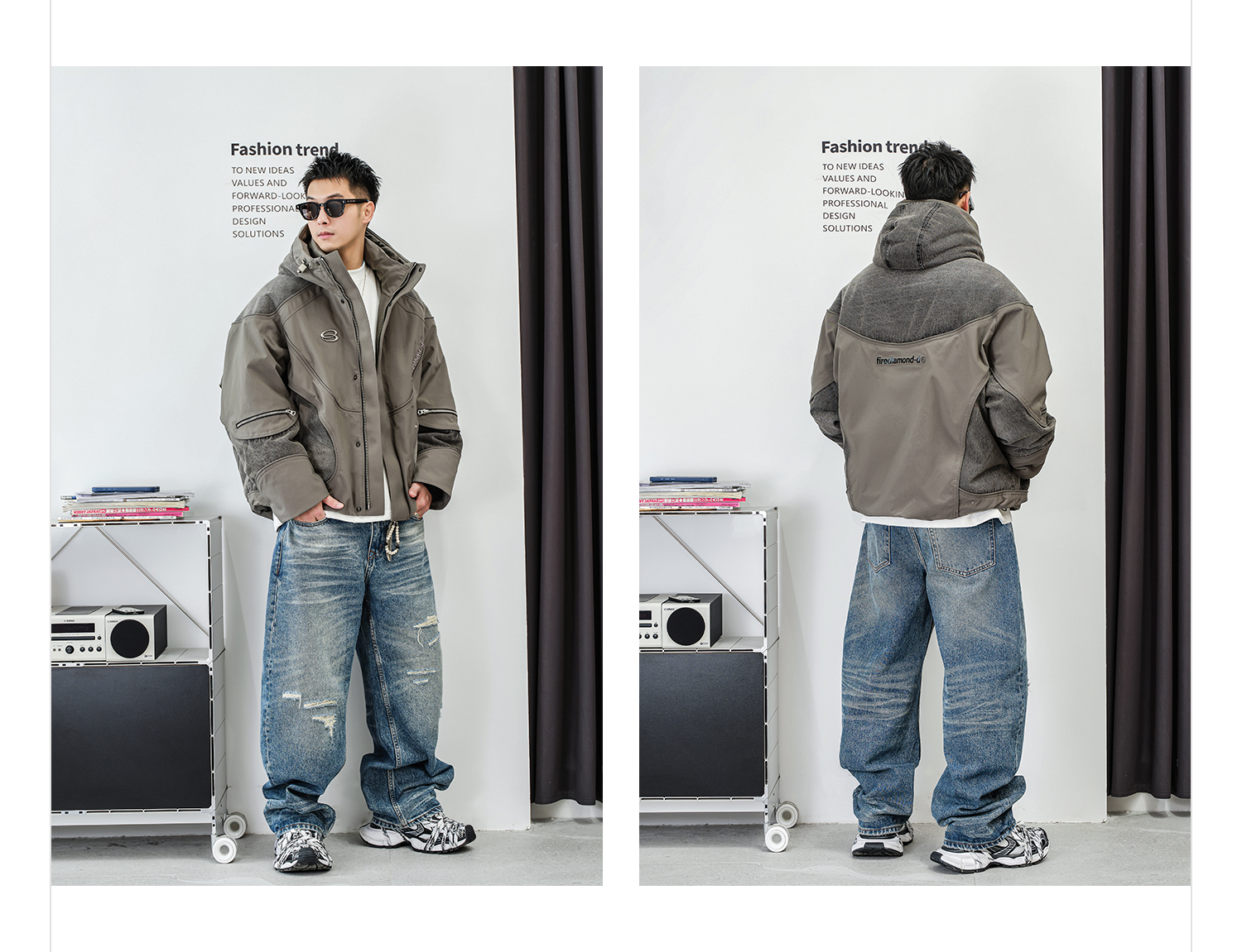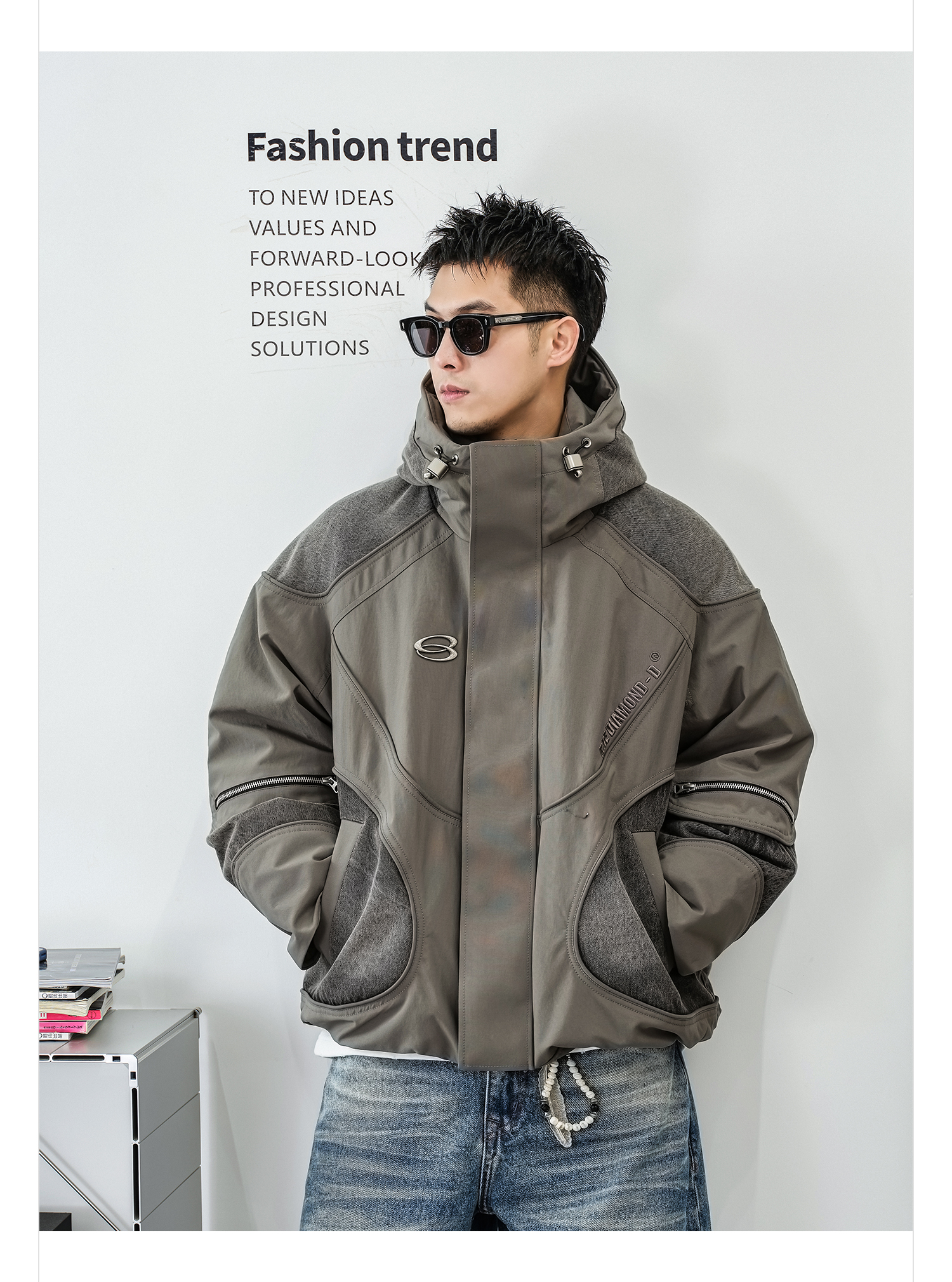 徐太浪【白鹅绒 拼接工装】抽绳连帽羽绒服男冬季防寒服拉链外套