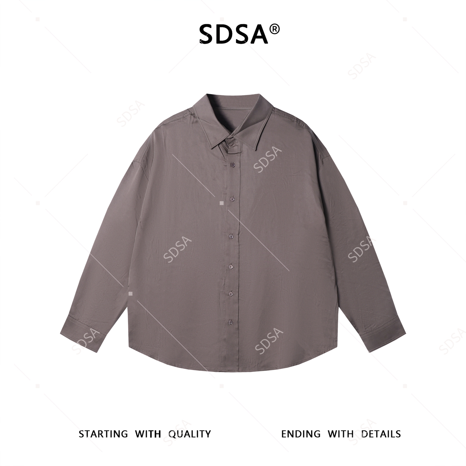 OAS2828SDSA秋冬新款痞帅男装设计师纯色亲肤翻领长袖衬衫超柔休闲衬衣