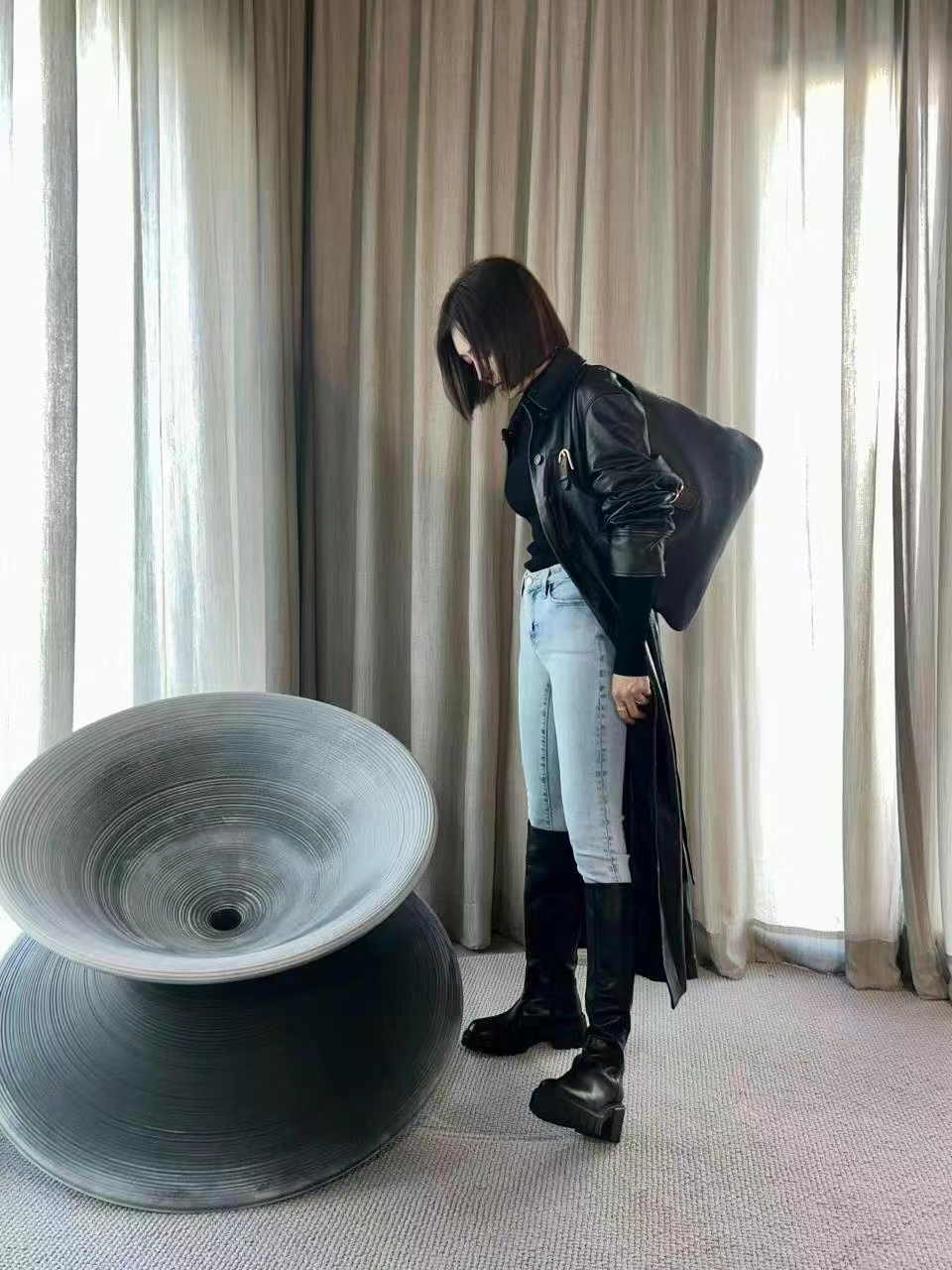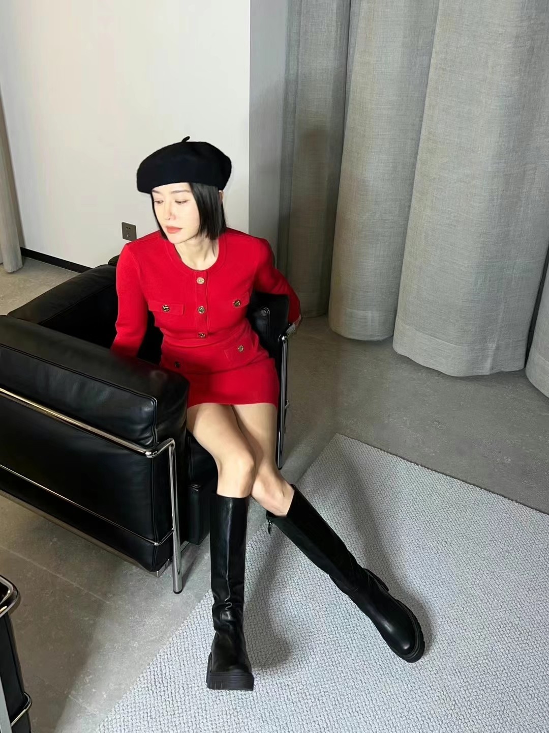 设计,方便穿脱。这款随性前卫的及膝靴是您打造冬季造型的潮流时尚单品!