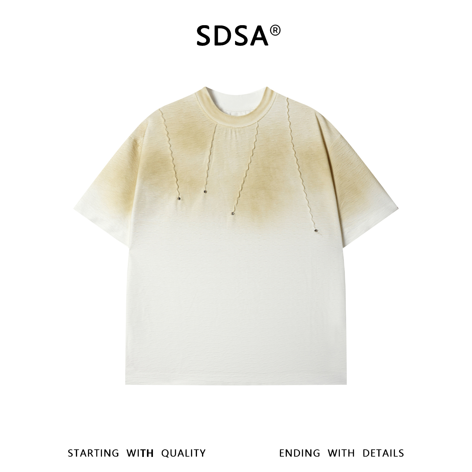 68633SDSA男装2026新款高贵轻奢潮牌波浪线钉珠肌理短袖T恤百搭上衣