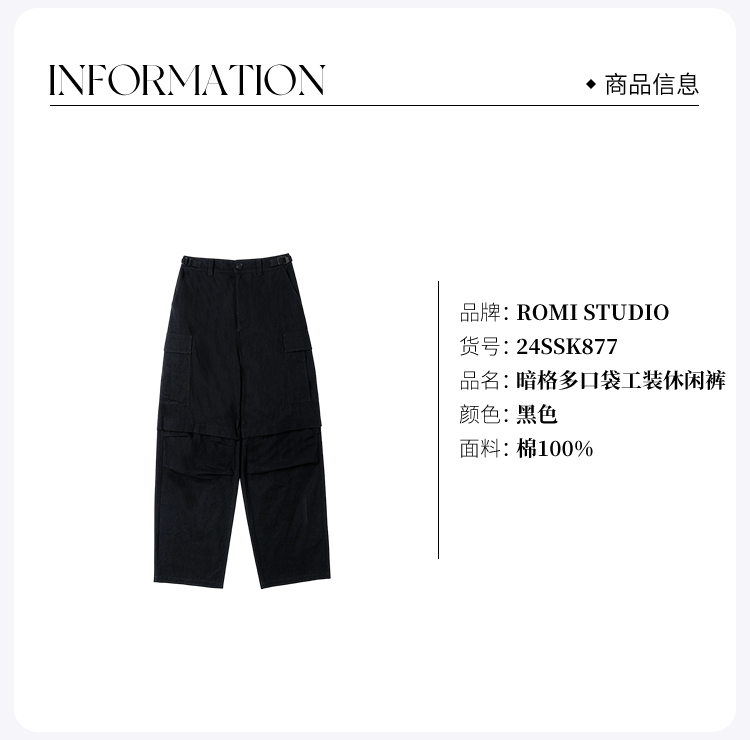 ROMI STUDIO“美式复古”100%斜纹棉暗格多口袋工装休闲裤24SSK877