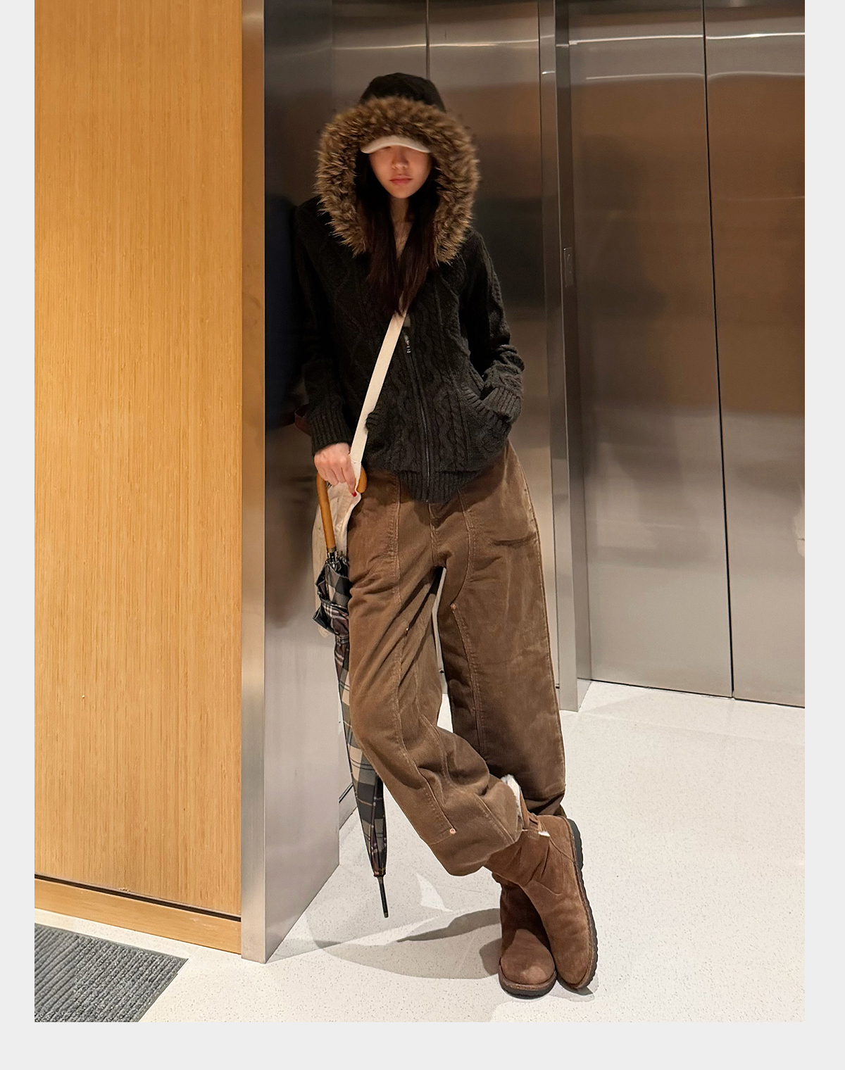 ROMI STUDIO高支加厚灯芯绒复古做旧中腰阔腿微喇长裤RWDSXY1567
